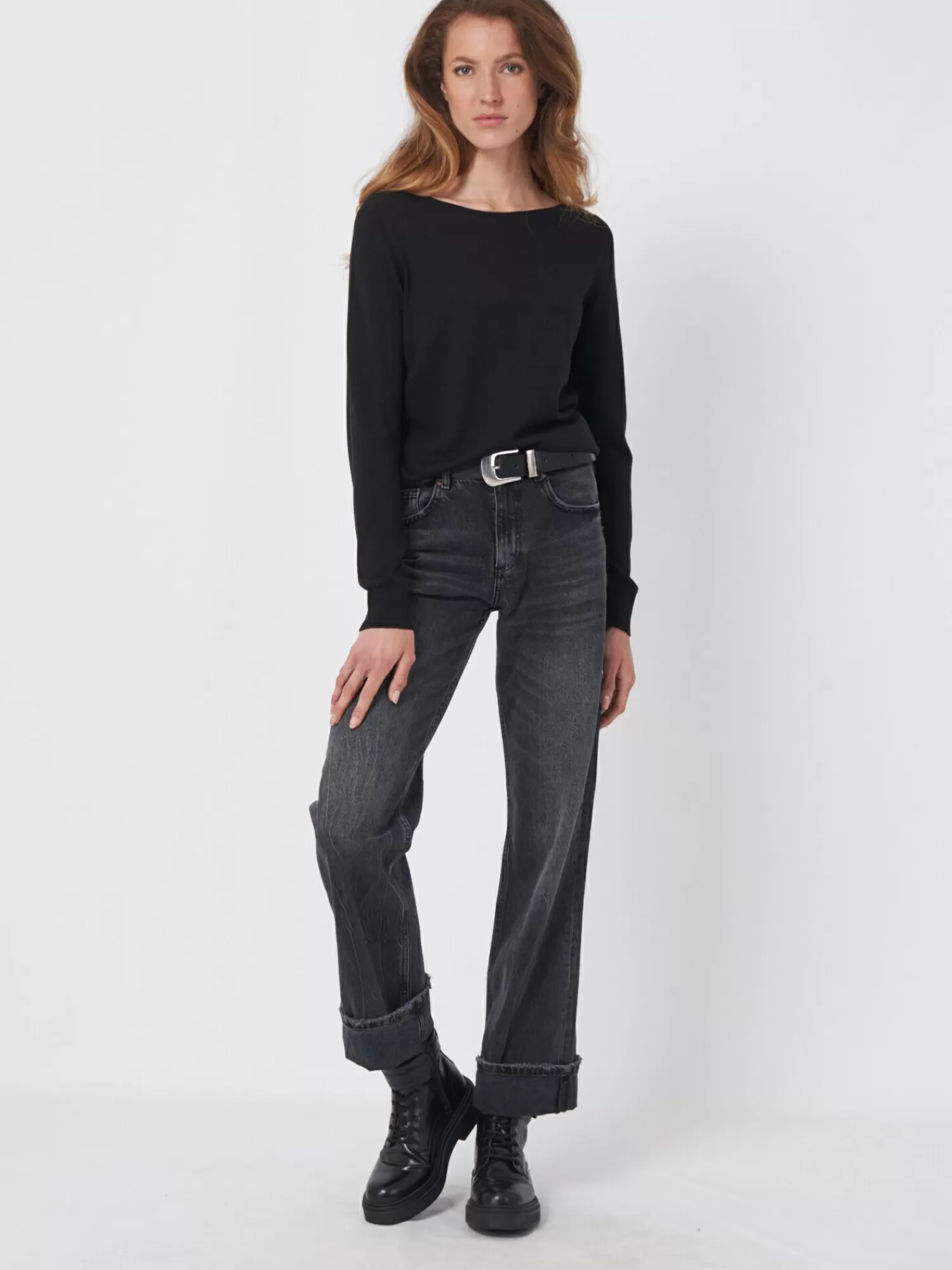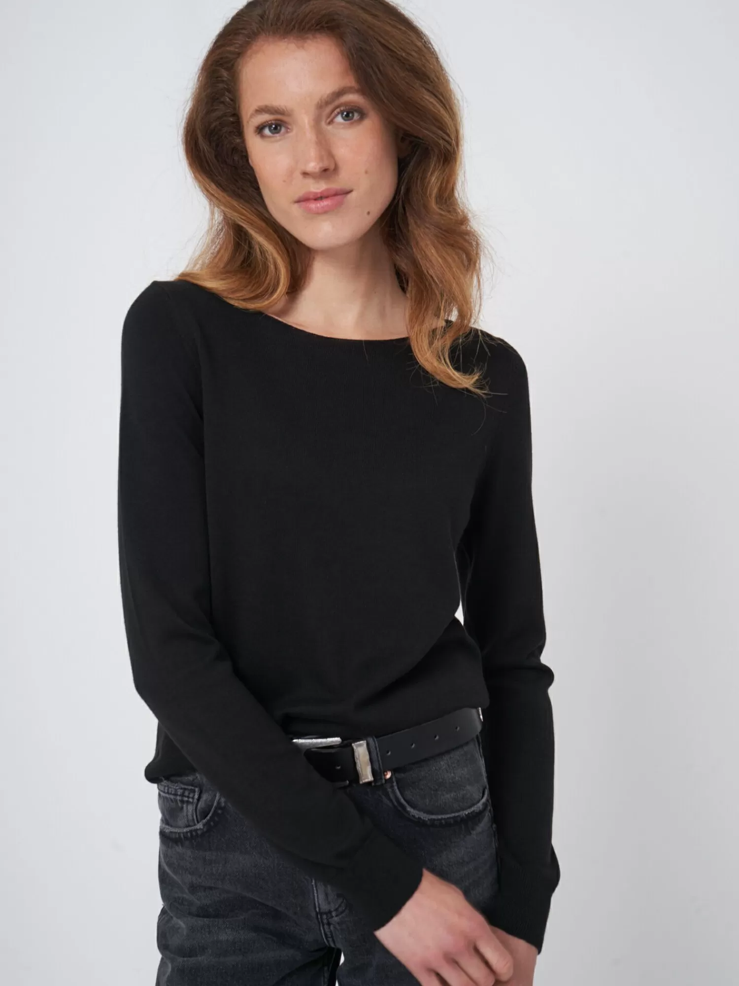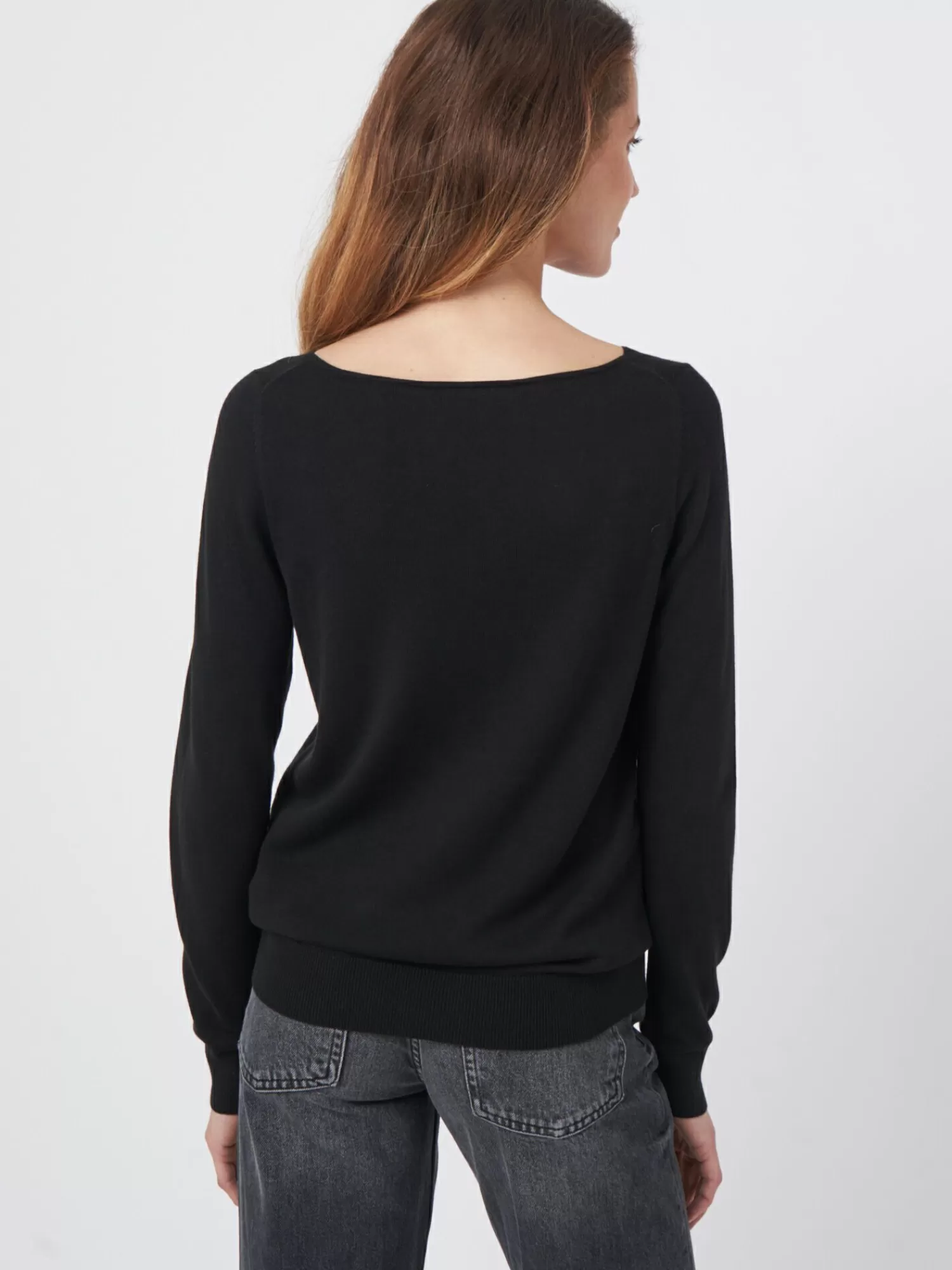 REPEAT cashmere Organic Cashmere | Truien*Basic trui met lange mouwen in katoenmix Black