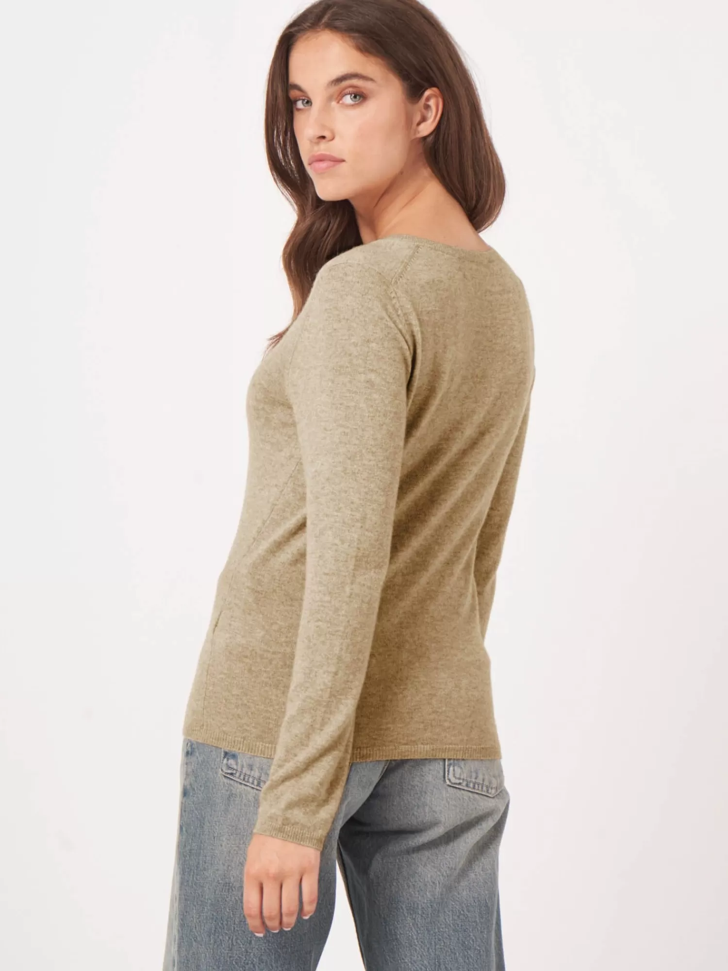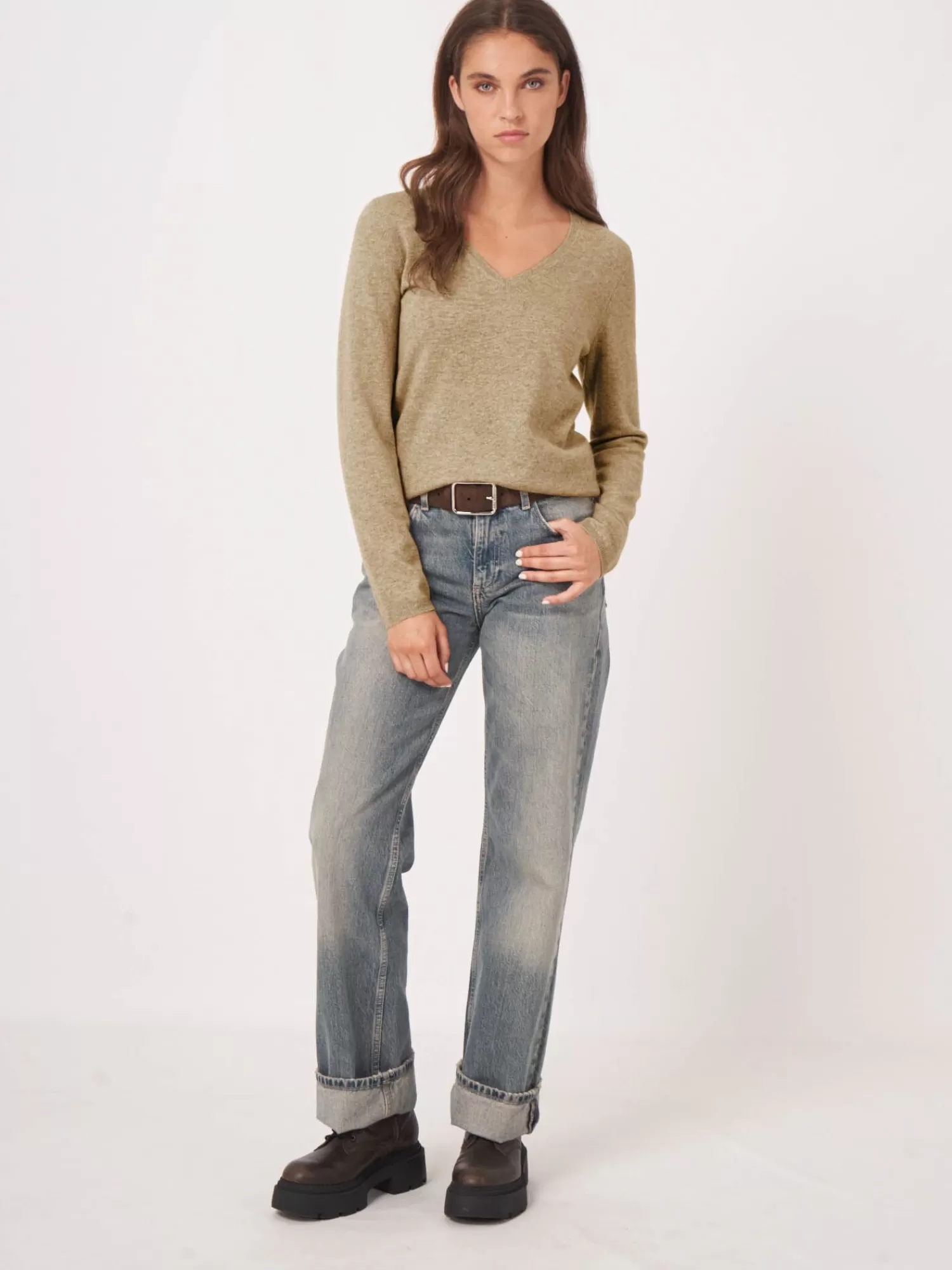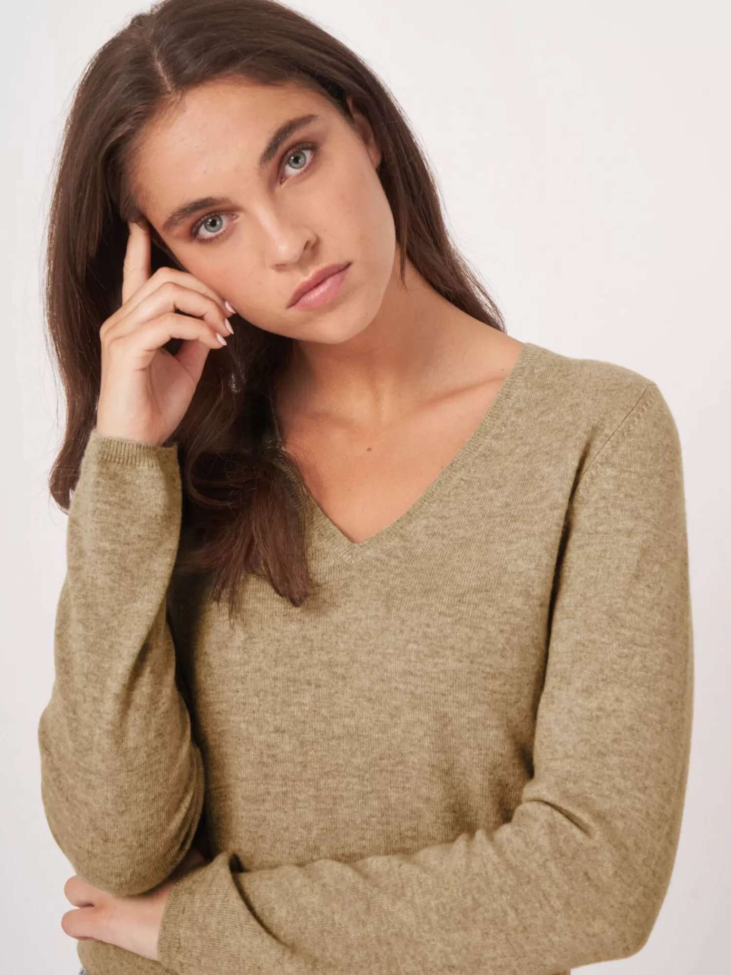 REPEAT cashmere Truien | Organic Cashmere*Basic V-hals trui van cashmere wolmix Mustard