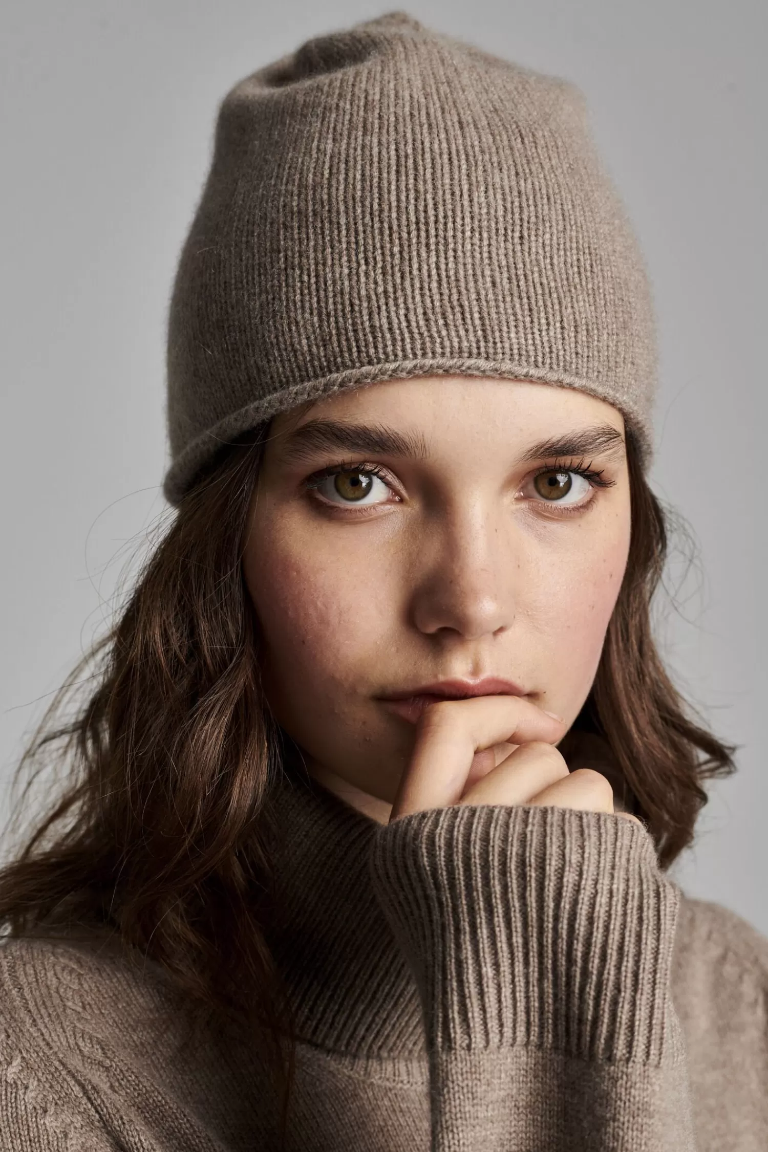 Grof gebreidOrganisch cashmere GOTS gecertificeerdOpgerolde zoomGebreide muts5 gg / 6-Laags50 gramHandwas, chemisch rein…