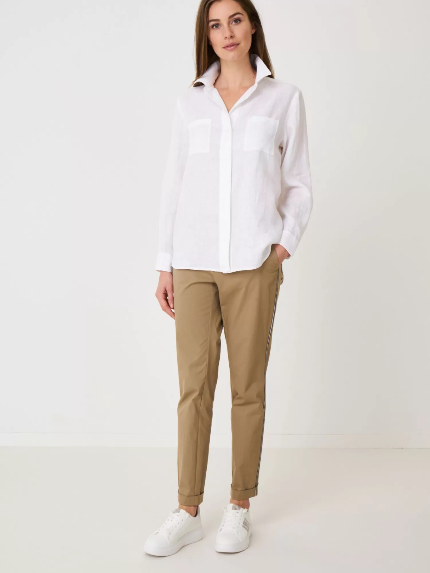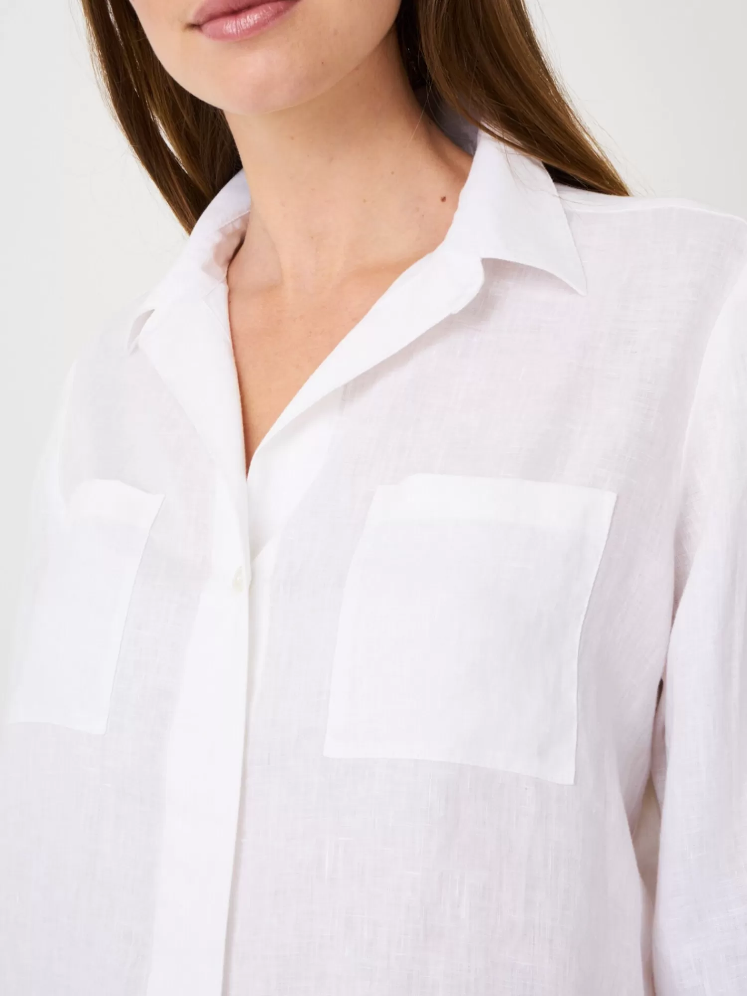 REPEAT cashmere Blouses*Basic linnen blouse met borstzakken White