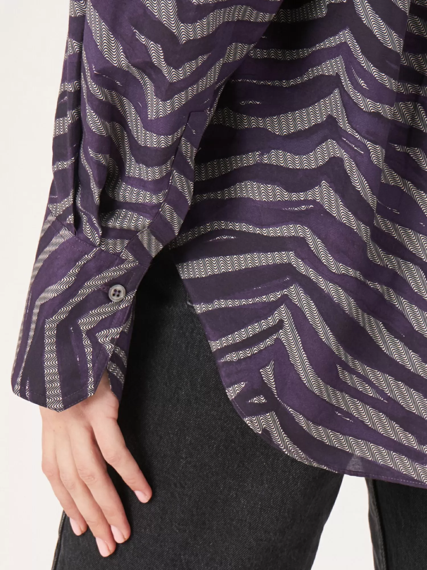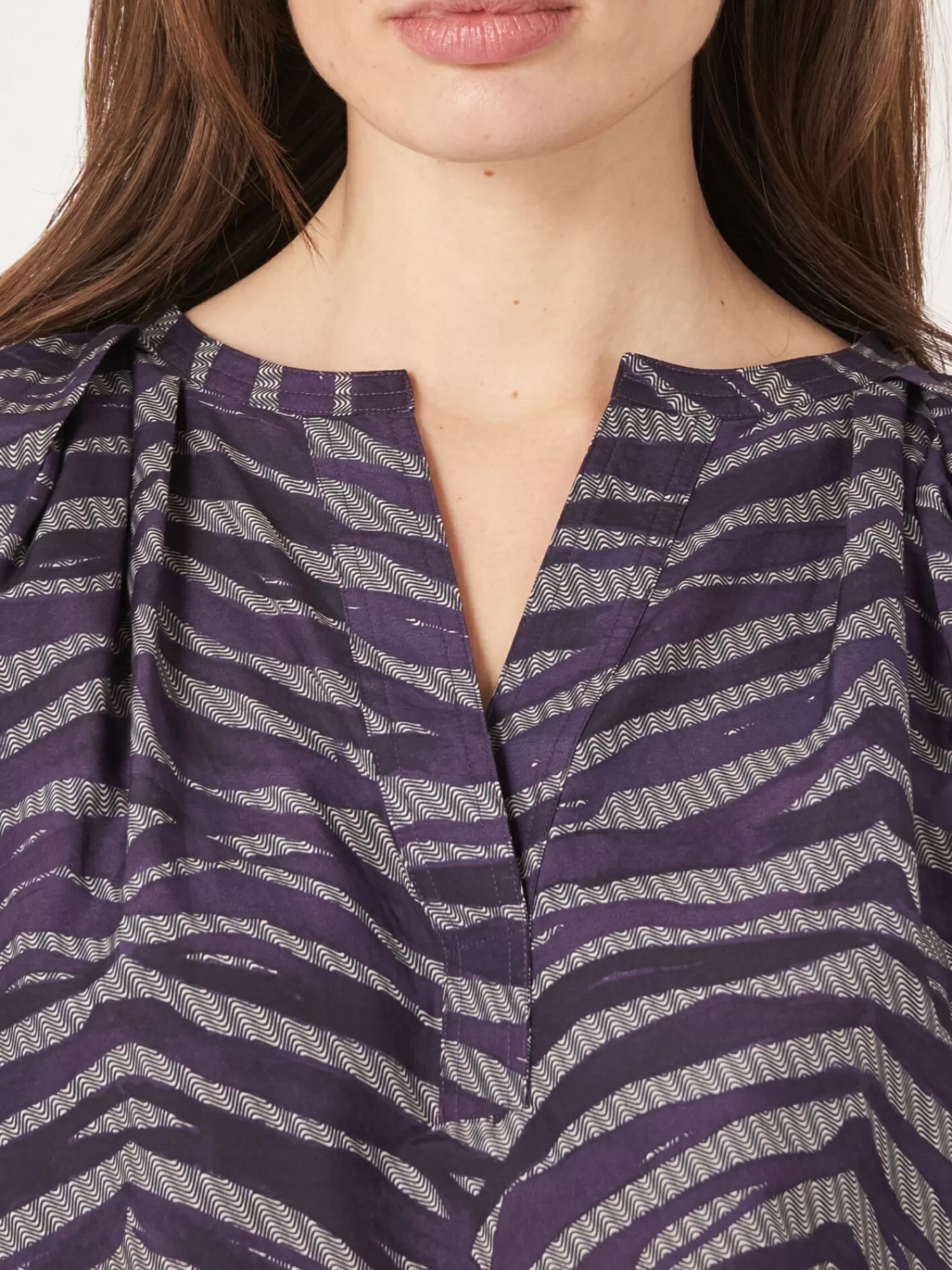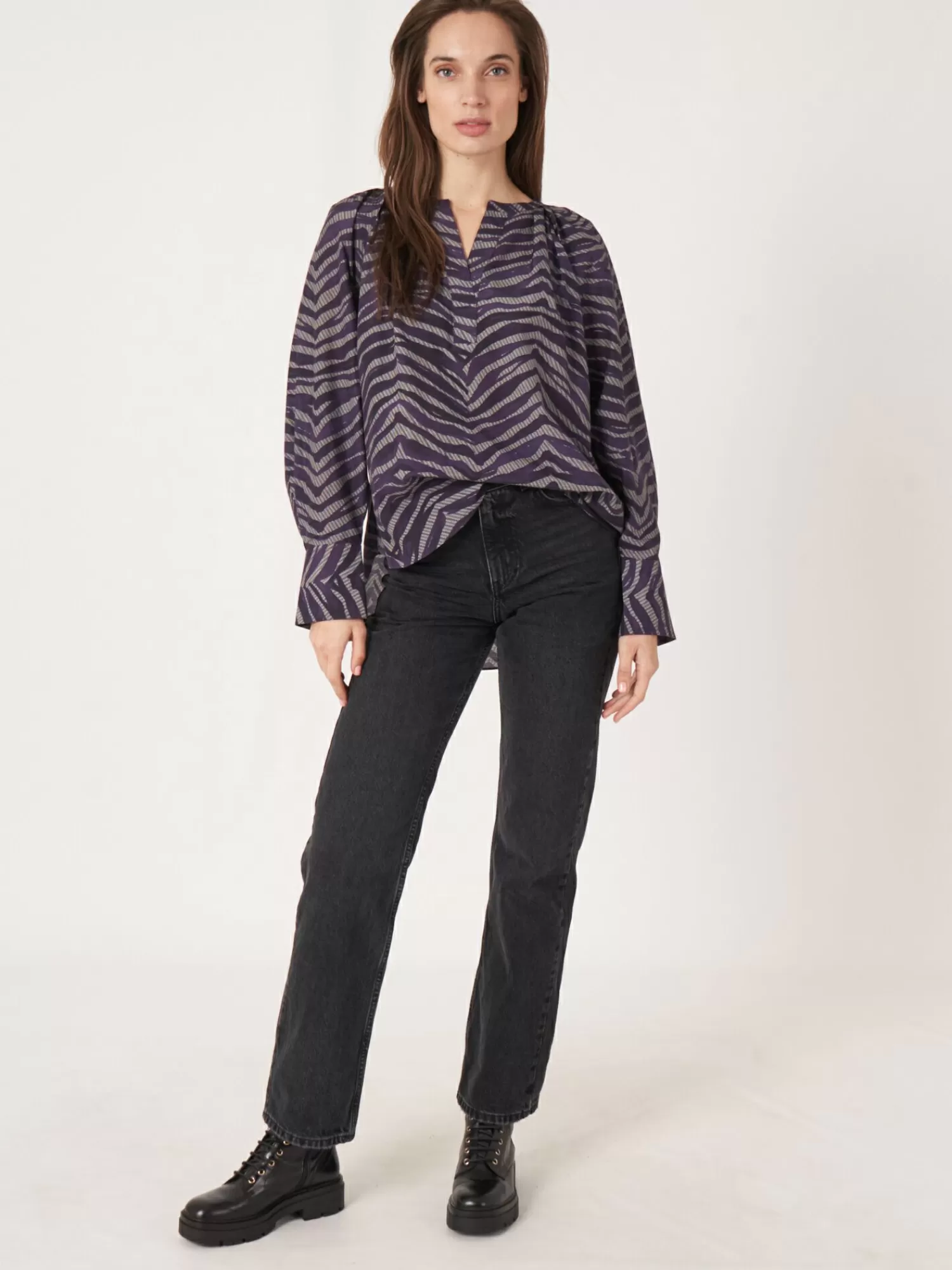REPEAT cashmere Blouses*Blouse met zebraprint van katoen-zijde-mix Amethyst