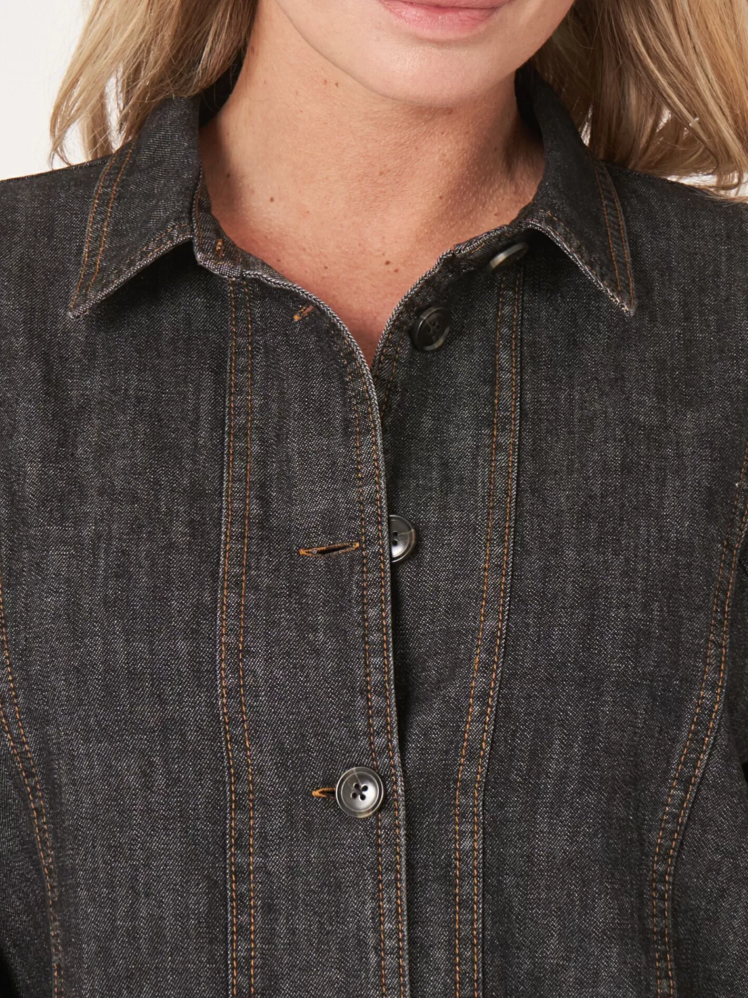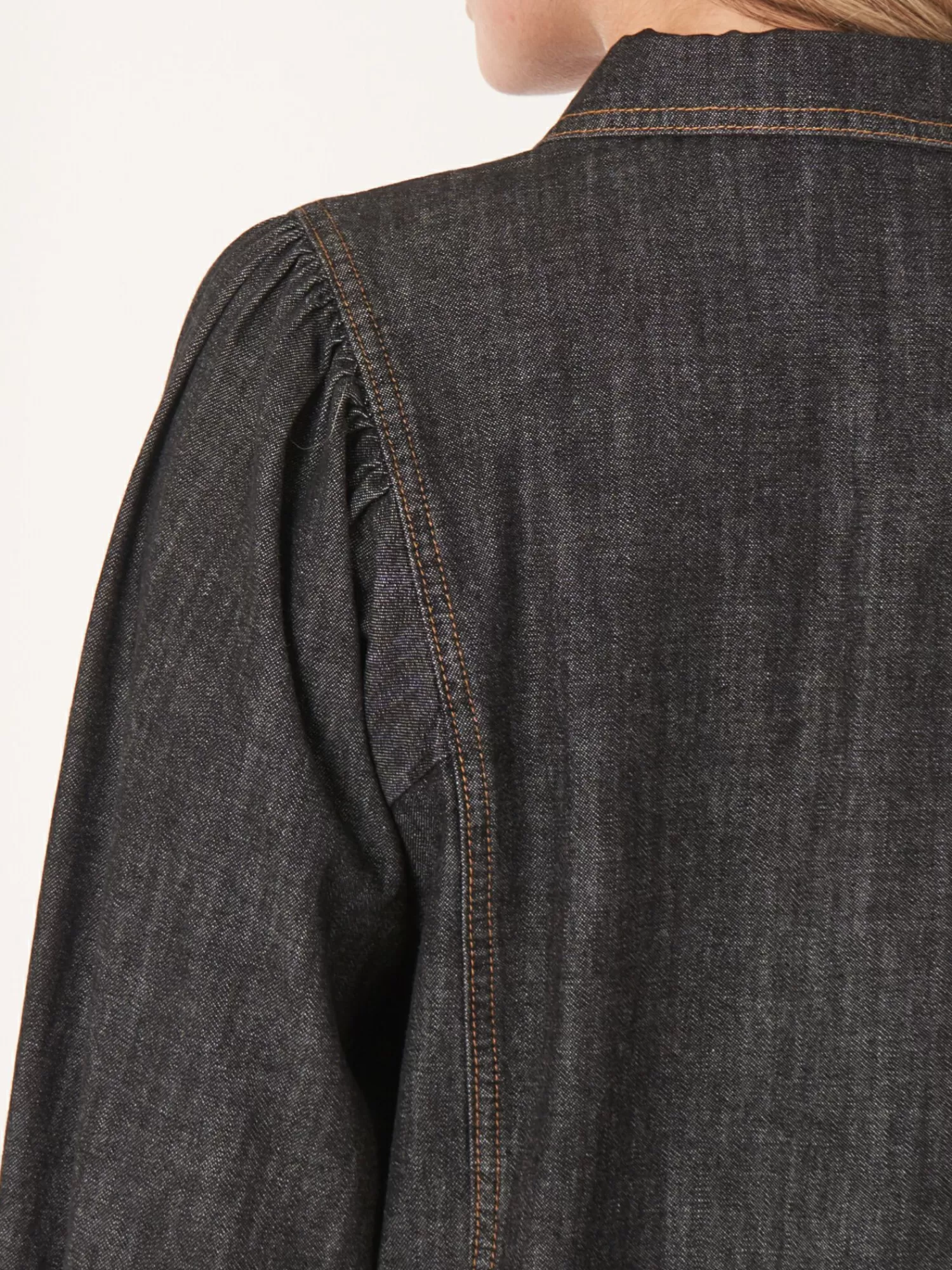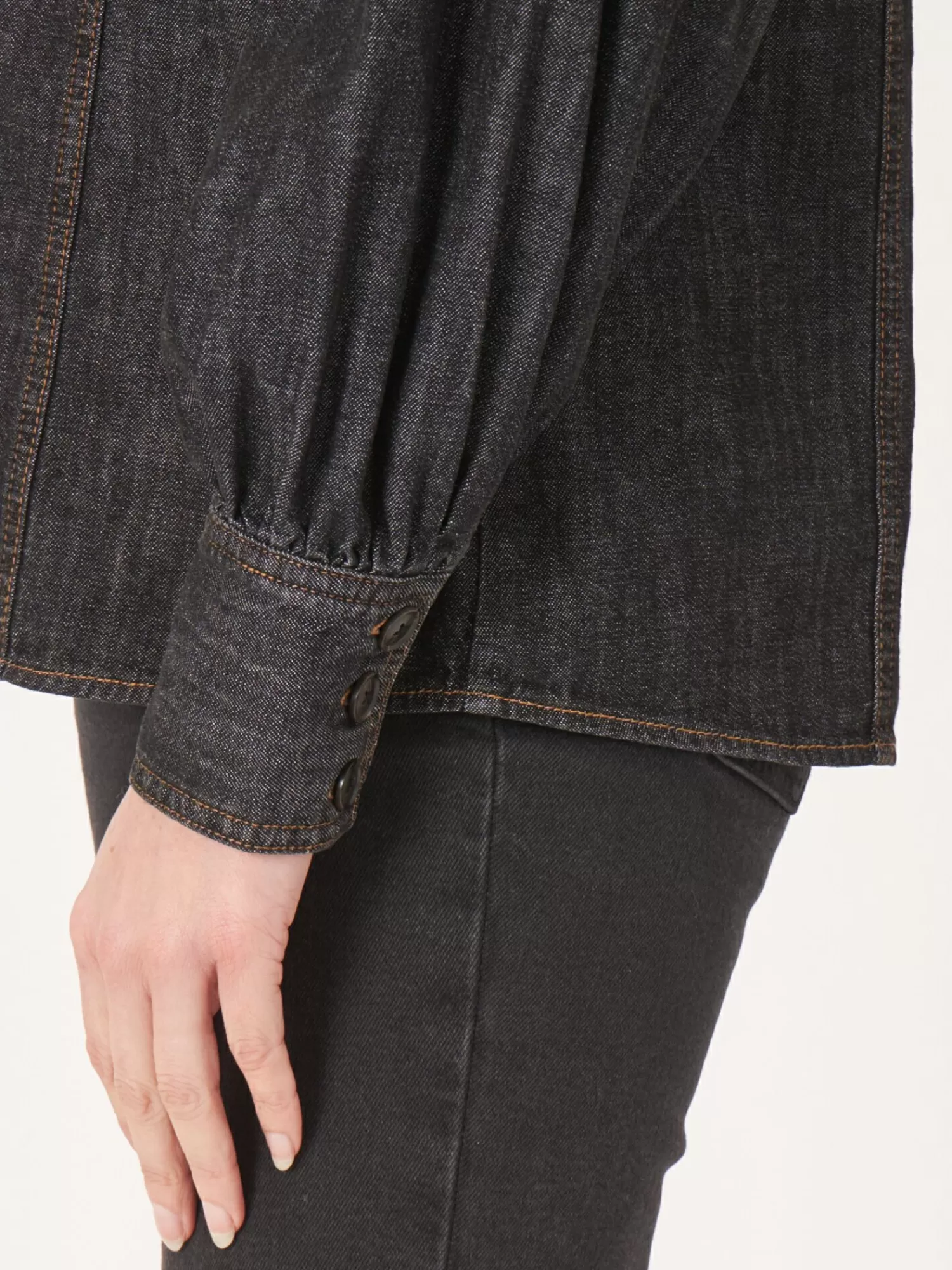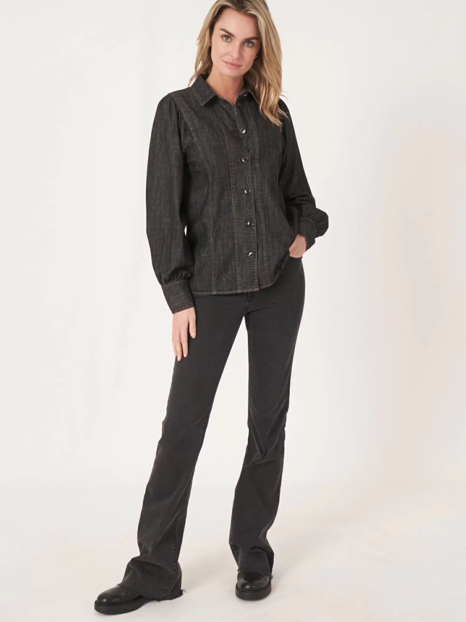 REPEAT cashmere Blouses*Denim blouse met pofmouwen Dk.Grey