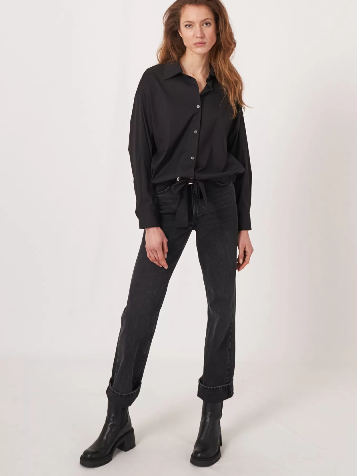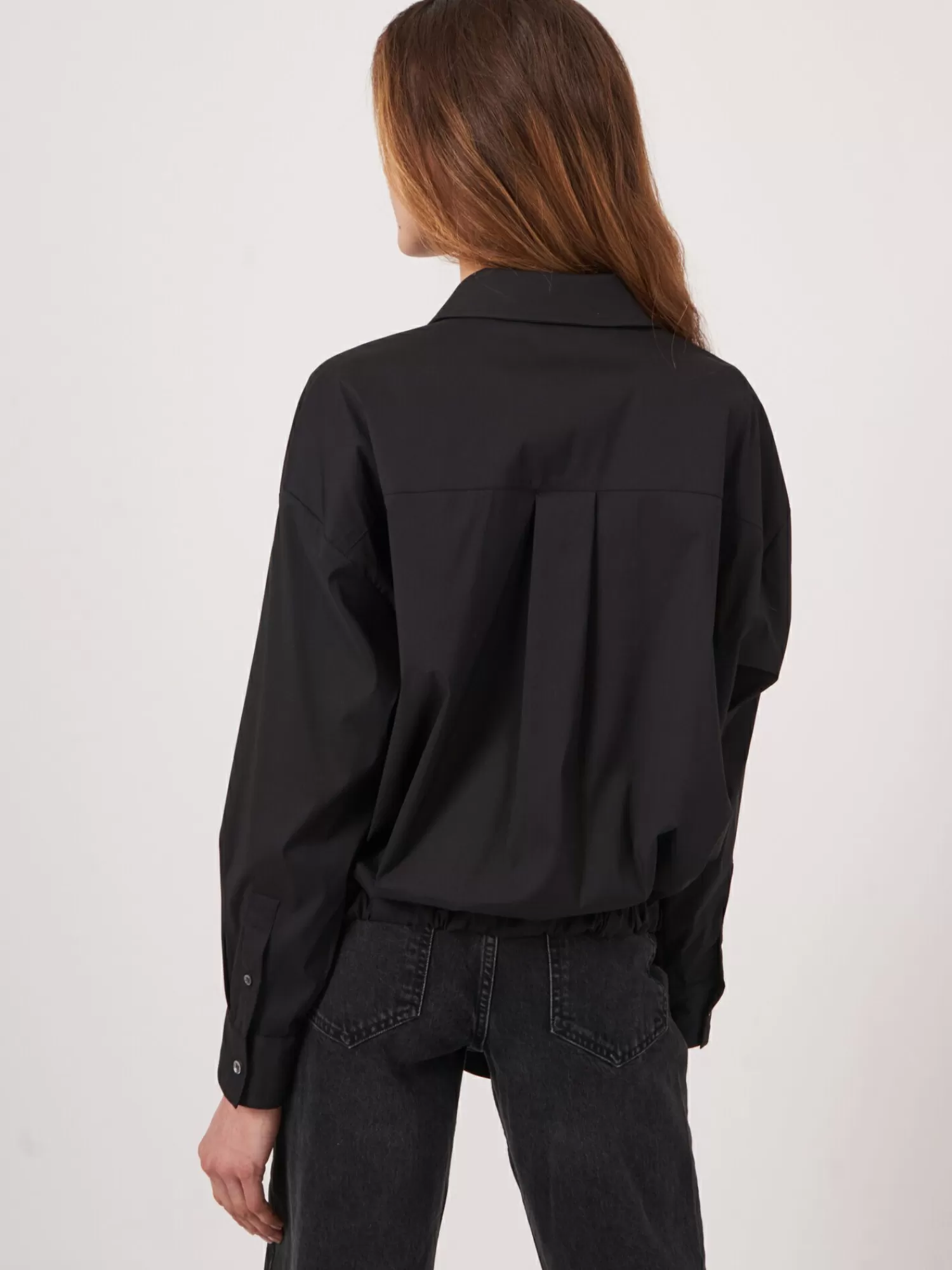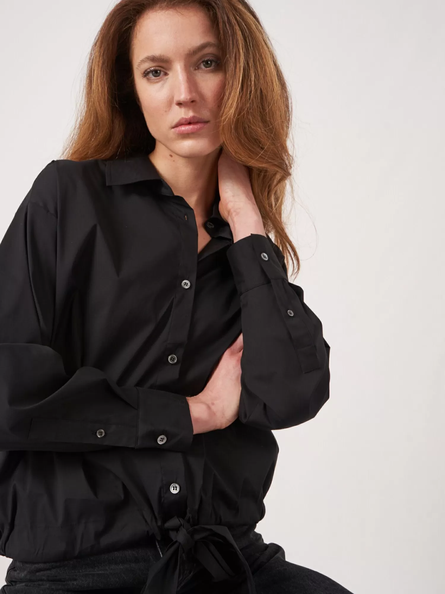 REPEAT cashmere Blouses*Popeline blouse met trekkoord Black