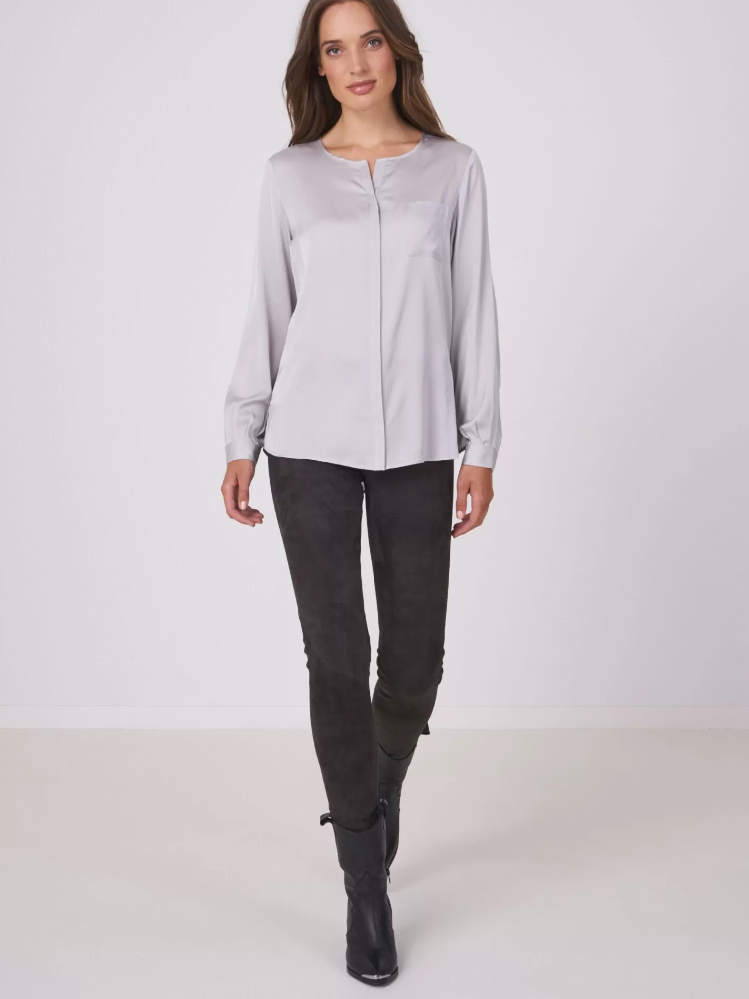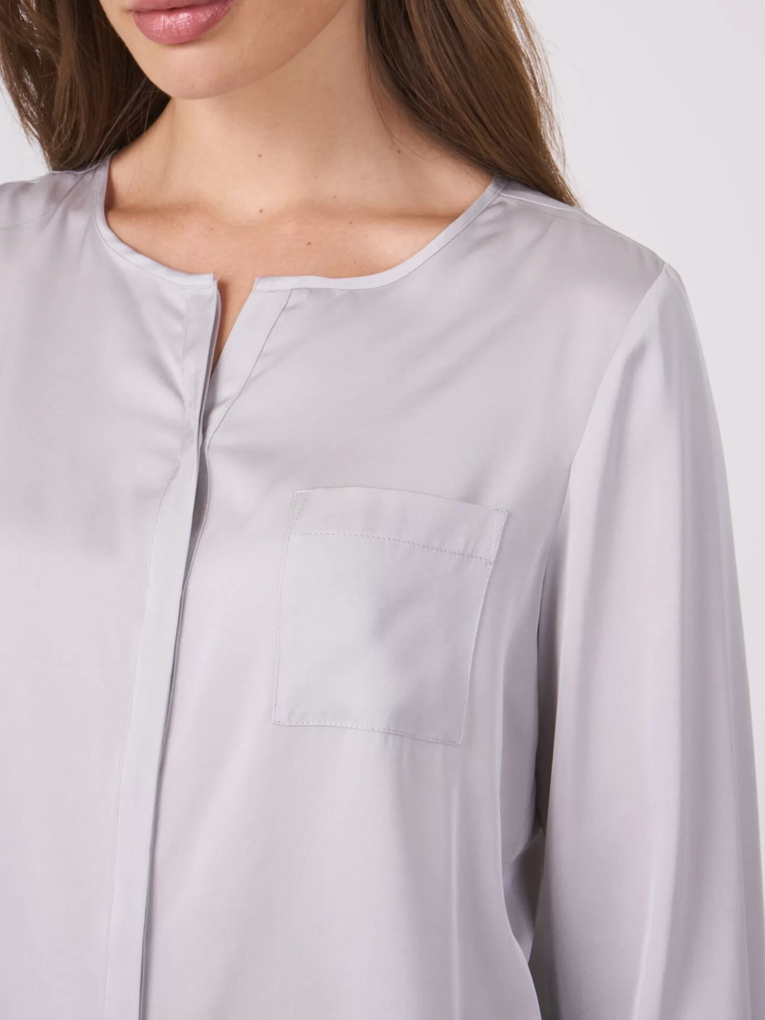 REPEAT cashmere Blouses*Zijden blouse met split in de hals LightGrey