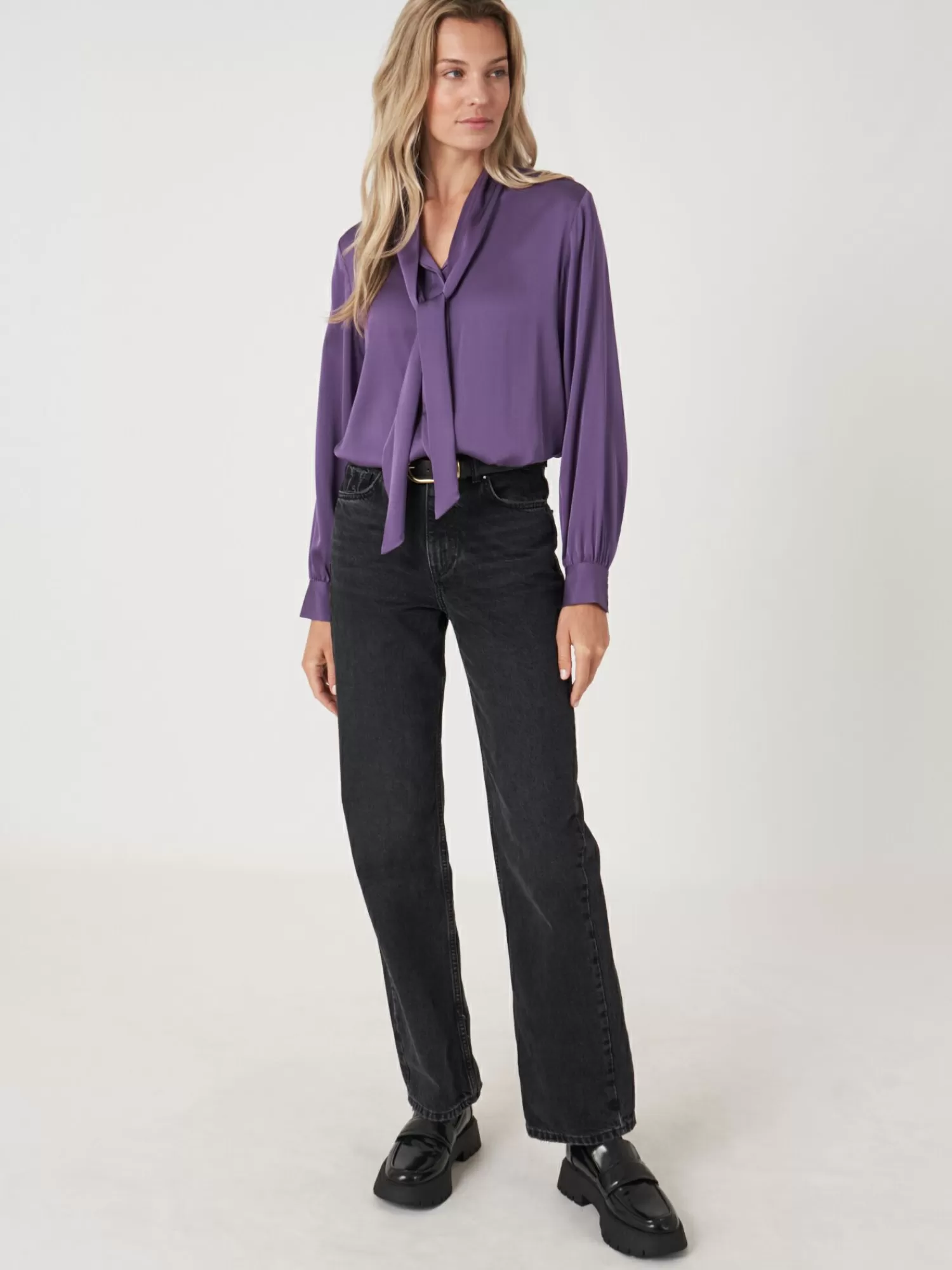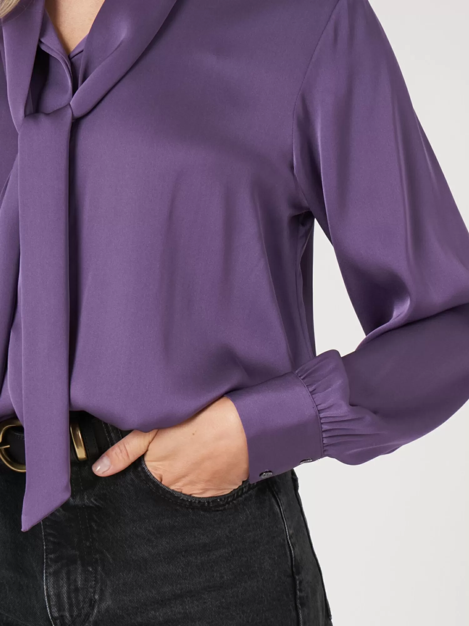 REPEAT cashmere Blouses*Zijden blouse met strikhals Amethyst