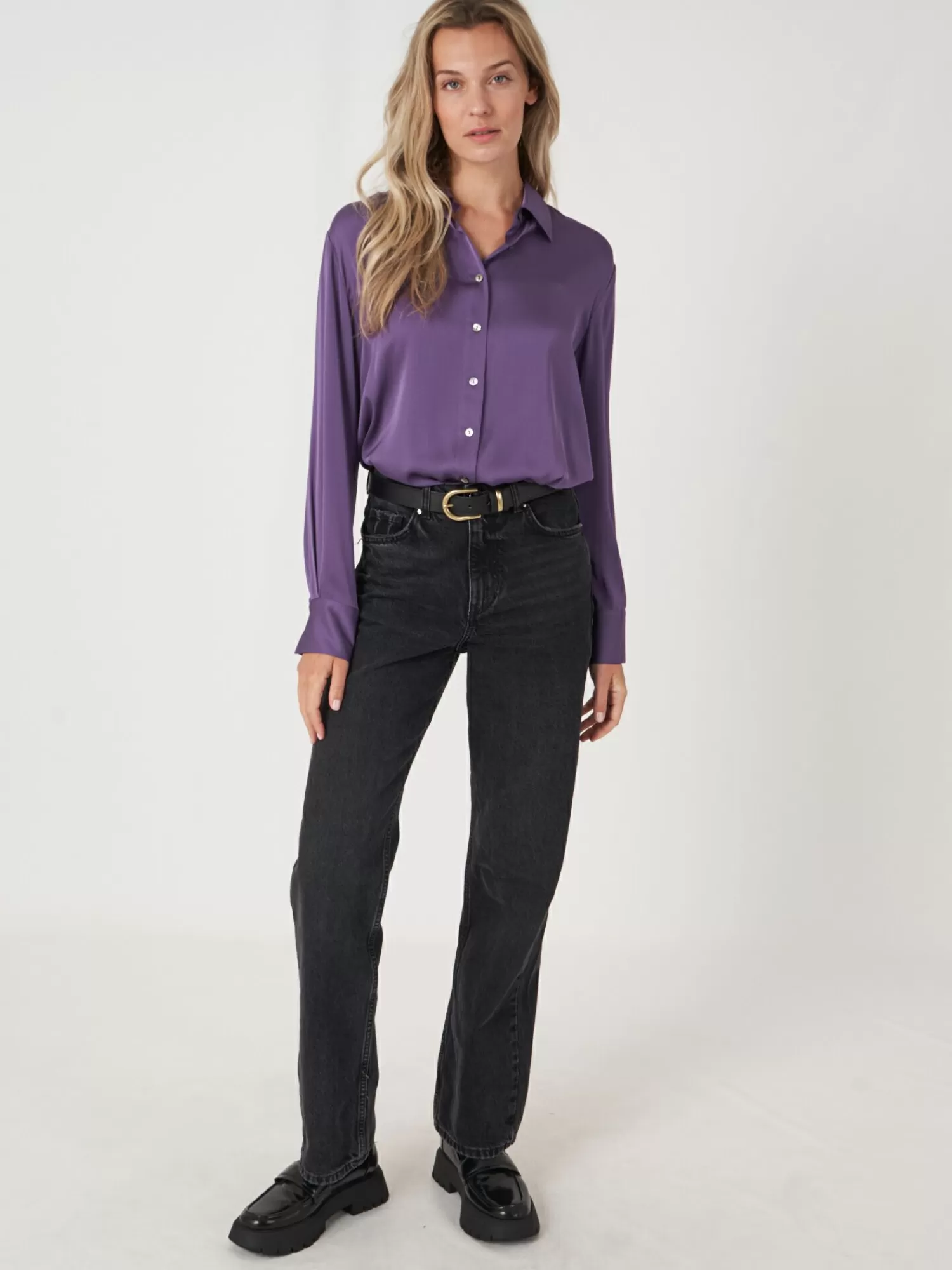 Be the first to review “REPEAT cashmere Blouses*Zijden overhemd met borstzakje en zijsplitten Amethyst” Reactie annuleren