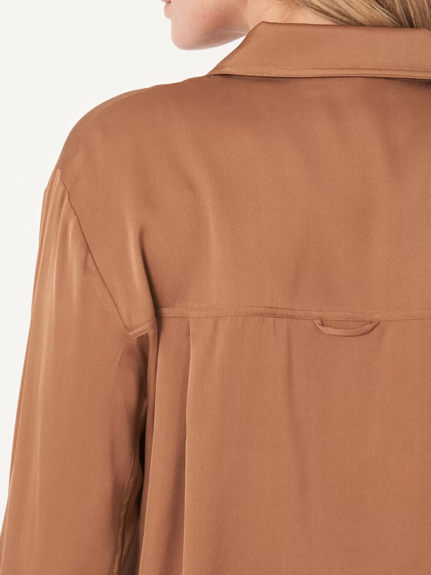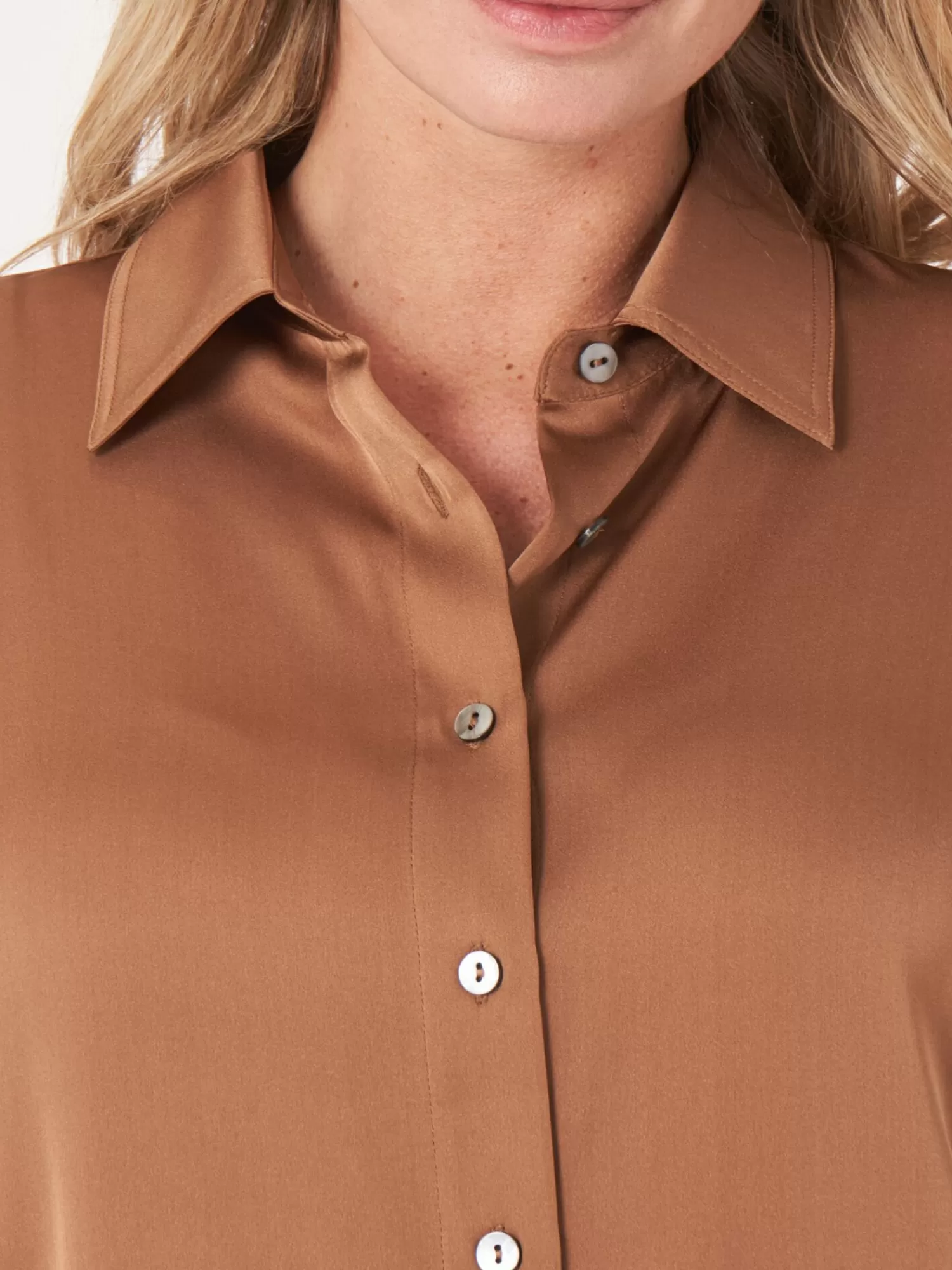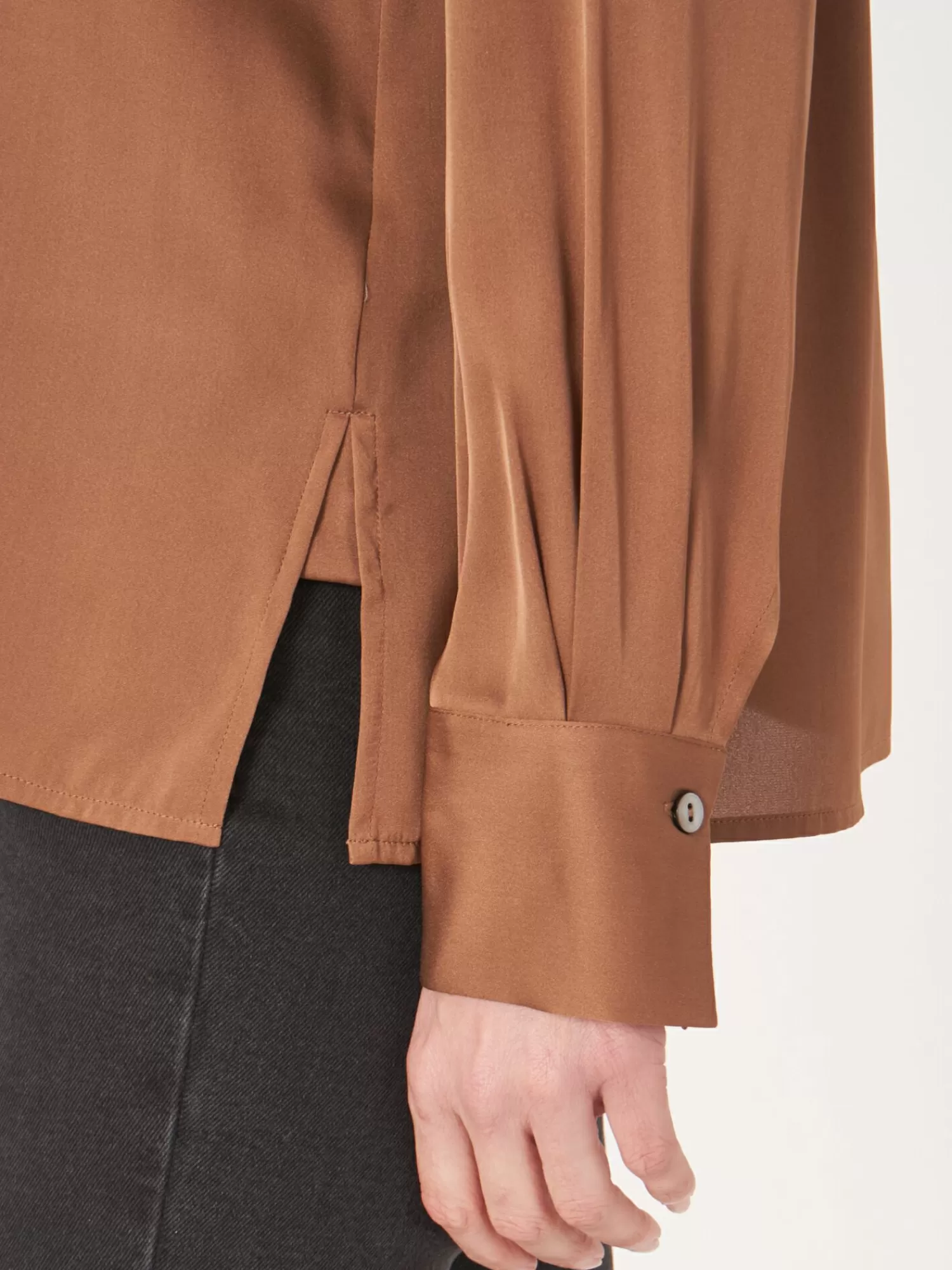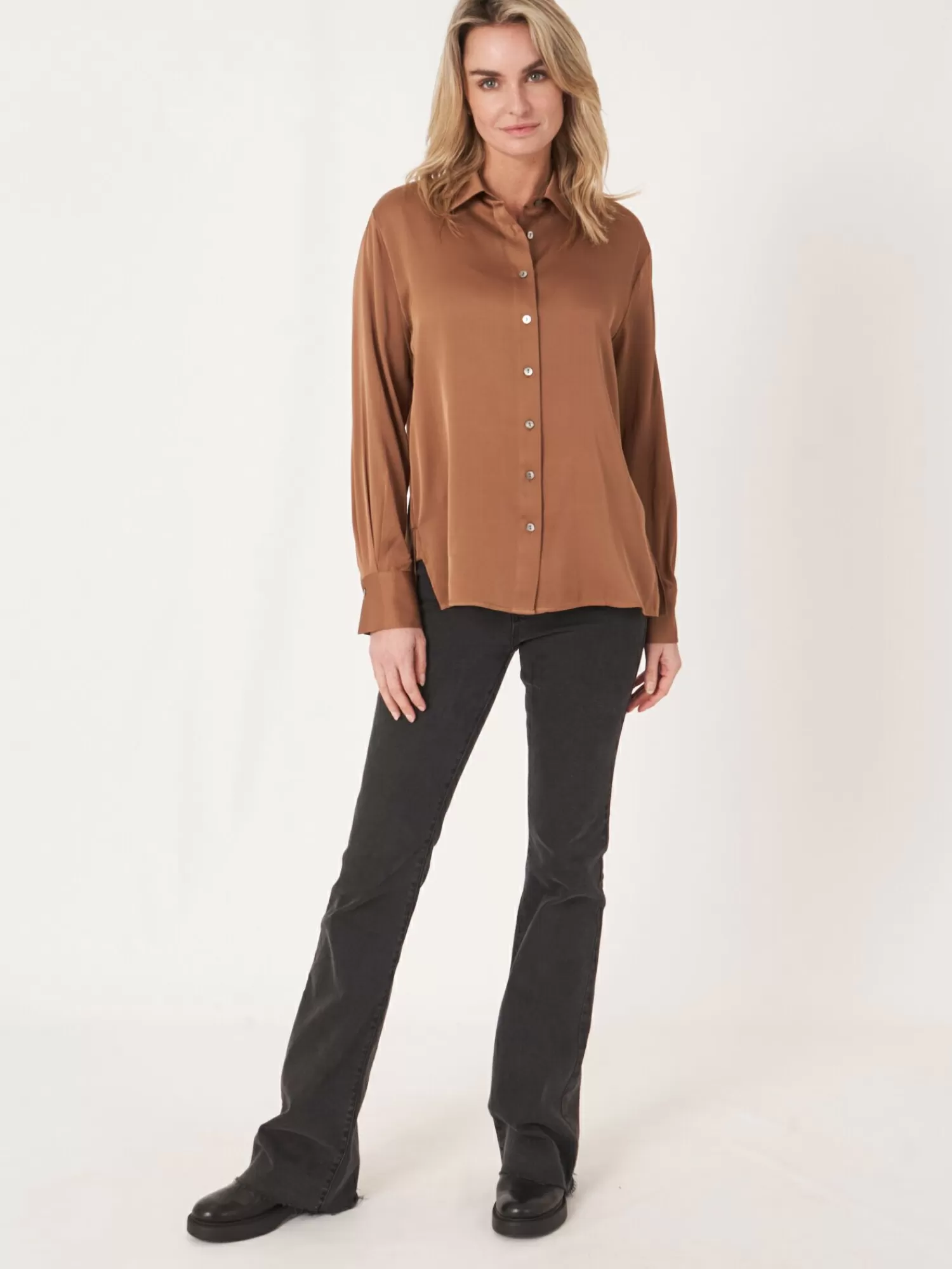 REPEAT cashmere Blouses*Zijden overhemd met borstzakje en zijsplitten Hazel