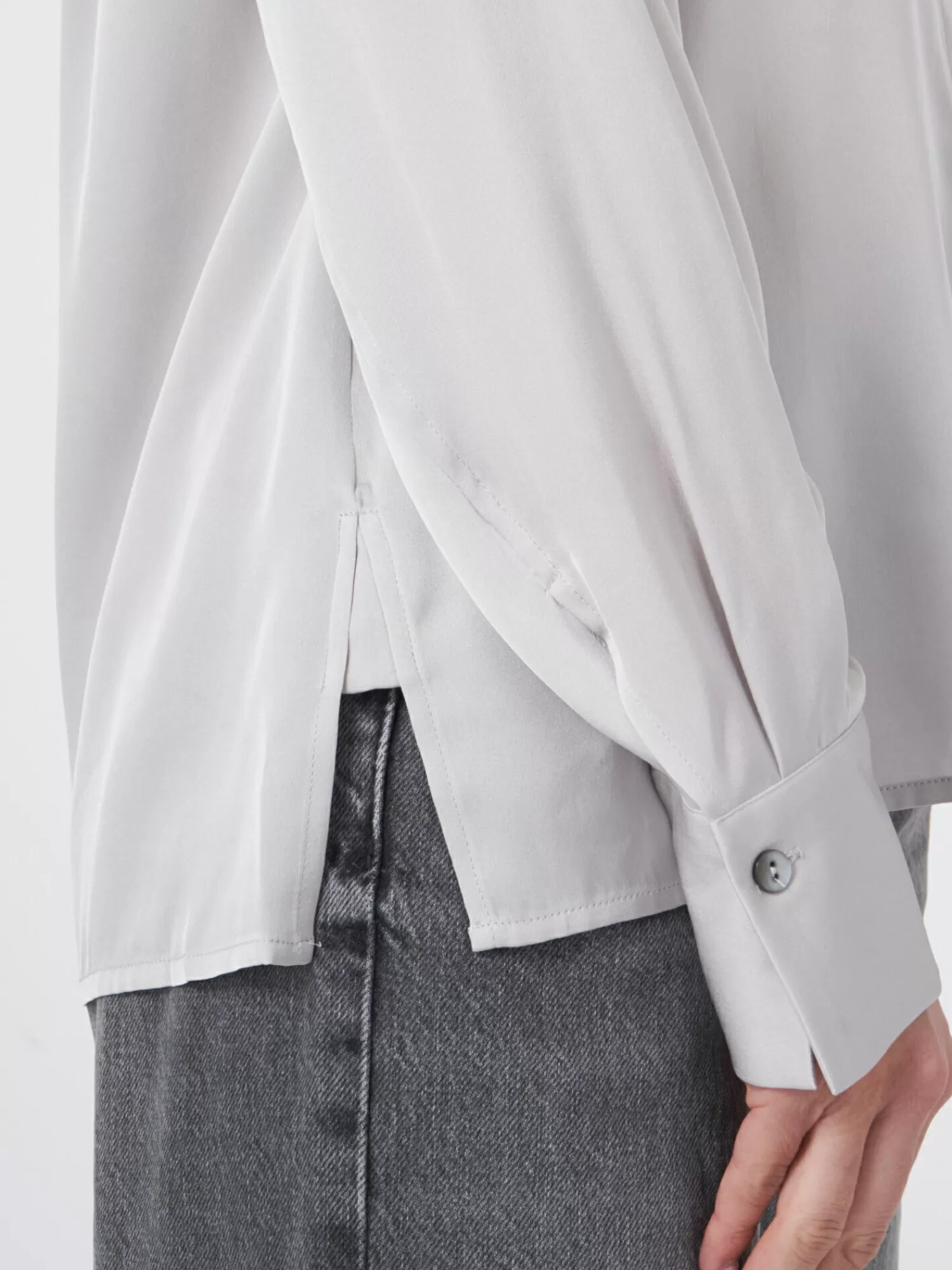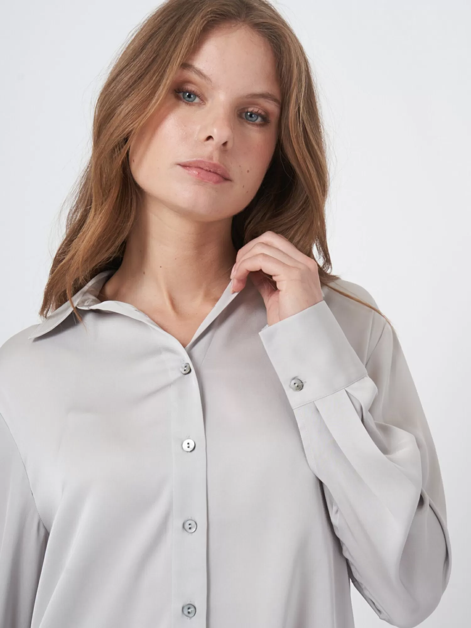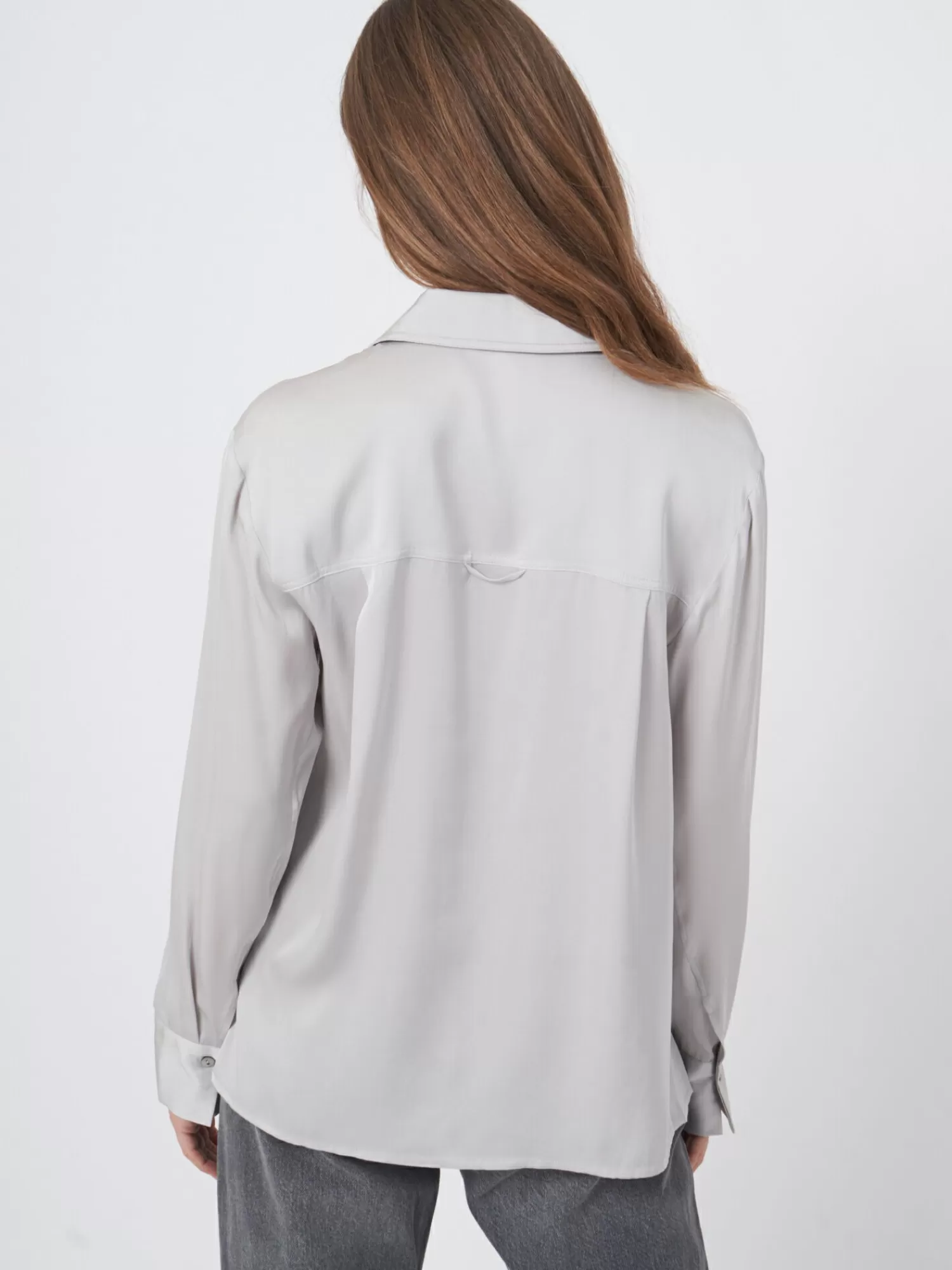 REPEAT cashmere Blouses*Zijden overhemd met borstzakje en zijsplitten Silver