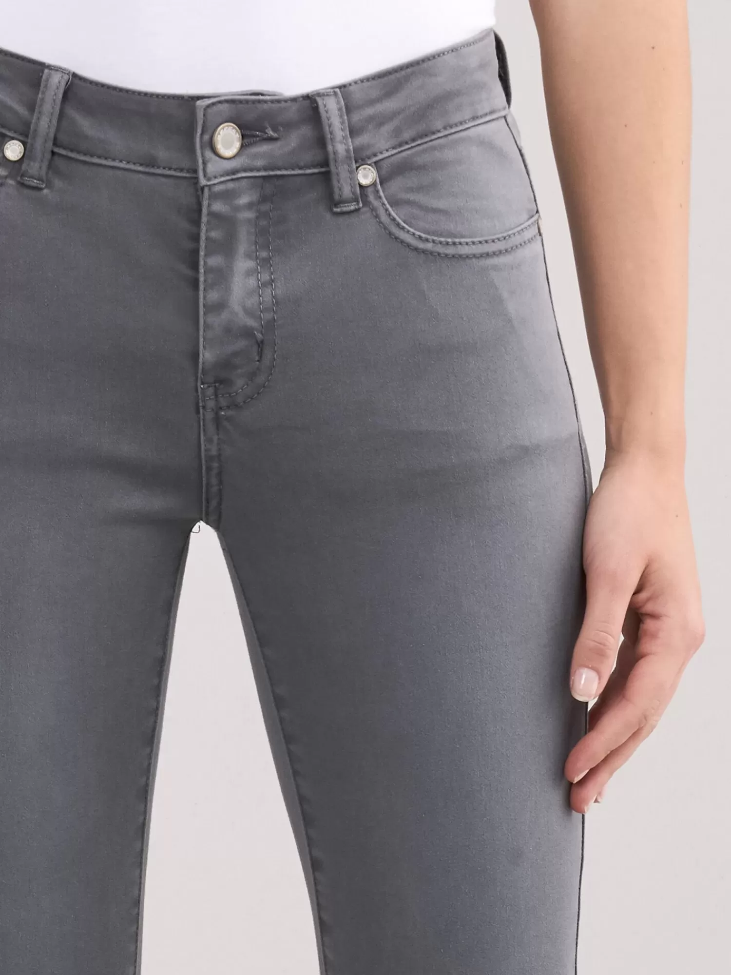 Geweven stretchstofKnoopsluiting en ritsMiddelhoge tailleSkinny Fit – nauwaansluitend5-Pocket StyleWashed lookHandwas, c…