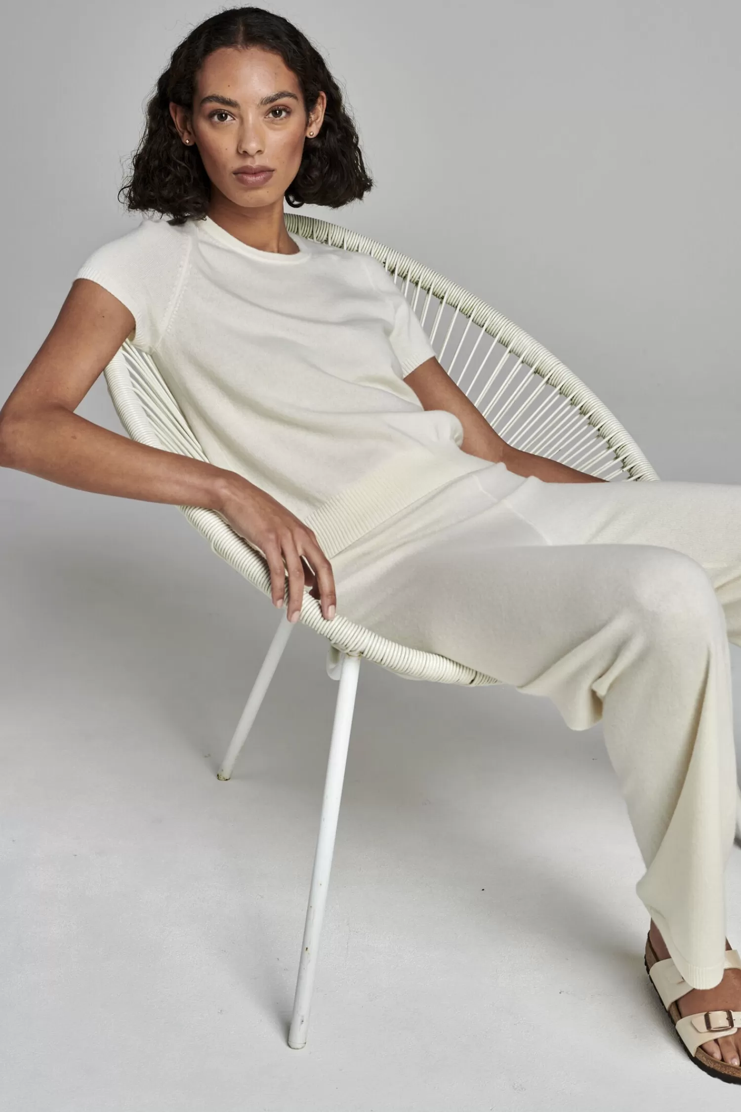 REPEAT cashmere Broeken*Wijde cashmere broek Cream