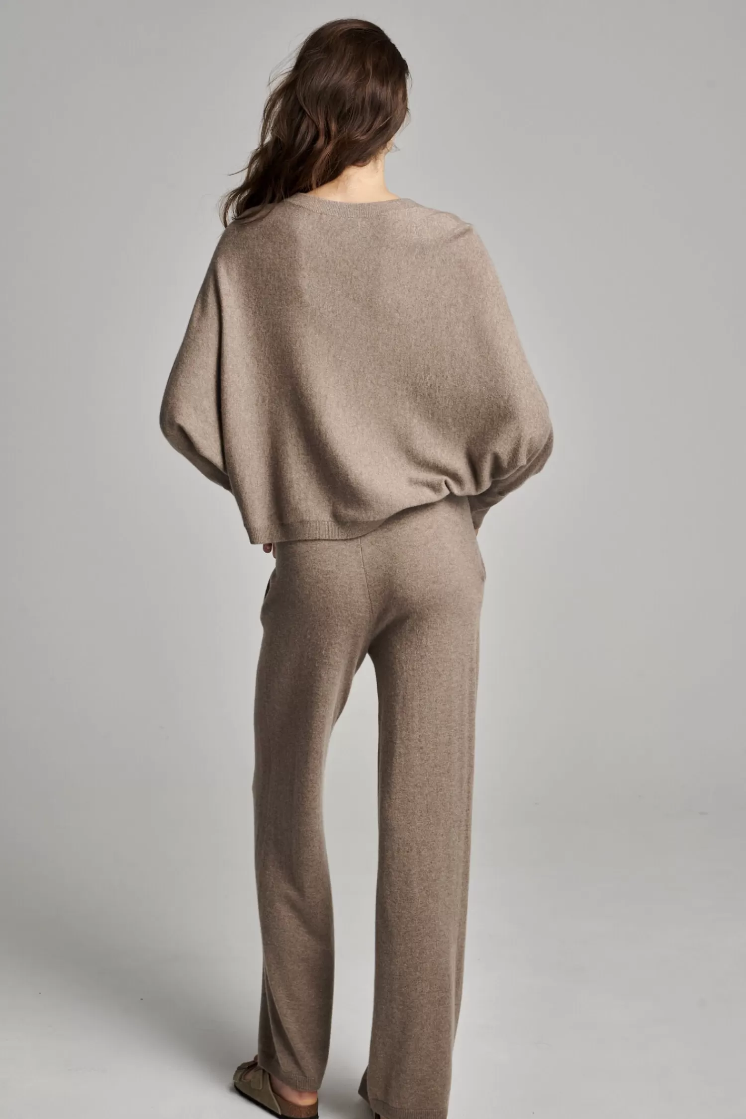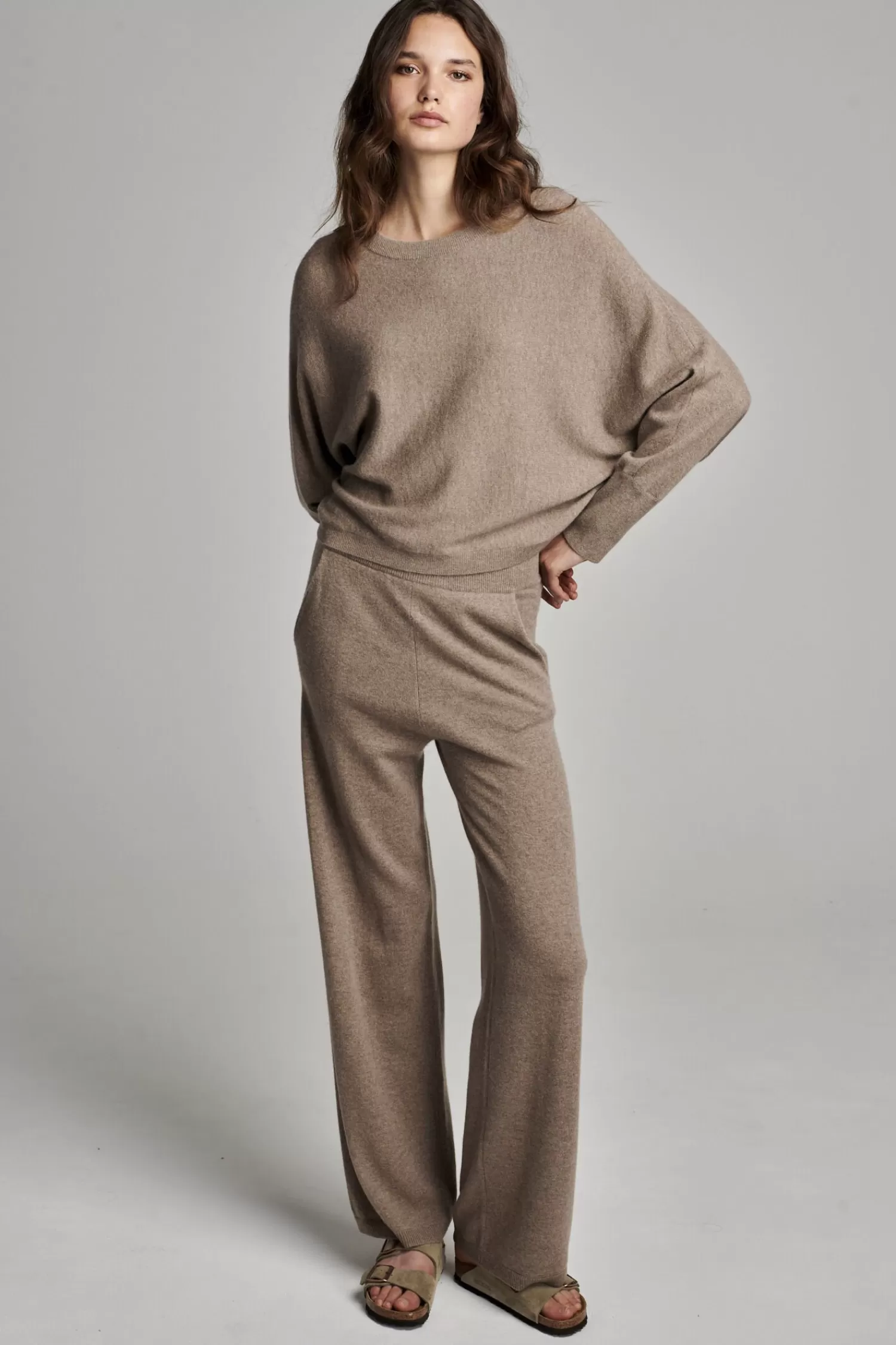 REPEAT cashmere Broeken*Wijde cashmere broek Taupe