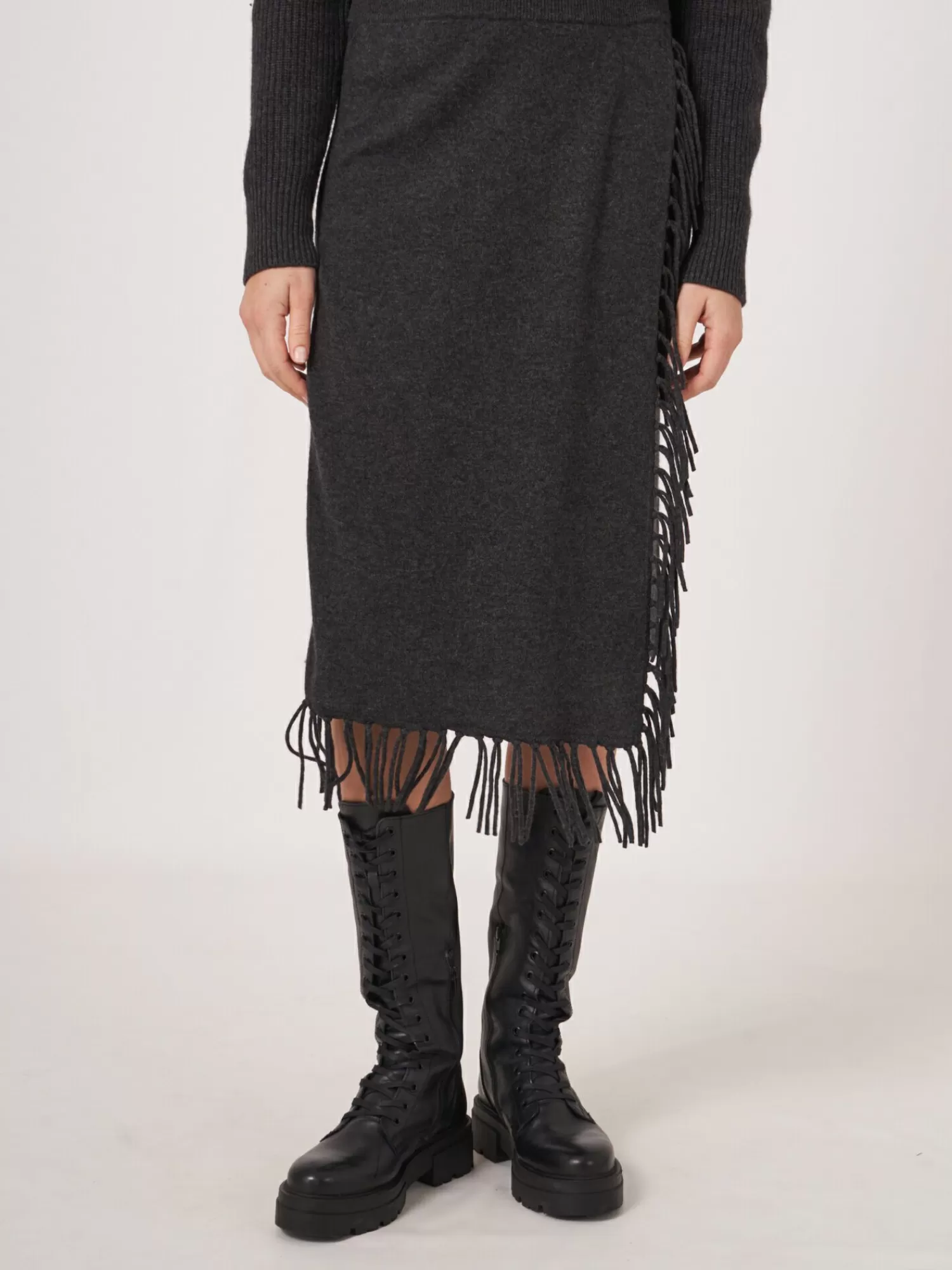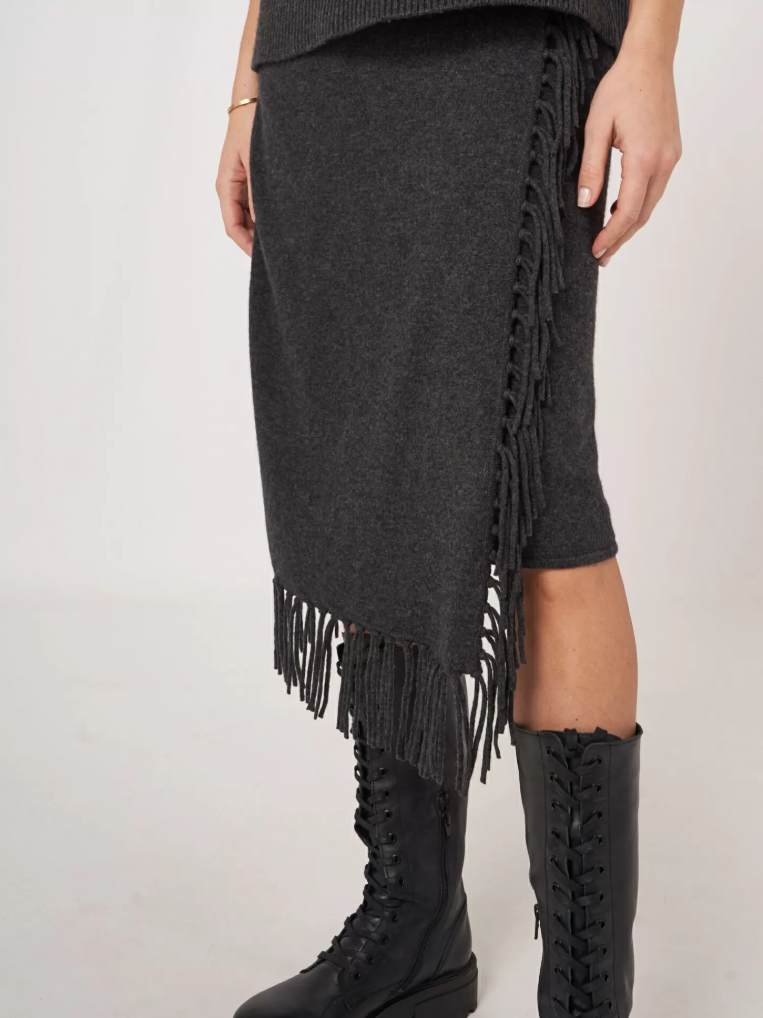 REPEAT cashmere Jurken En Rokken*Gebreide rok met franjes van cashmere mix Charcoal