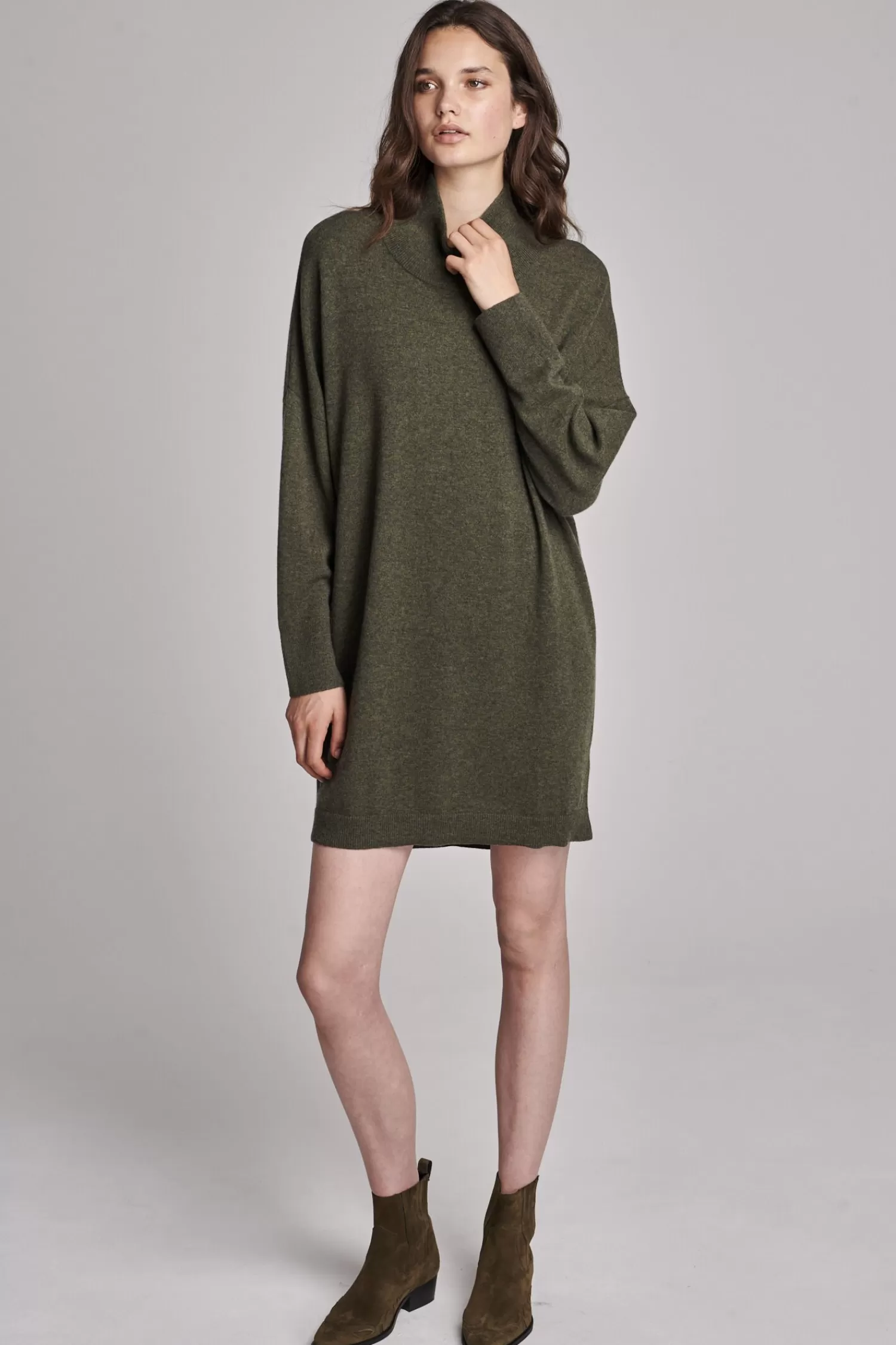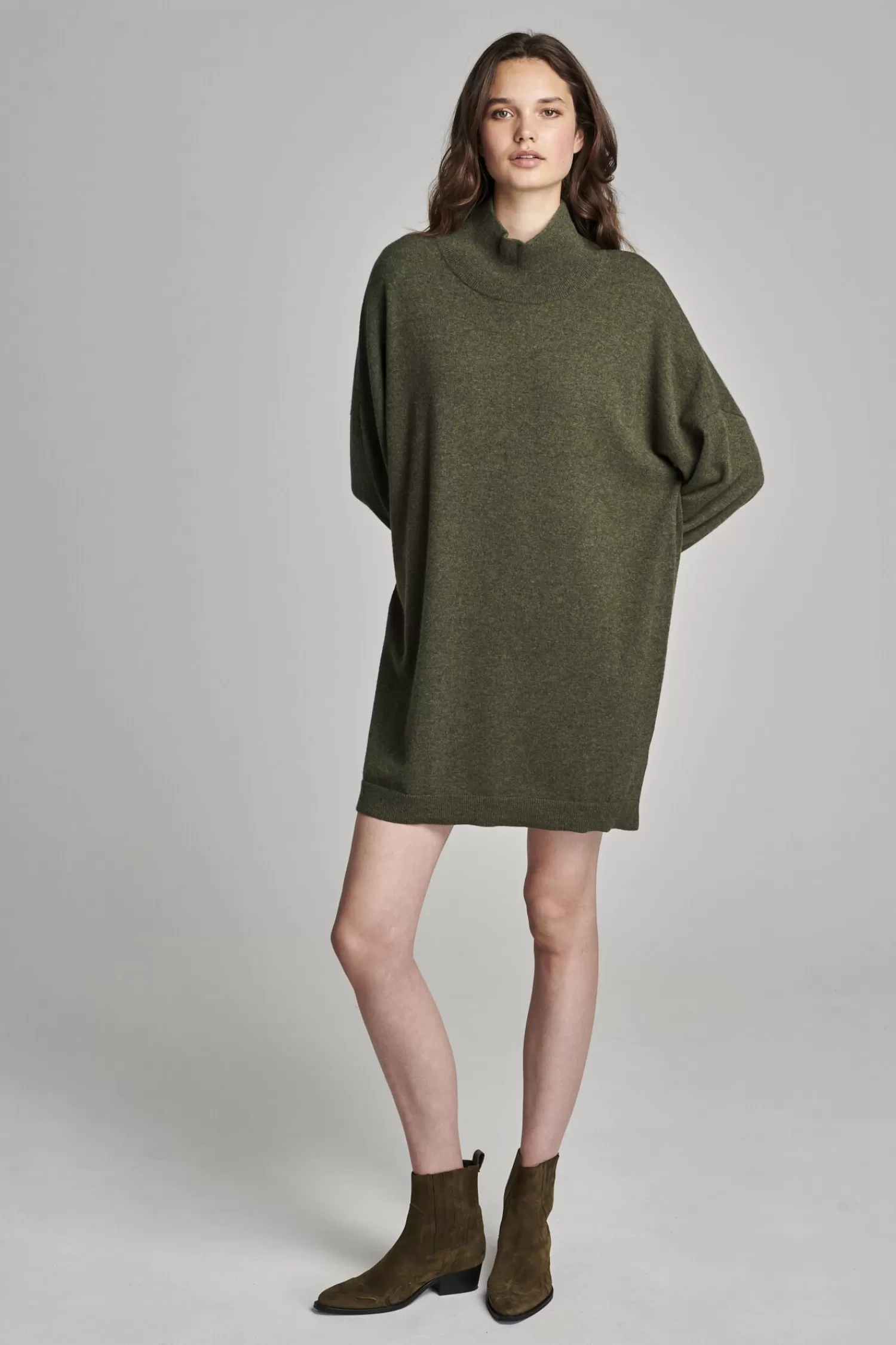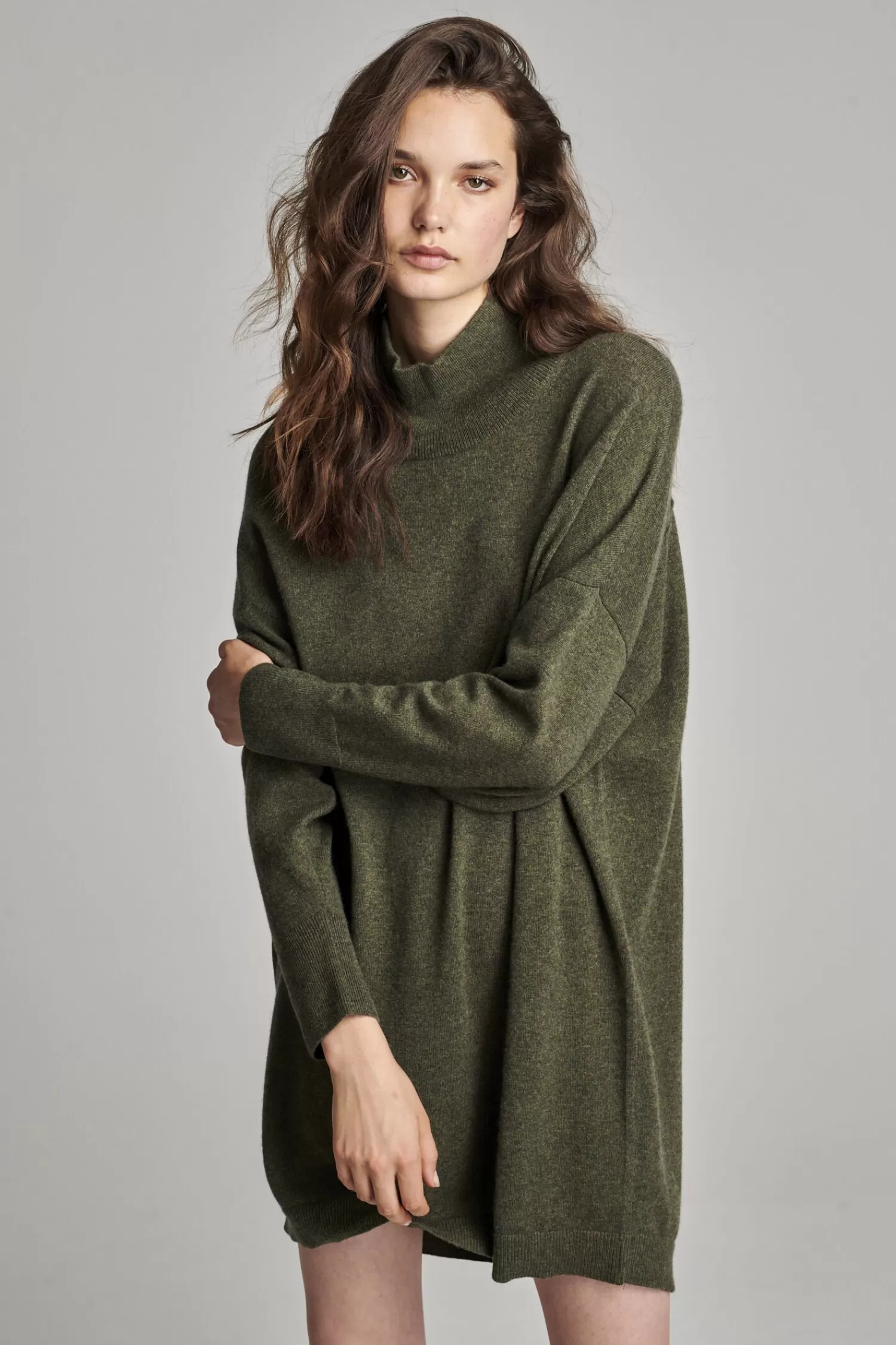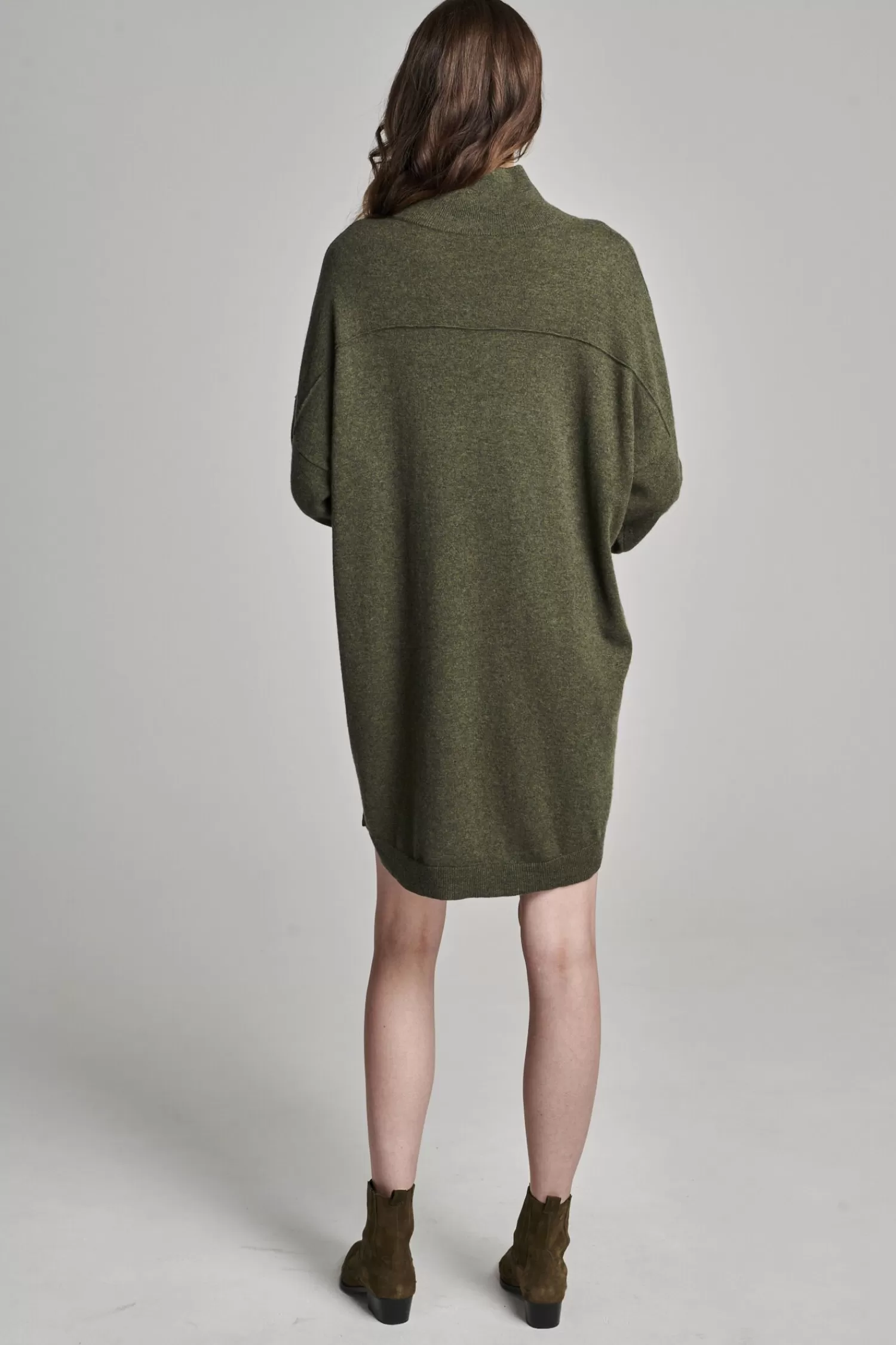 REPEAT cashmere Jurken | Truien*Cashmere jurk met opstaande kraag Khaki