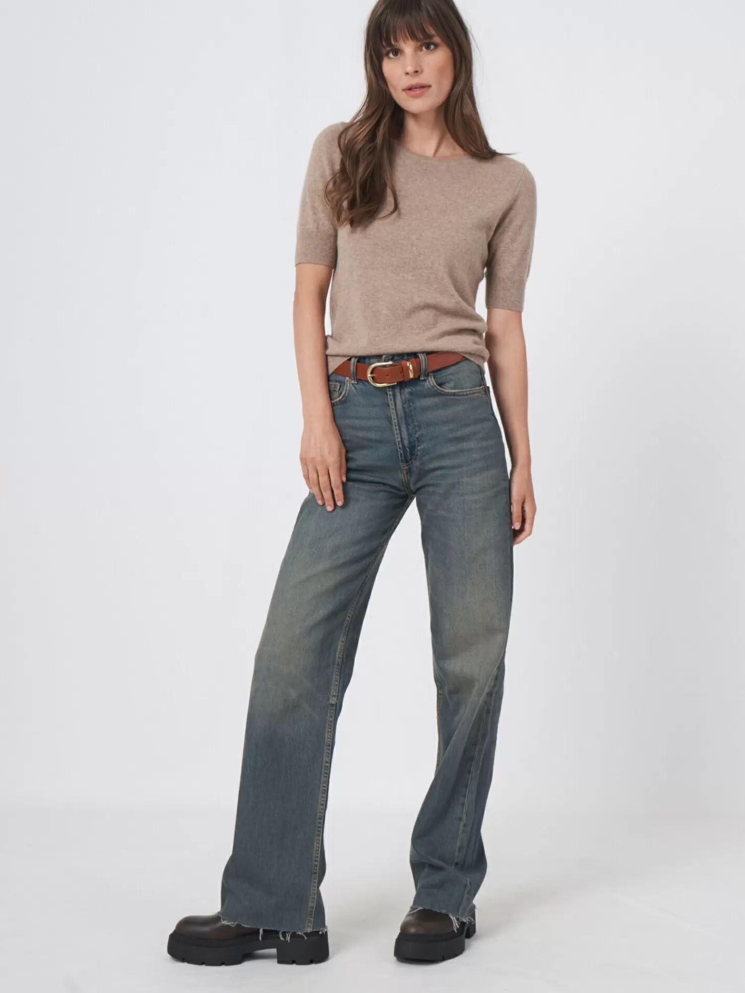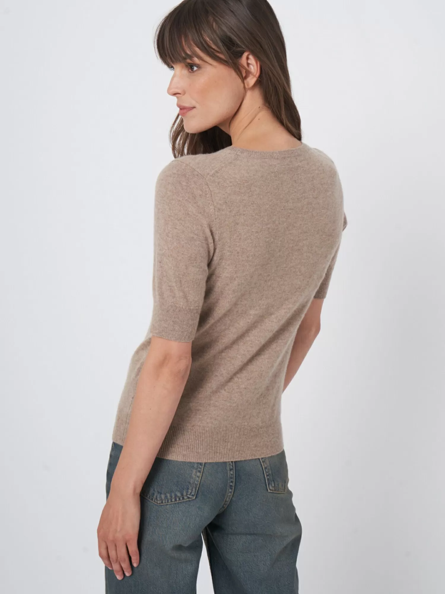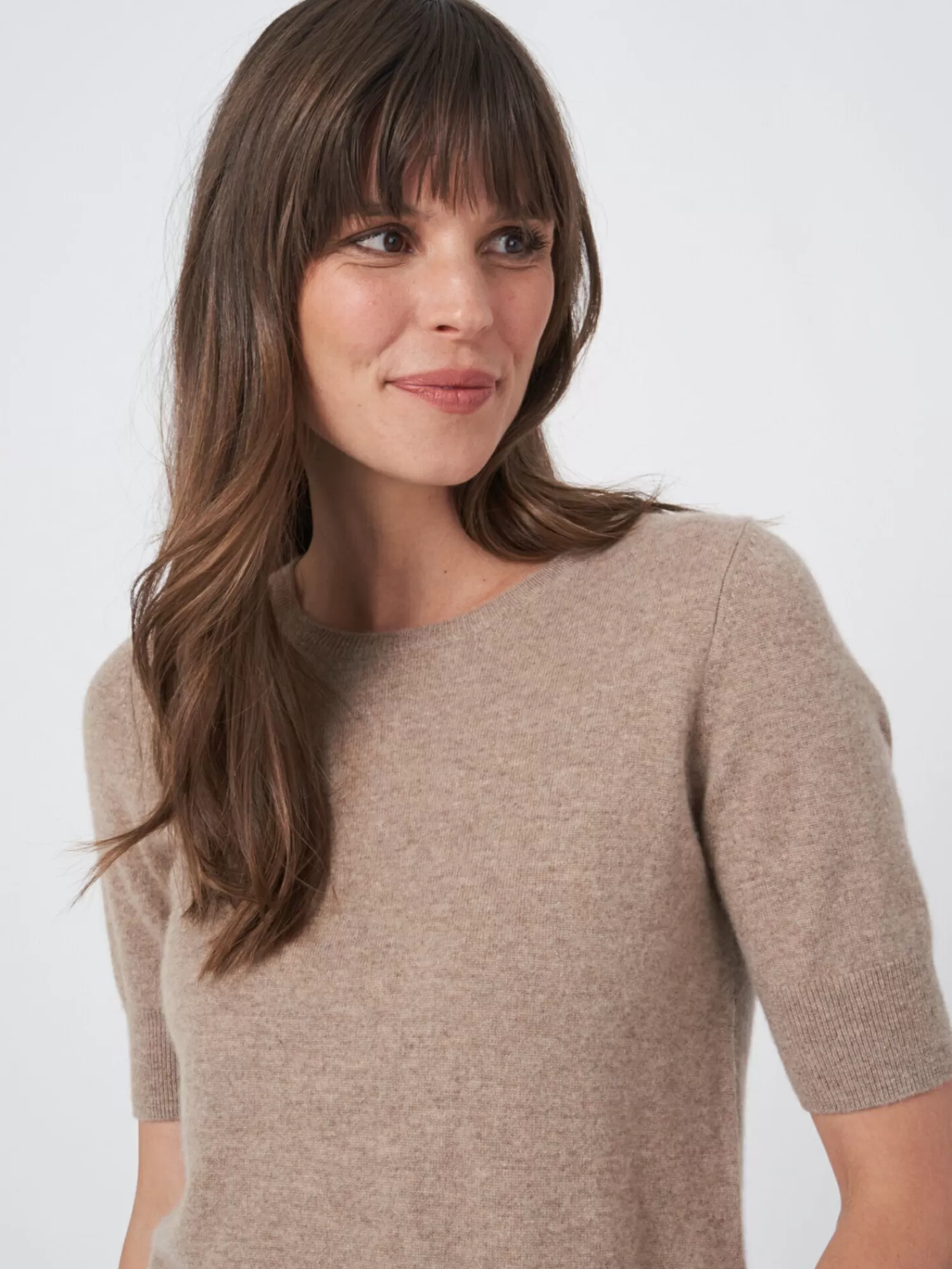 REPEAT cashmere Organic Cashmere | Truien*Basic korte mouw organisch cashmere trui Taupe