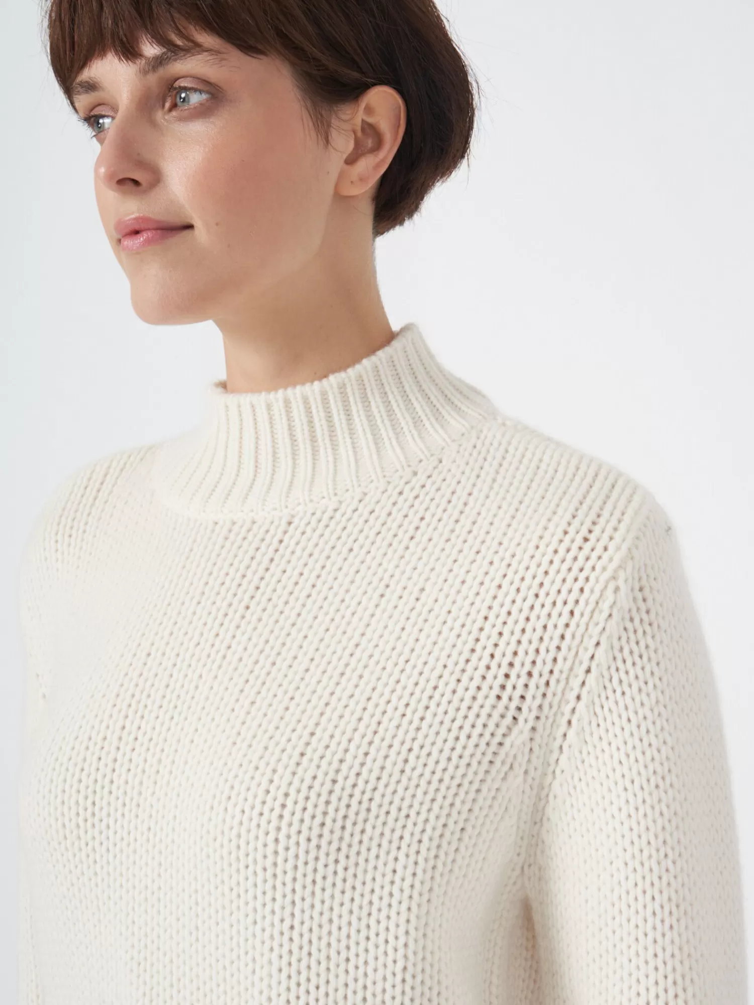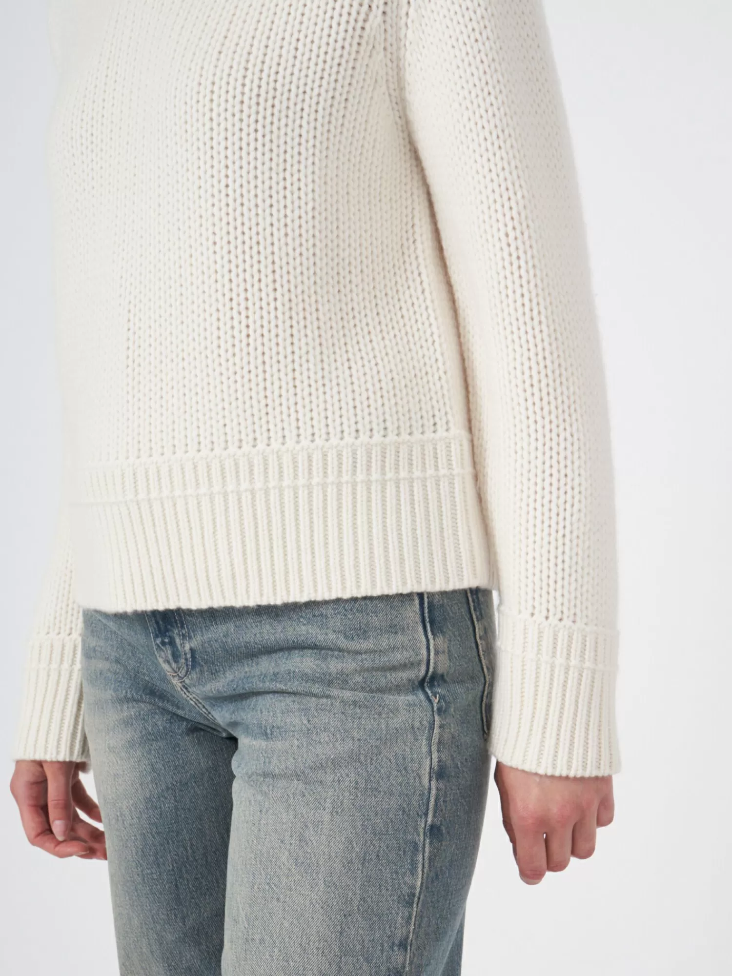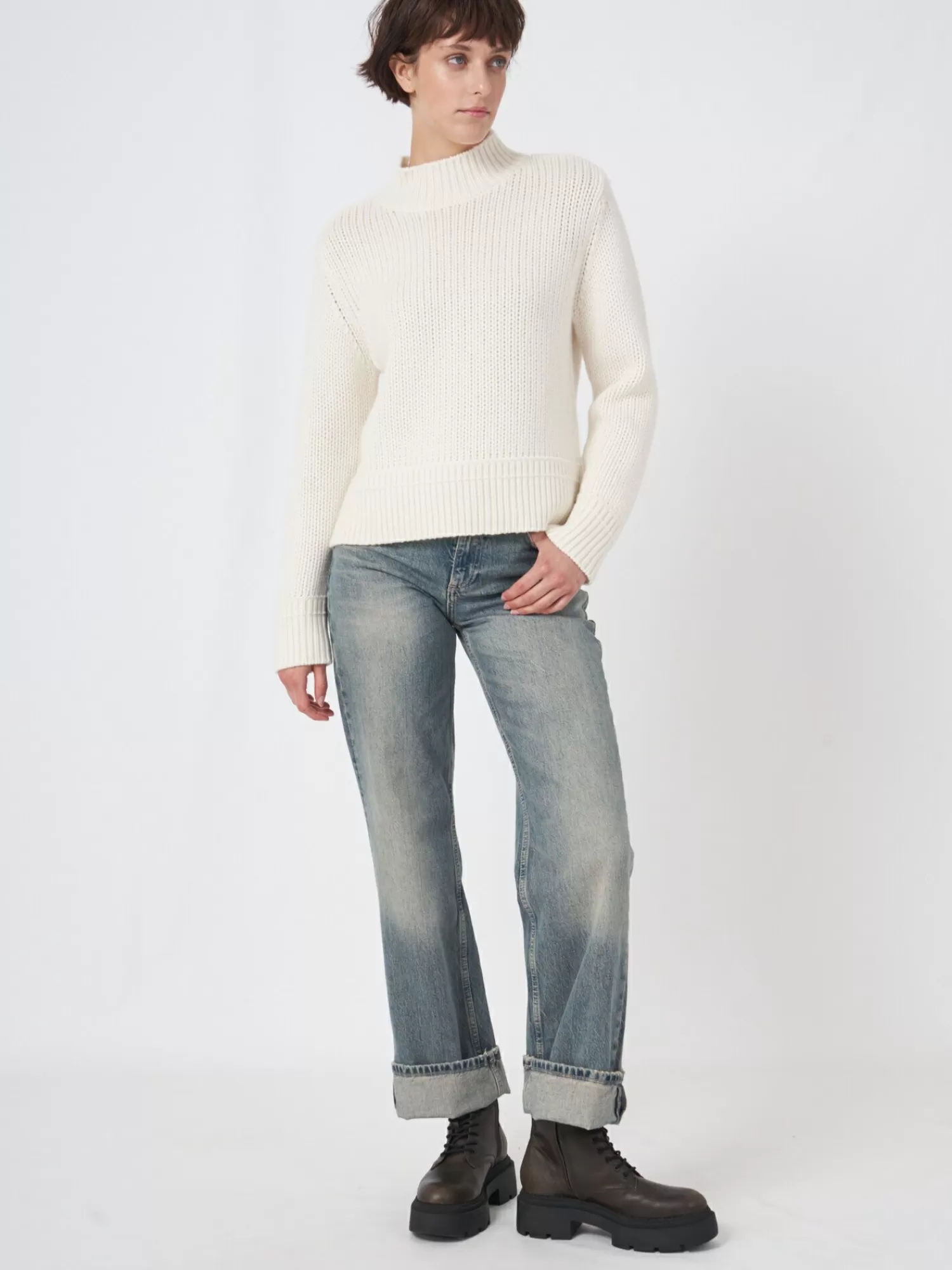 REPEAT cashmere Organic Cashmere | Truien*Grof gebreide cashmere trui met geribde opstaande kraag Cream