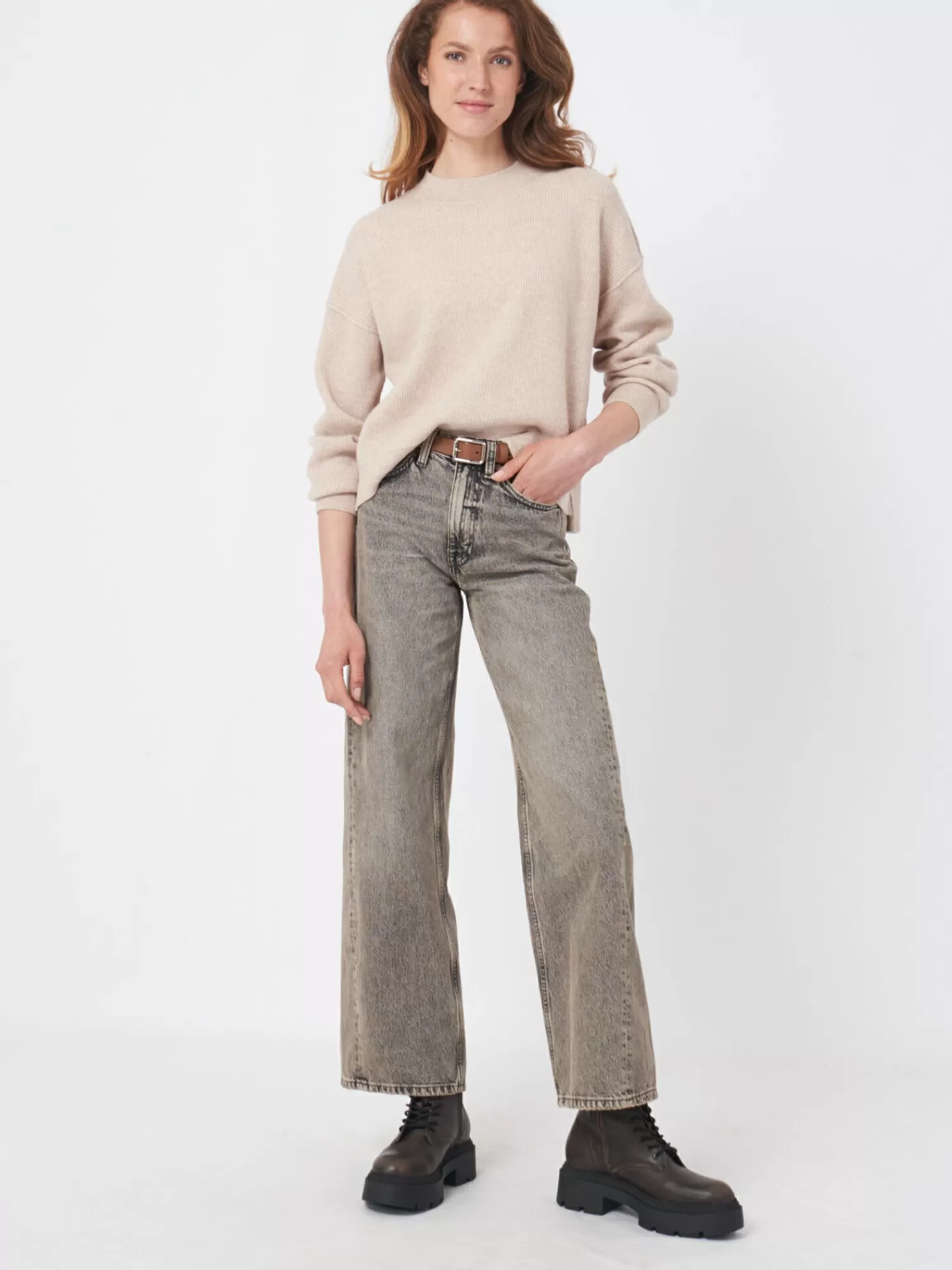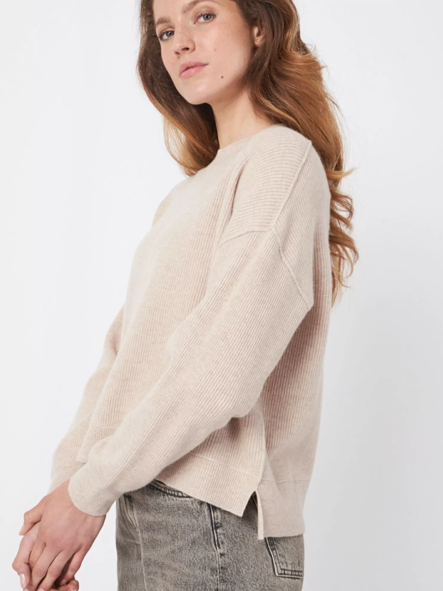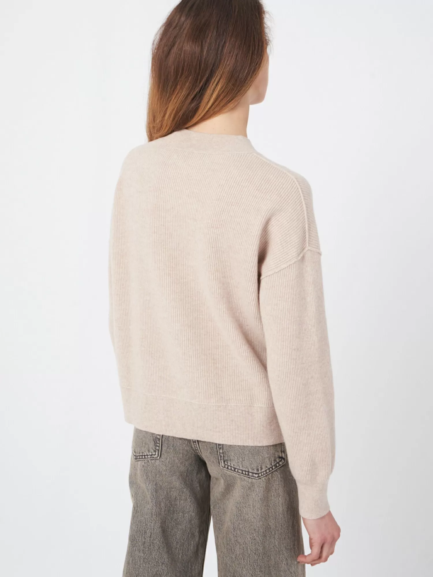 REPEAT cashmere Organic Cashmere | Truien*Korte ribgebreide cashmere trui Beige