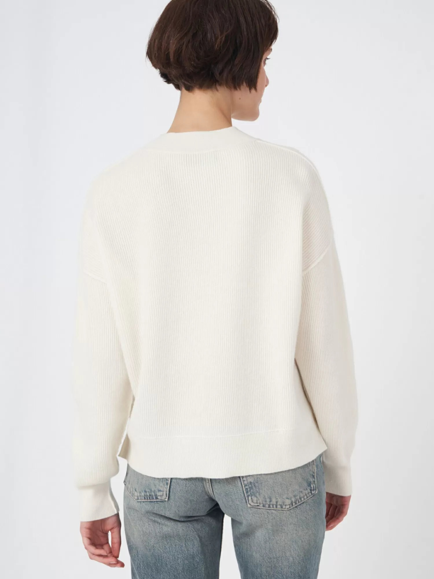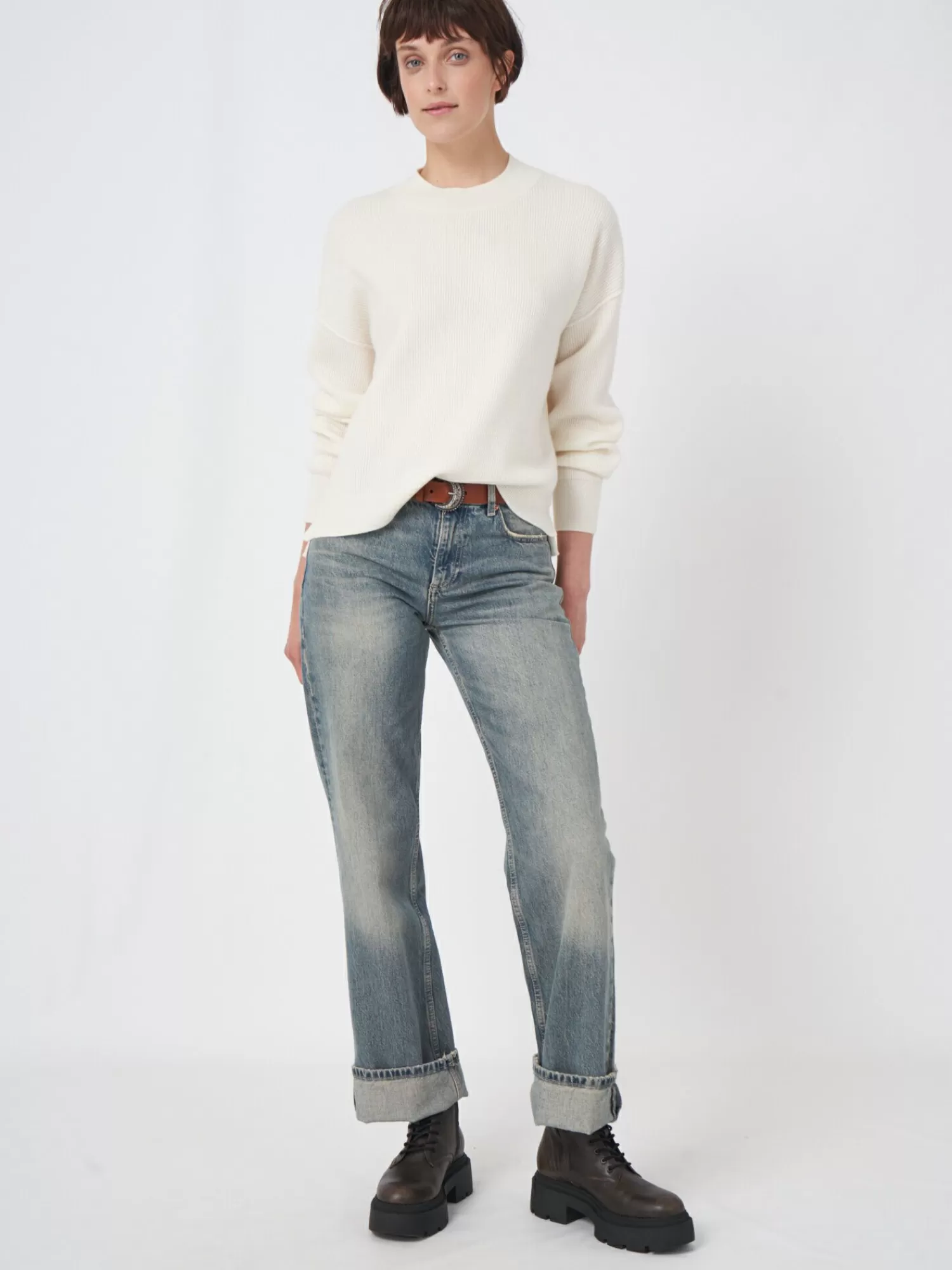 REPEAT cashmere Organic Cashmere | Truien*Korte ribgebreide cashmere trui Cream