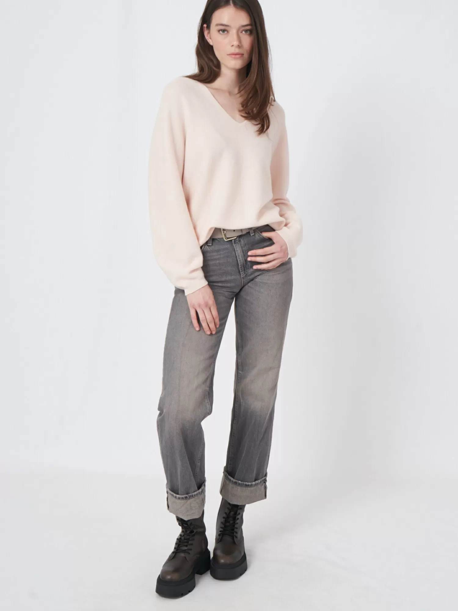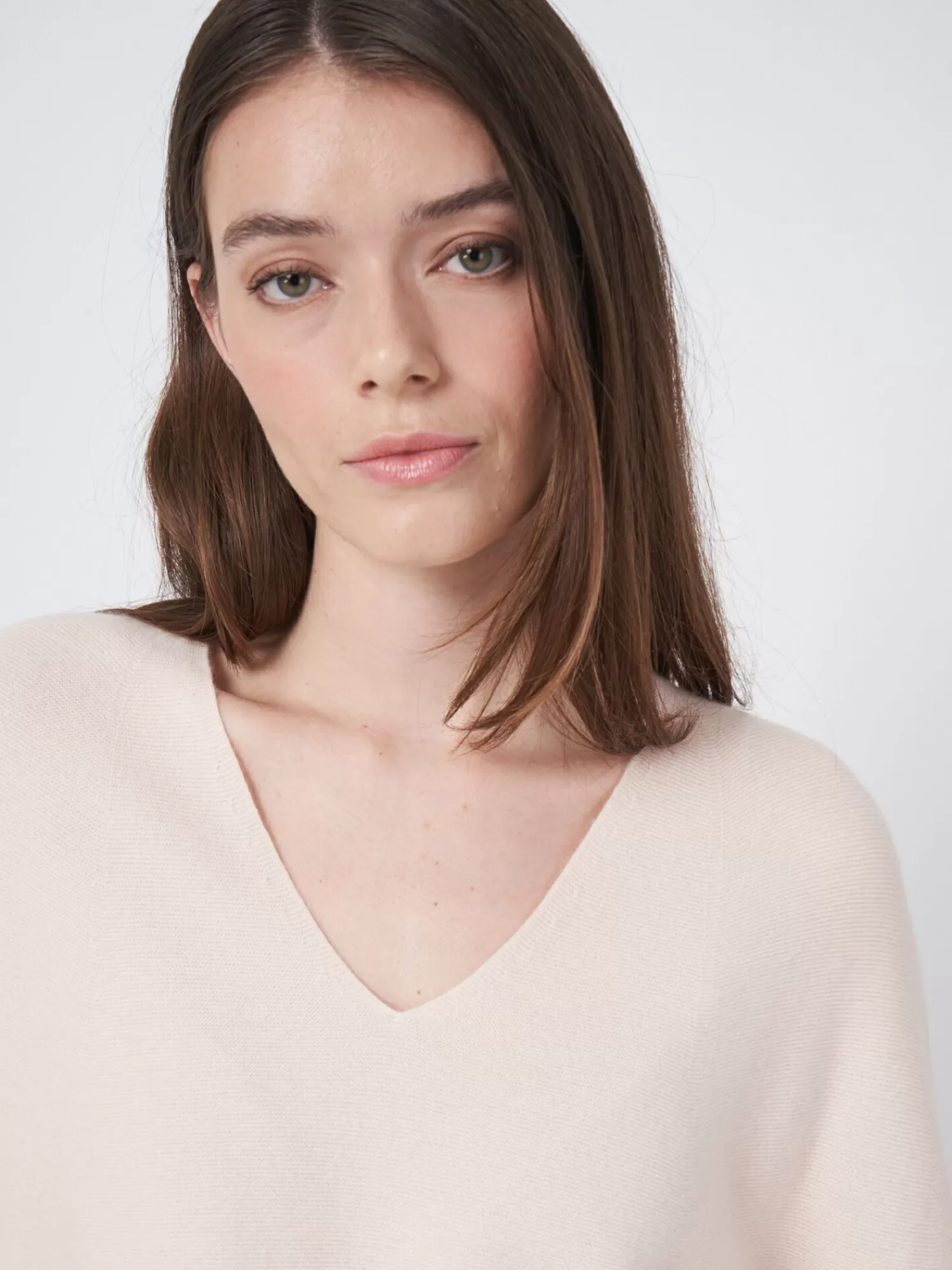 REPEAT cashmere Organic Cashmere | Truien*Naadloos gebreid cashmere trui met V-hals Pearl
