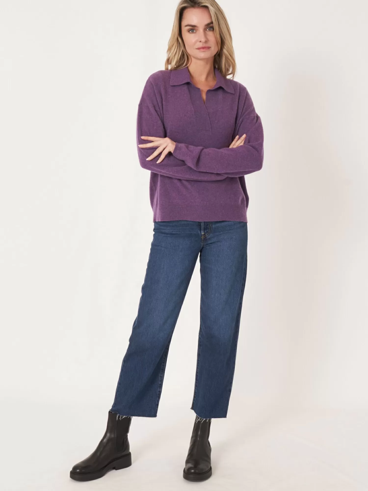 REPEAT cashmere Organic Cashmere | Truien*Trui met polokraag van biologisch cashmere Amethyst