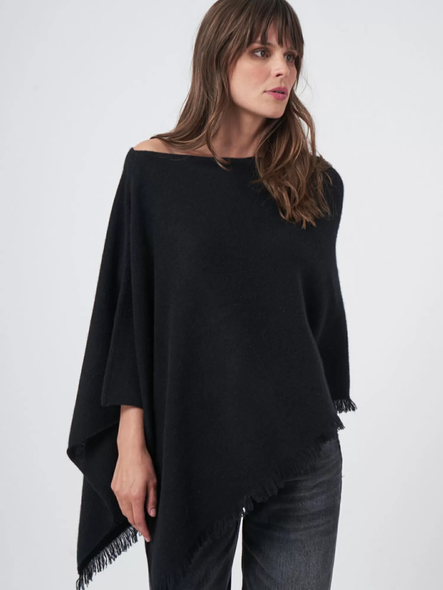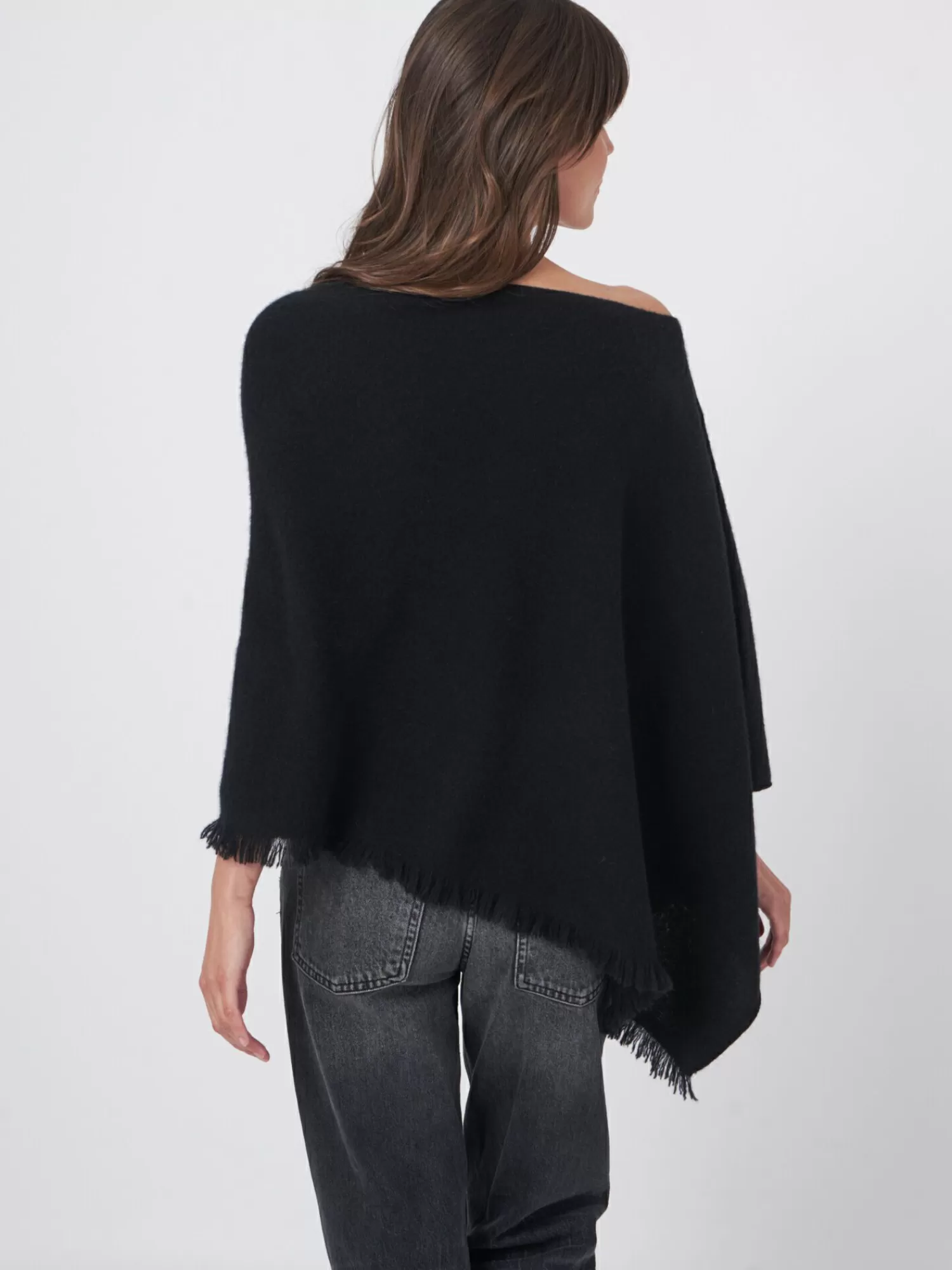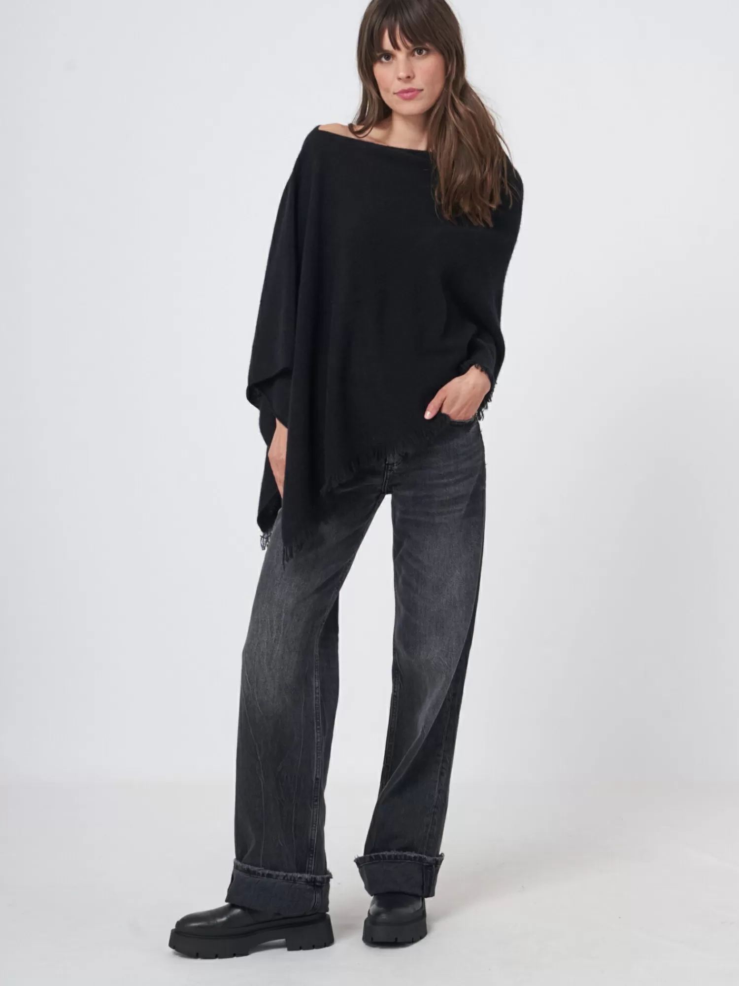 REPEAT cashmere Ponchos | Organic Cashmere*Organisch cashmere poncho met franjes Black