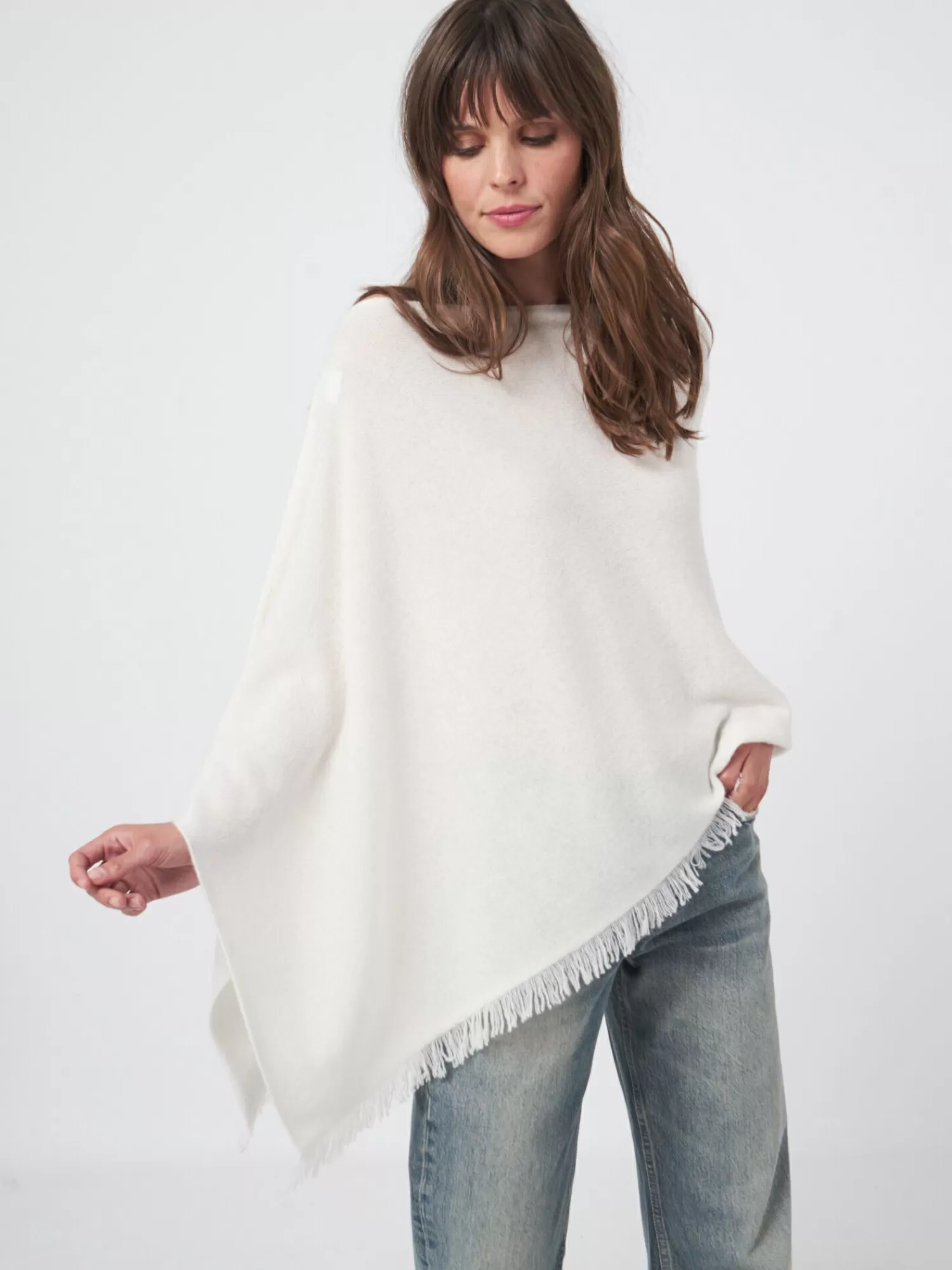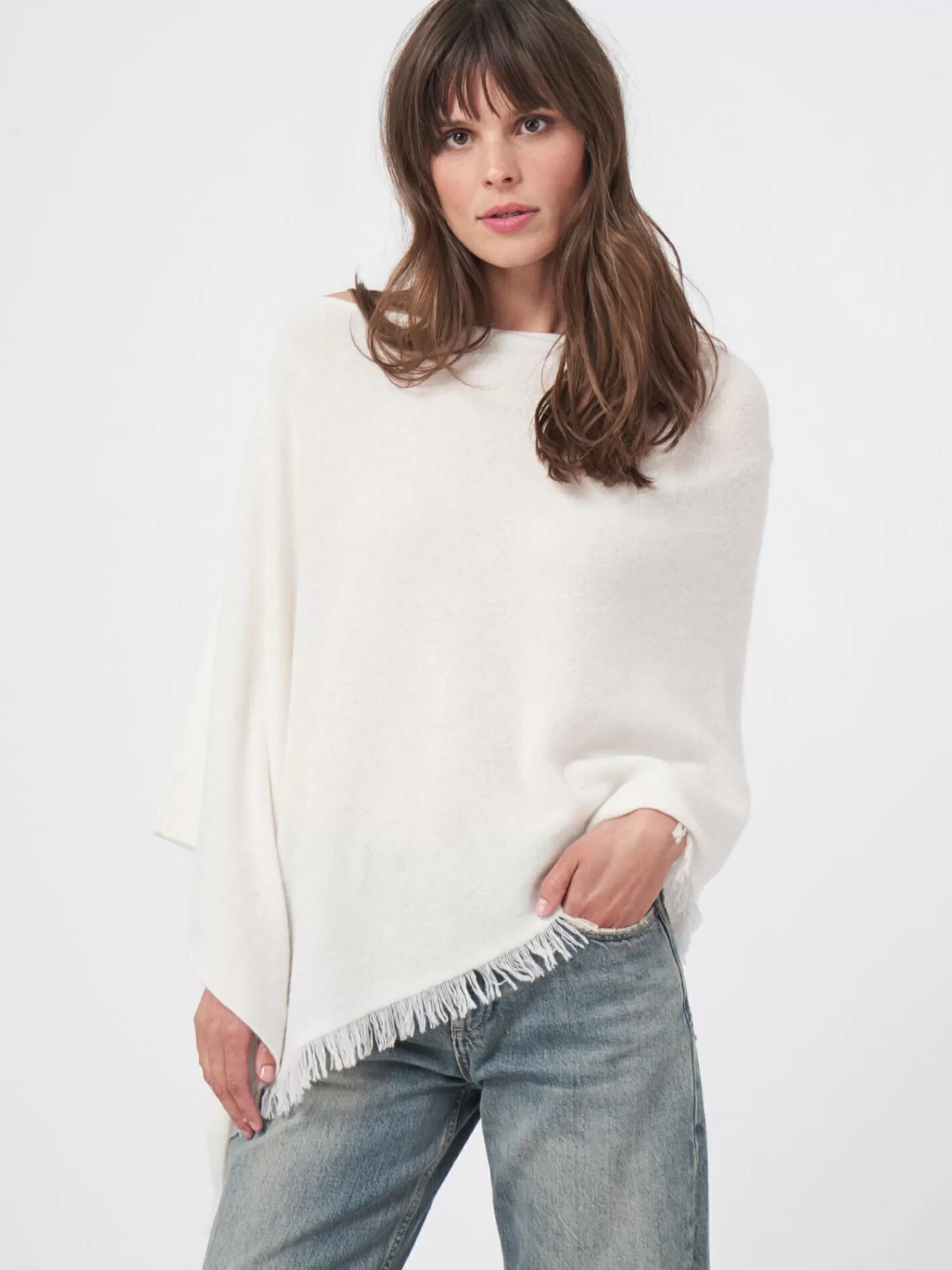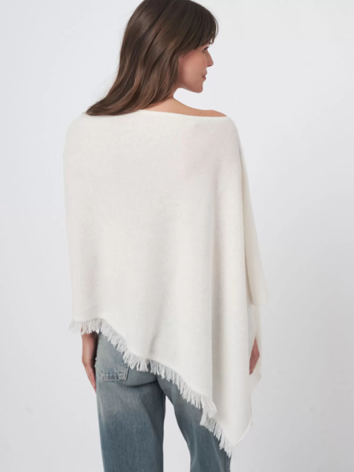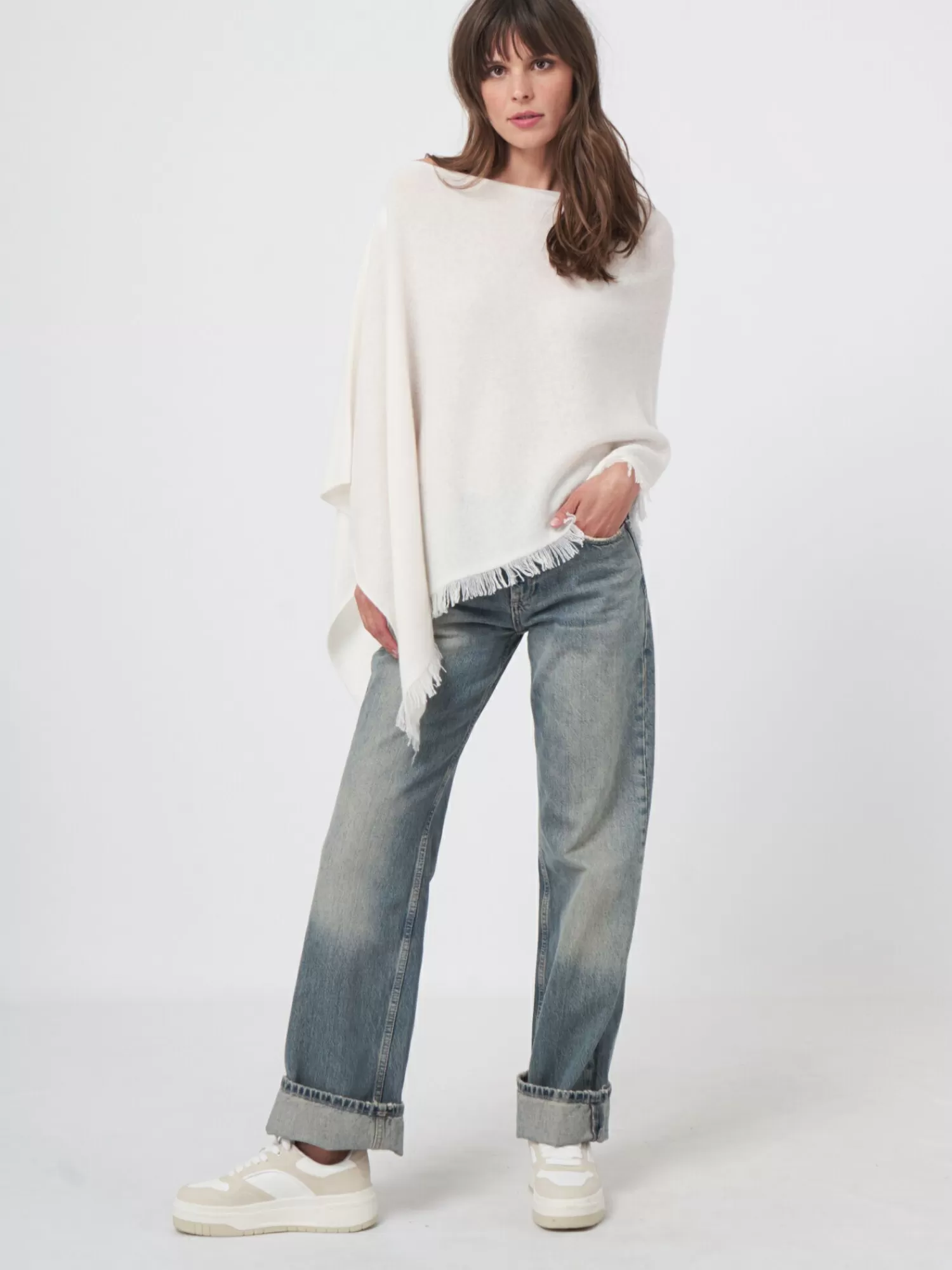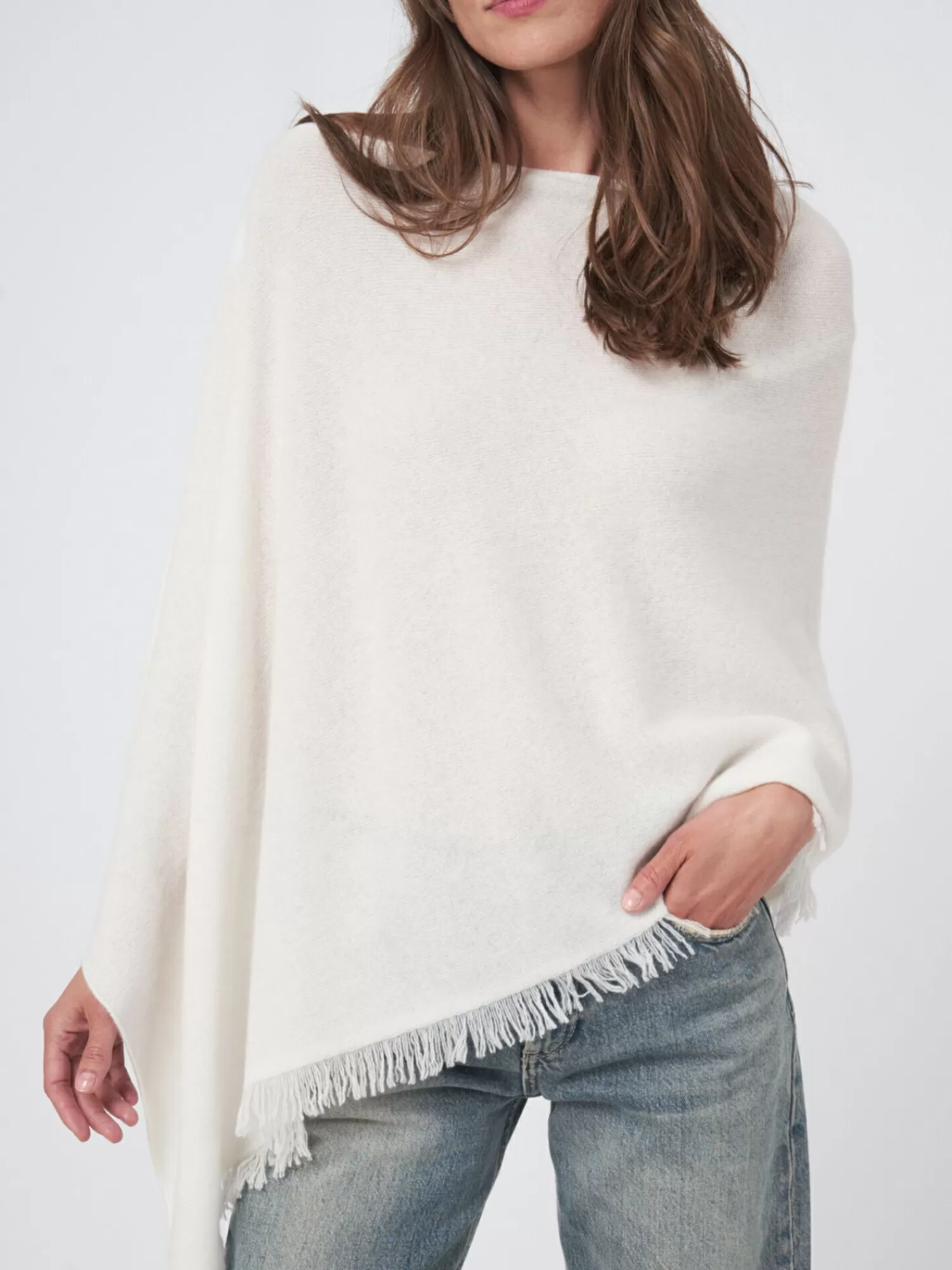 REPEAT cashmere Ponchos | Organic Cashmere*Organisch cashmere poncho met franjes Cream