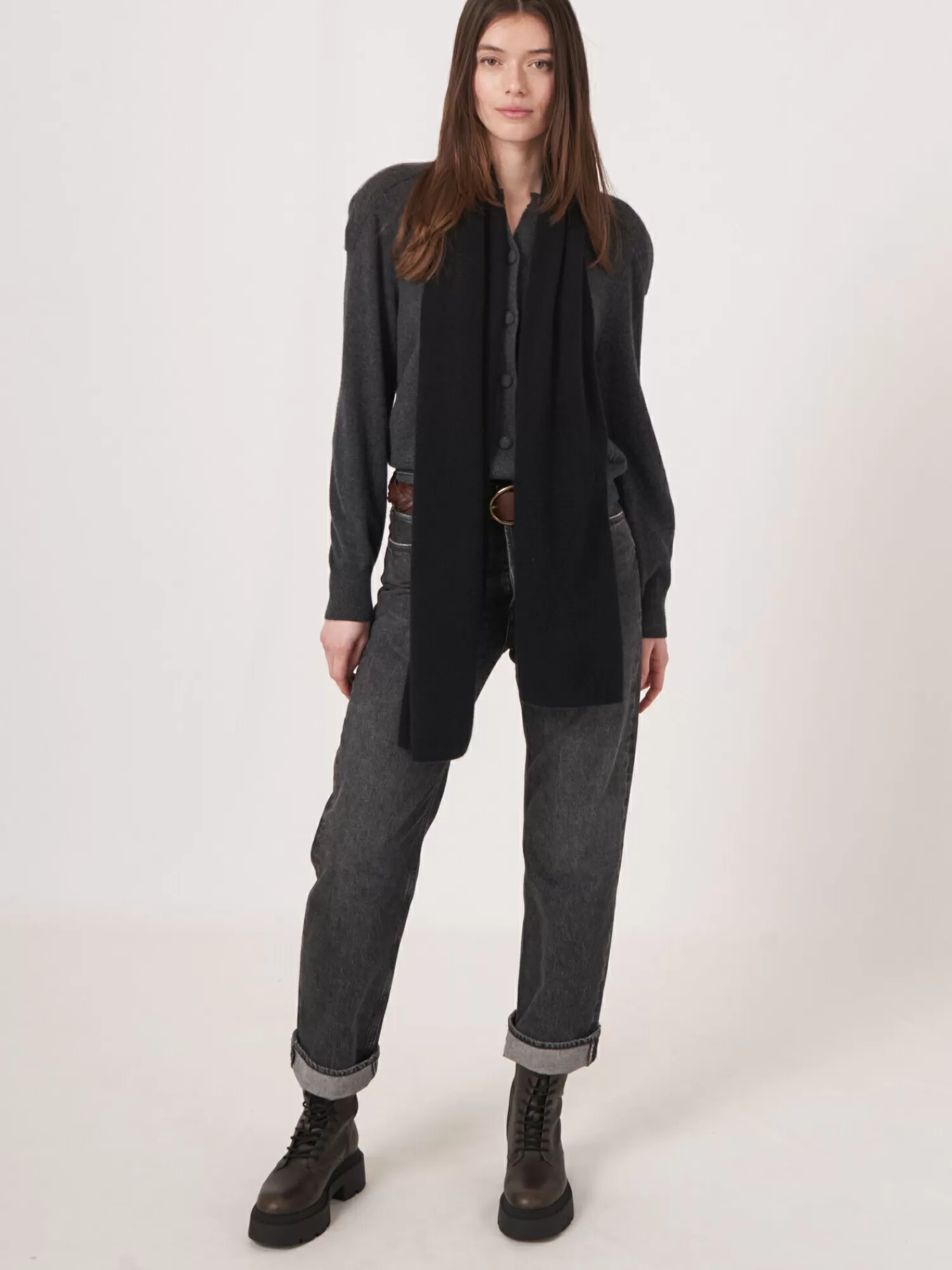 REPEAT cashmere Sjaals | Organic Cashmere*Fijngebreide organisch cashmere sjaal Black