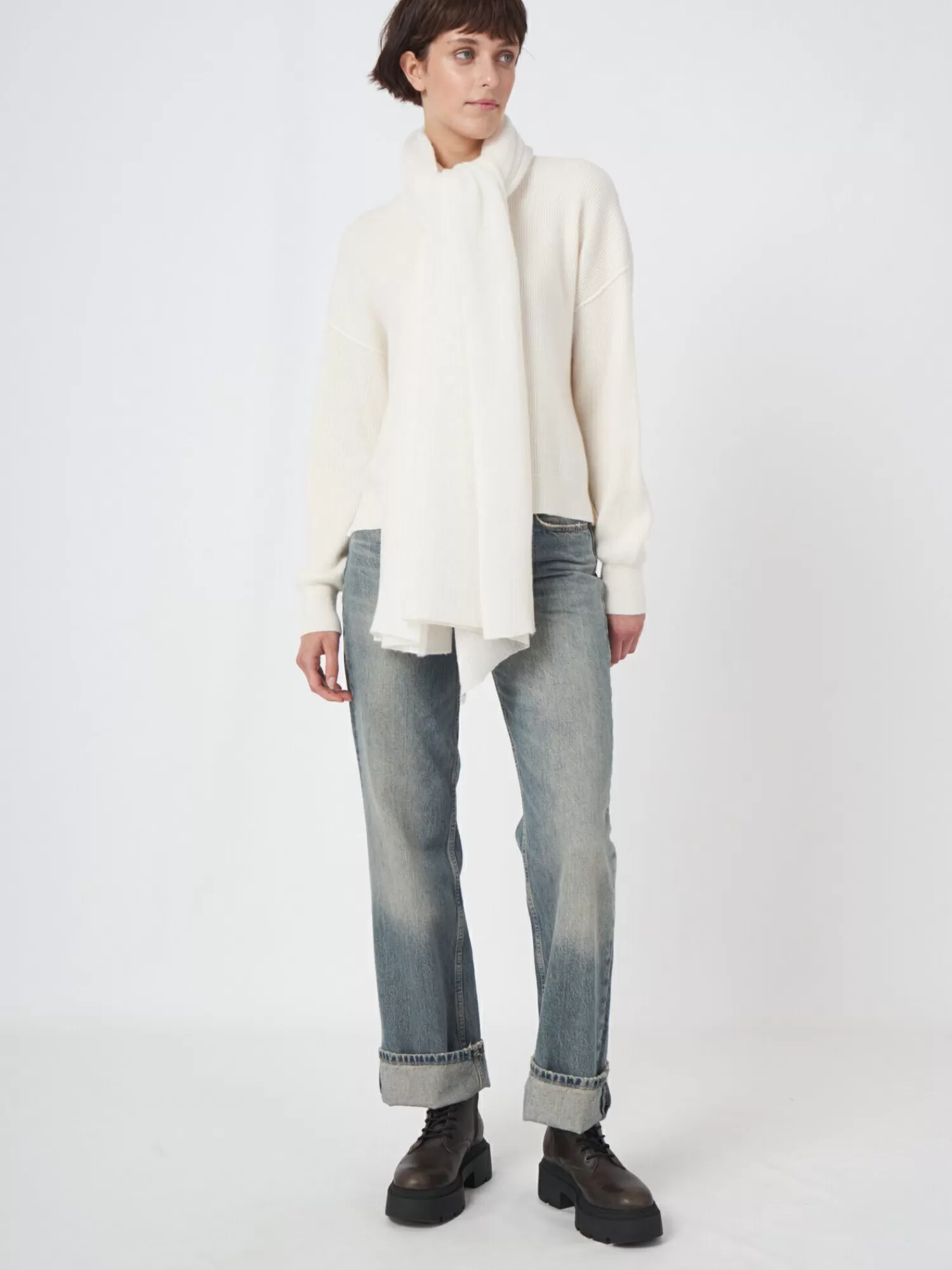 REPEAT cashmere Sjaals | Organic Cashmere*Oversized sjaal met ribdetails Cream