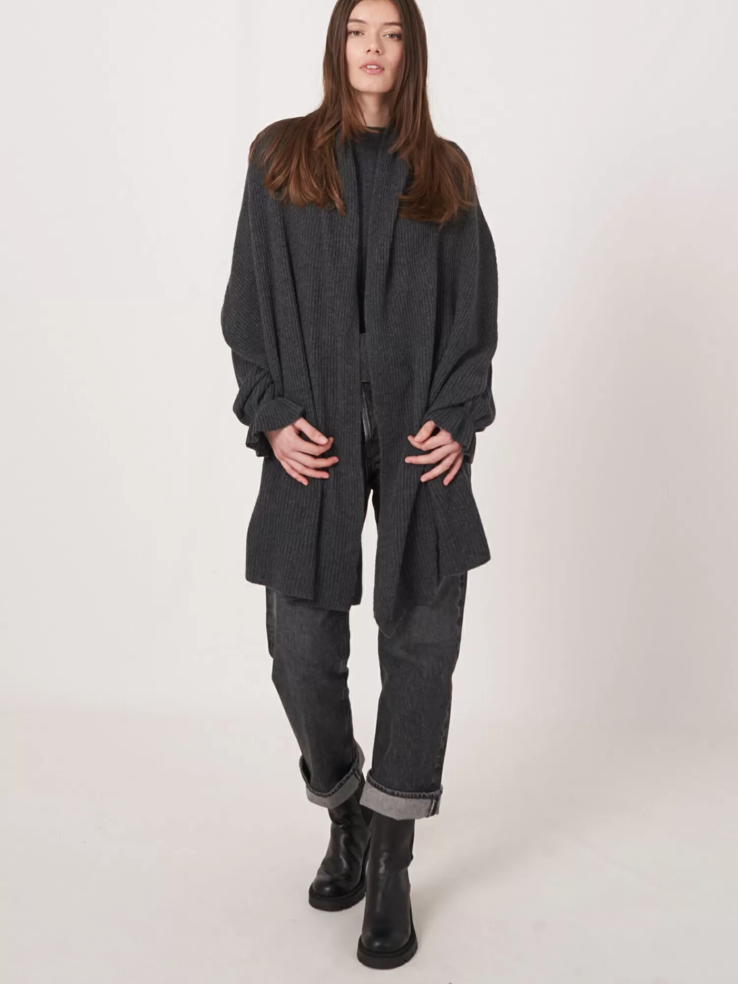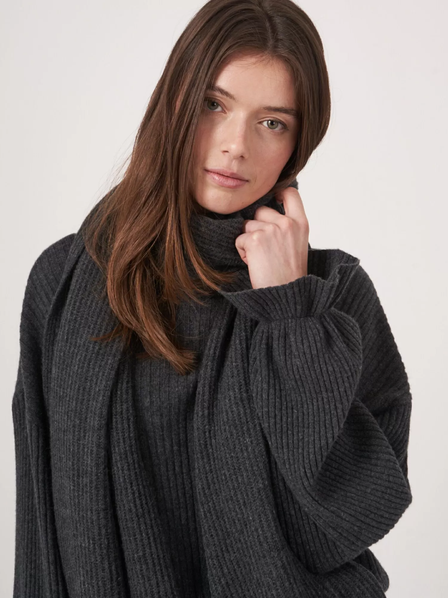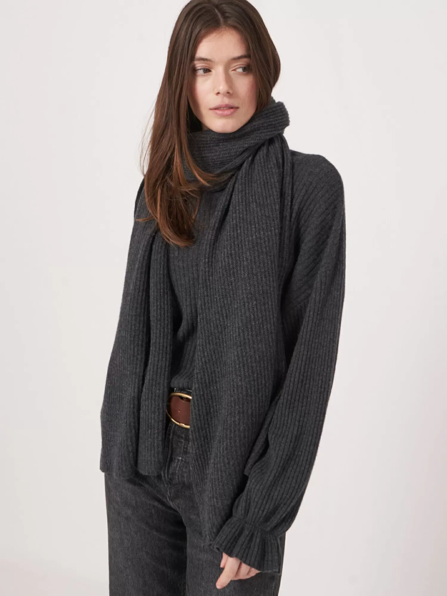 REPEAT cashmere Sjaals*Oversized geribde cashmere sjaal Charcoal
