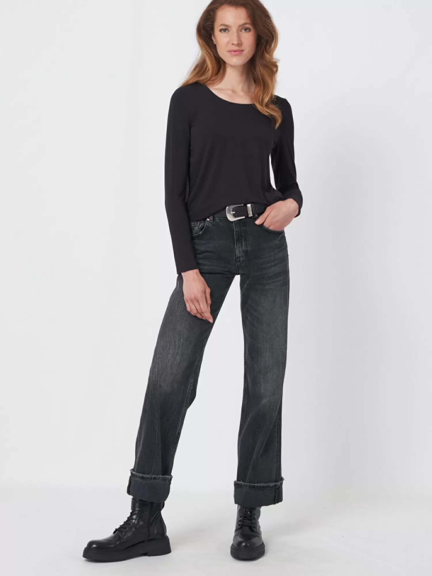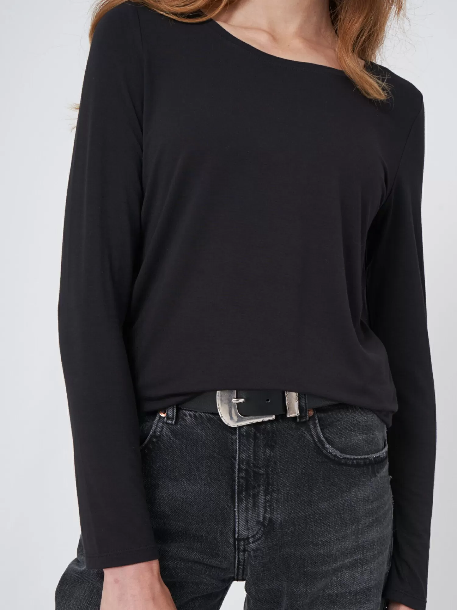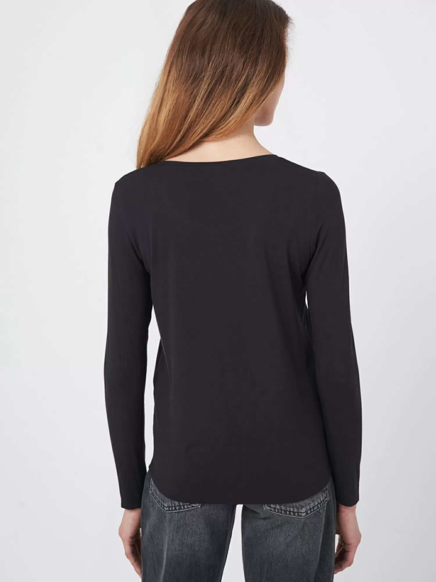 REPEAT cashmere Tops | Tops*Basic dames T-shirt met lange mouw Black