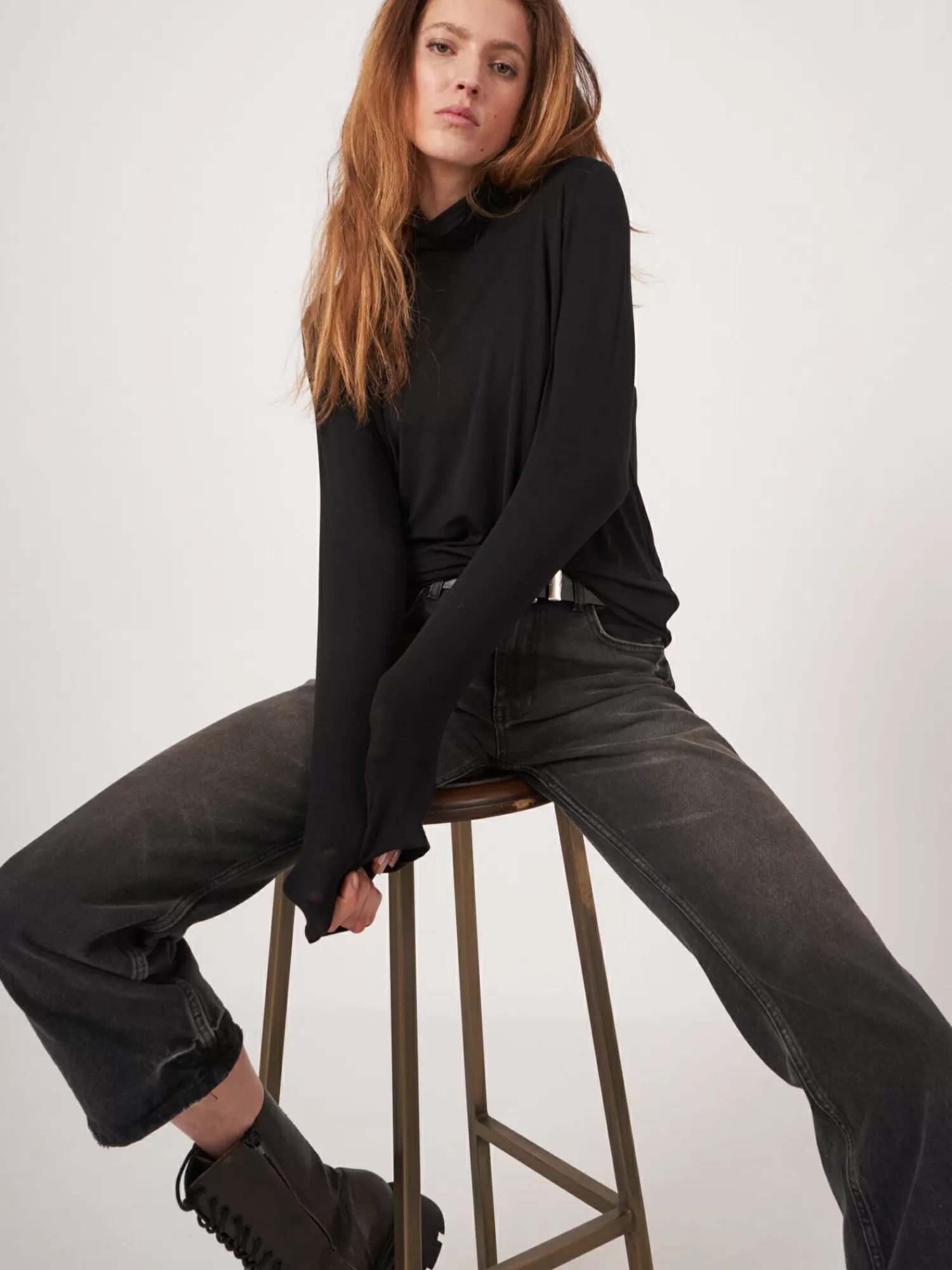 REPEAT cashmere Tops | Tops*Coltrui van elastische jersey Black