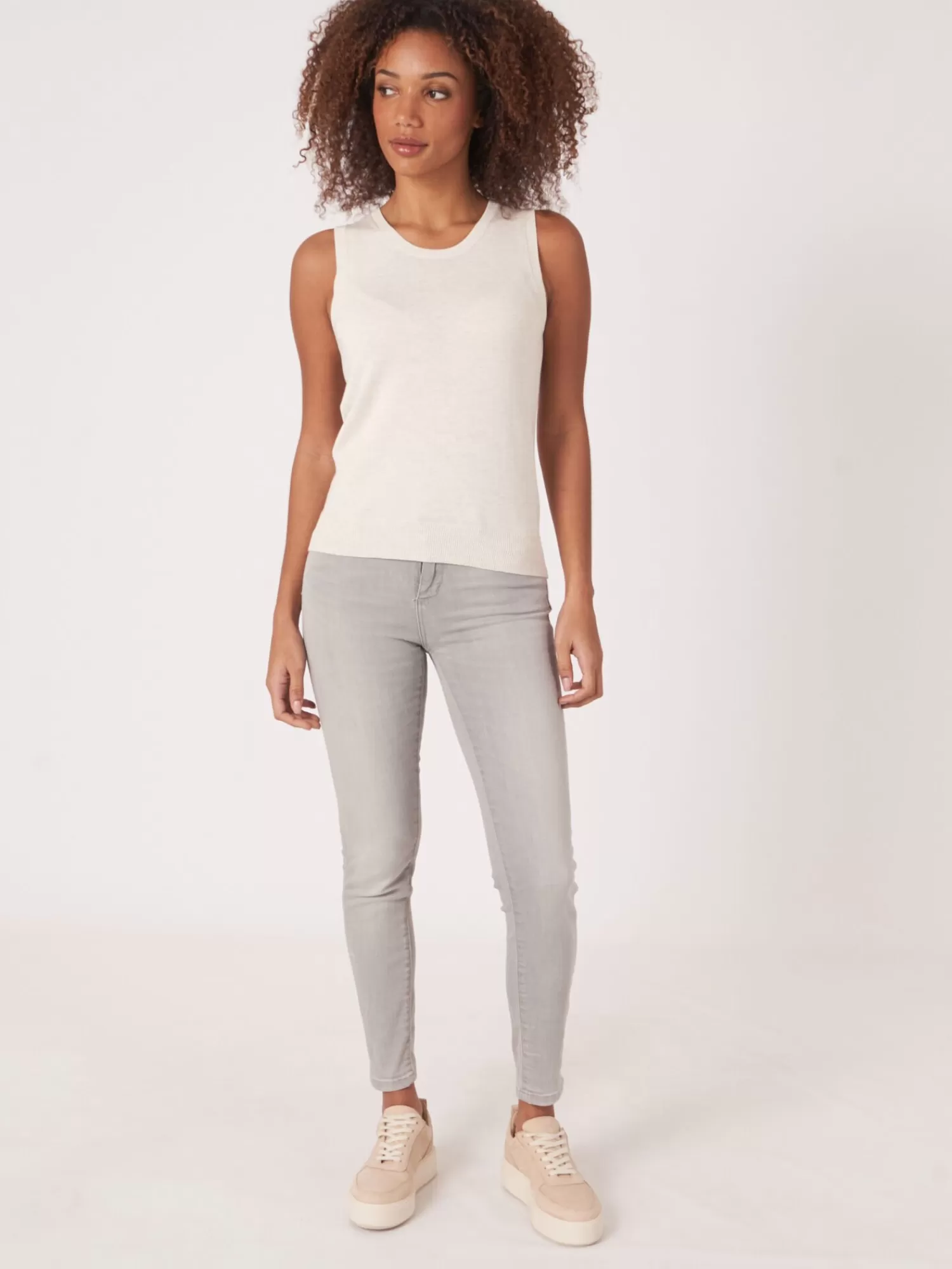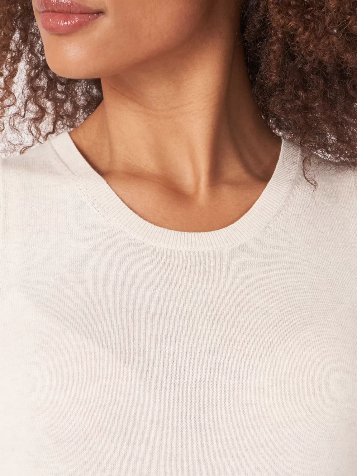 REPEAT cashmere Tops*Basic fijn gebreid top in katoenmix Ivory