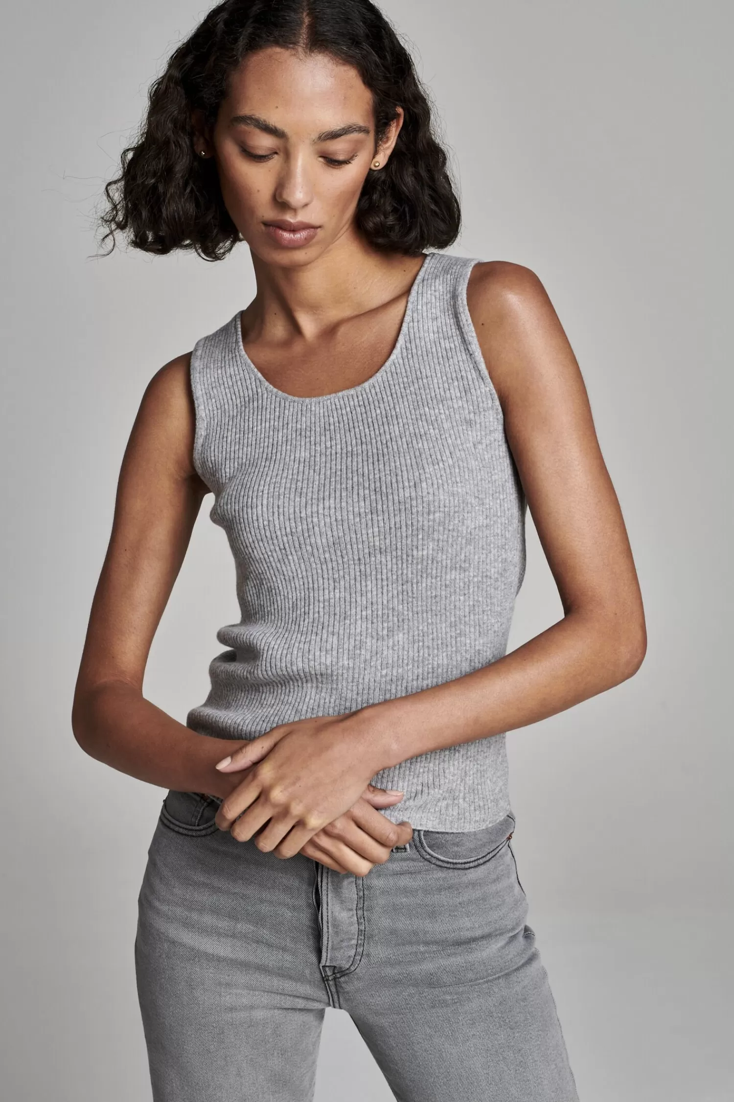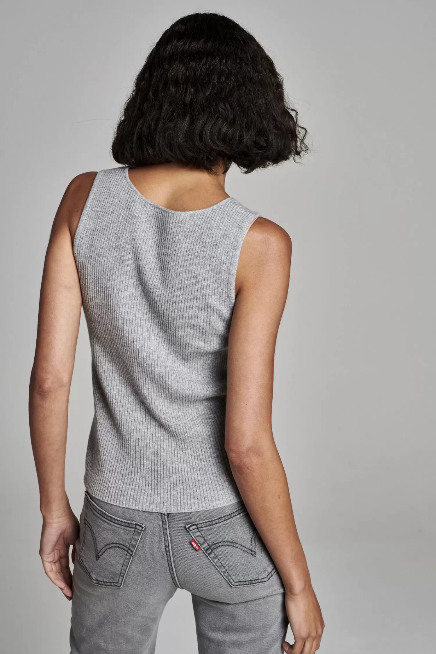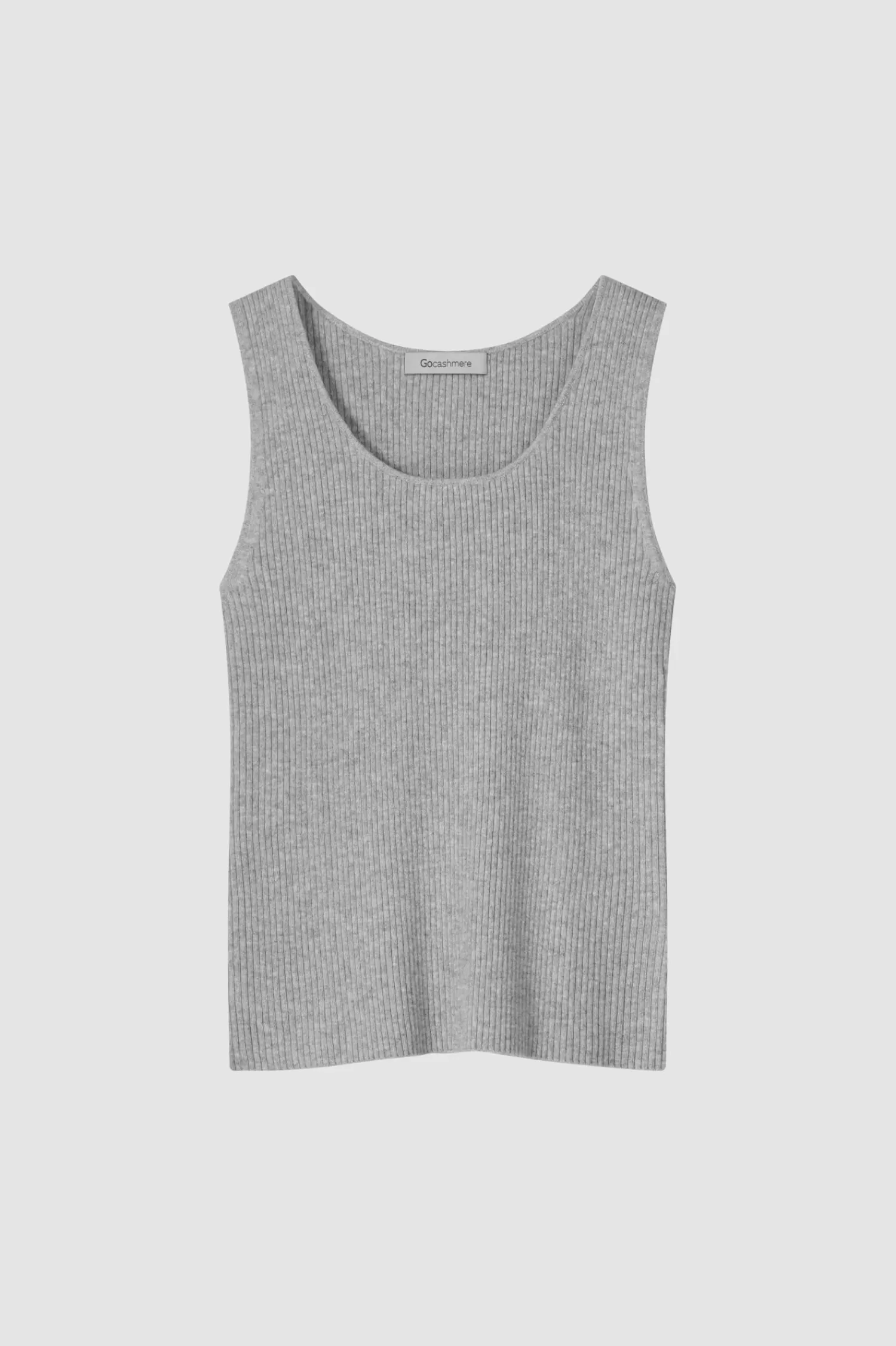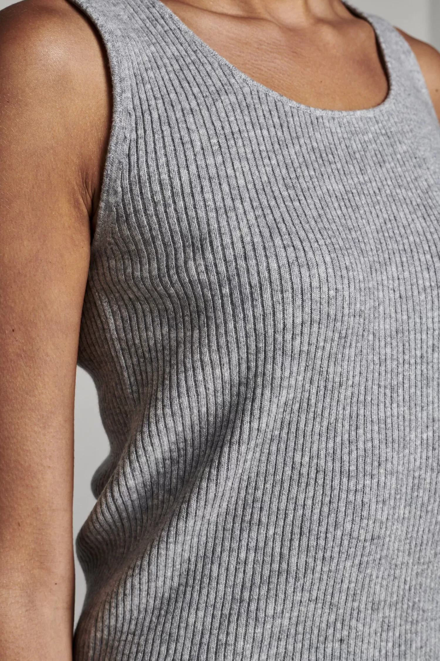 REPEAT cashmere Tops*Cashmere tank top met fijngebreid ribpatroon Grey