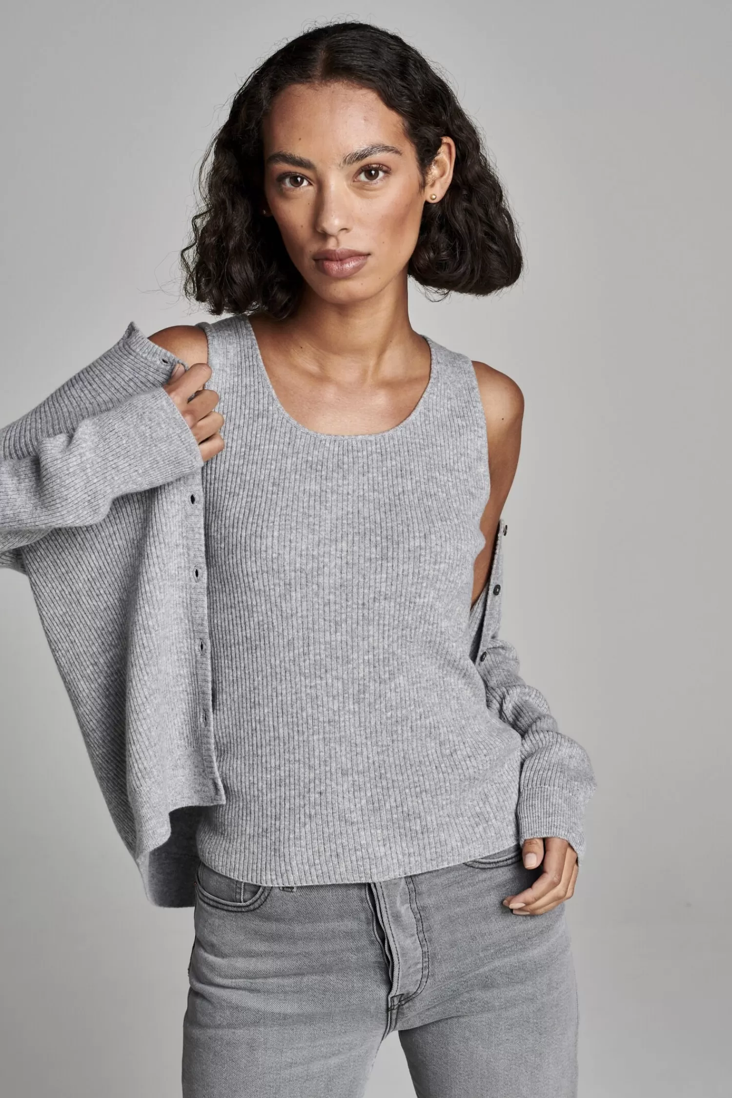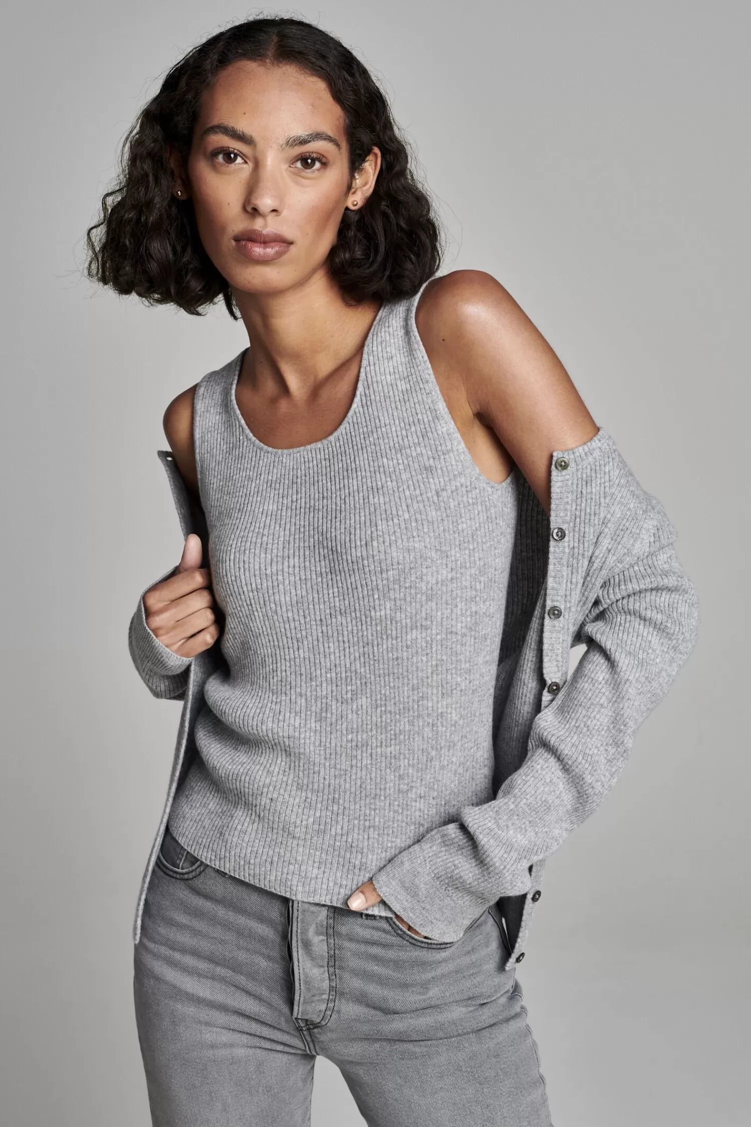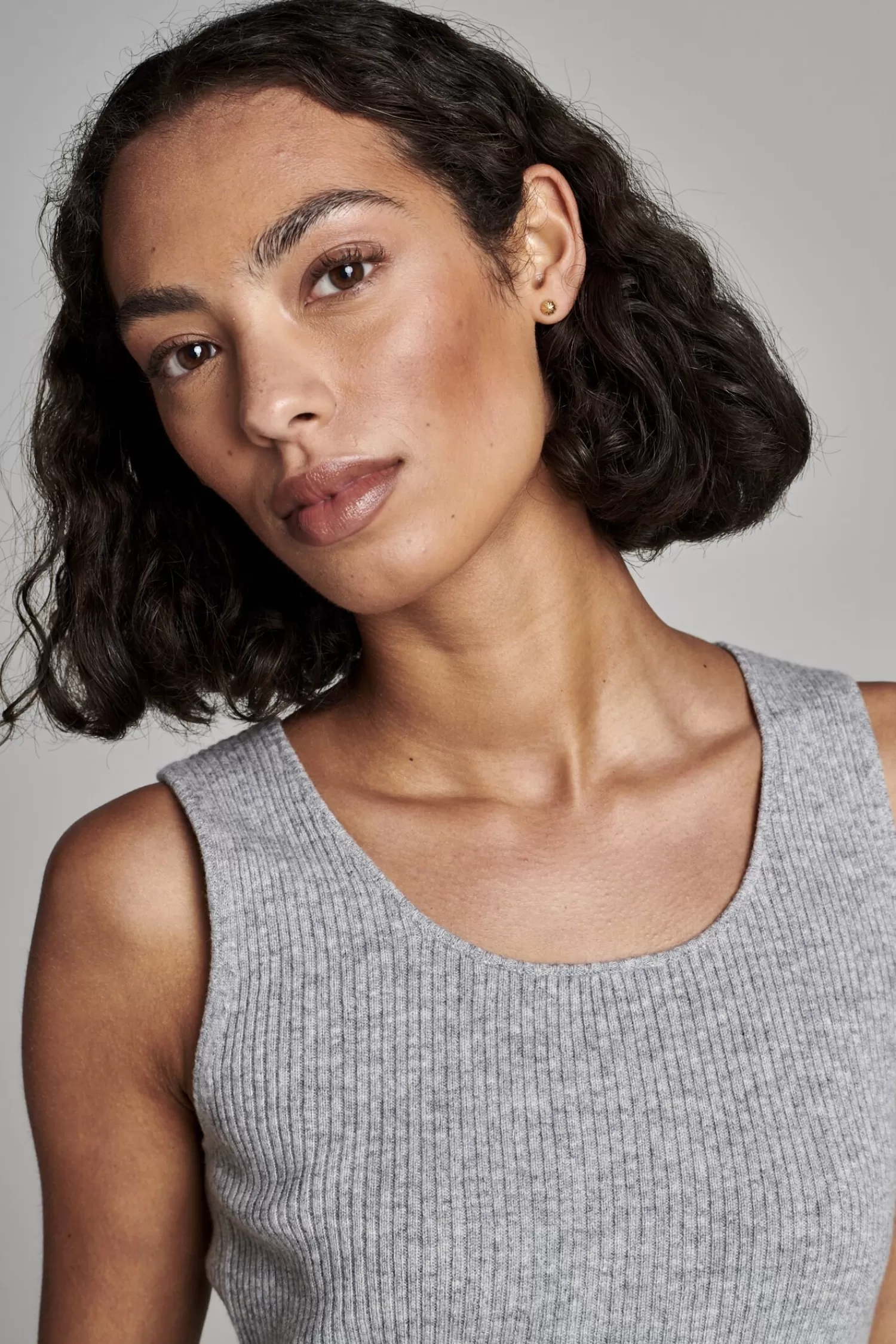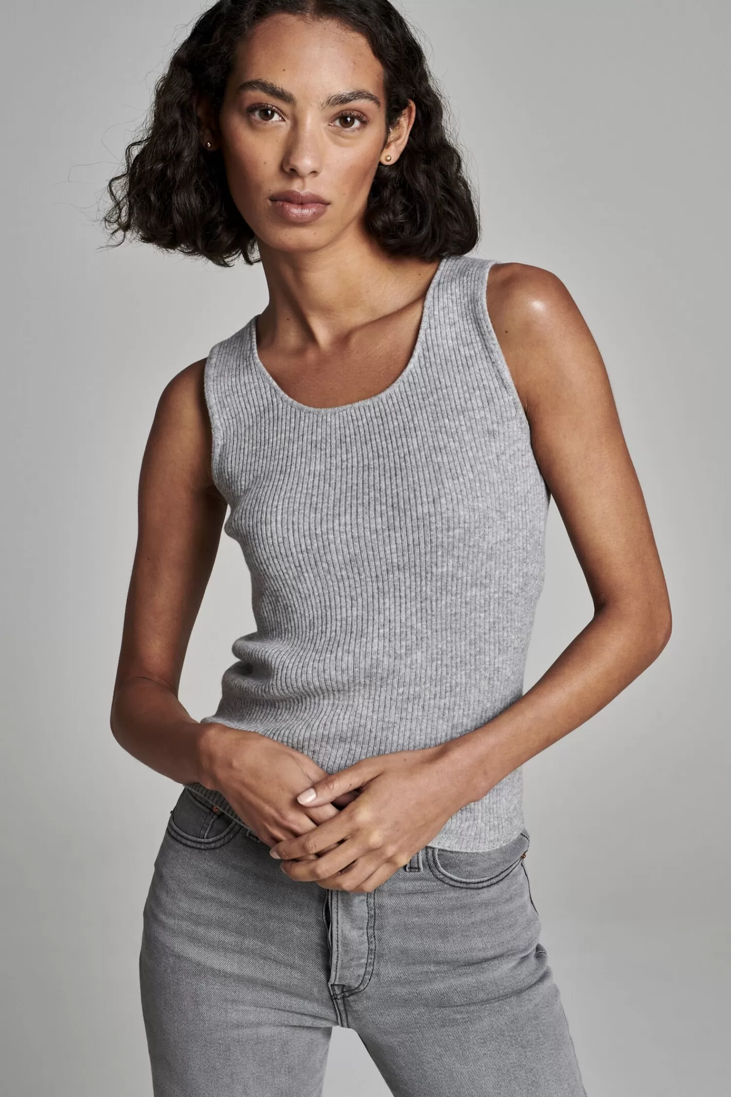 REPEAT cashmere Tops*Cashmere tank top met fijngebreid ribpatroon Grey