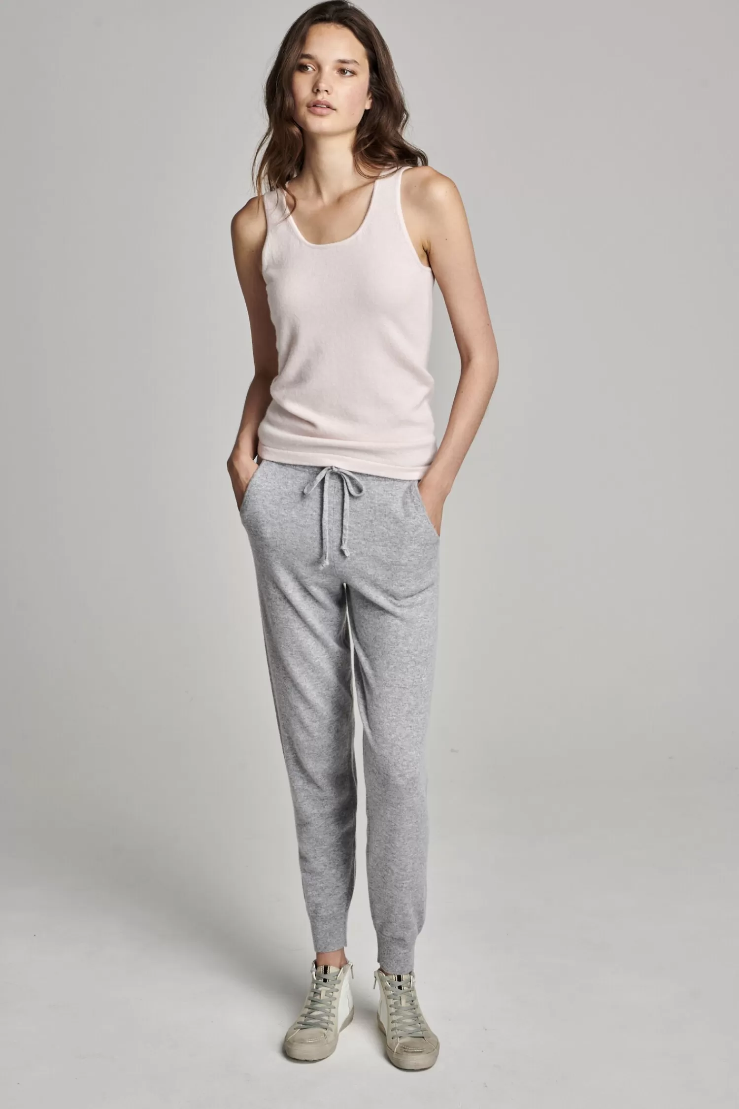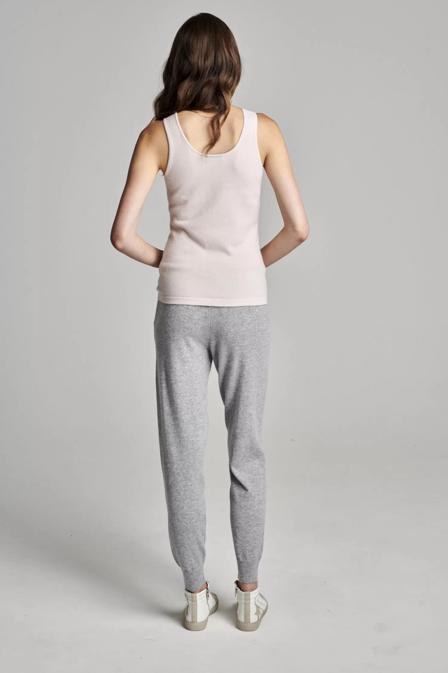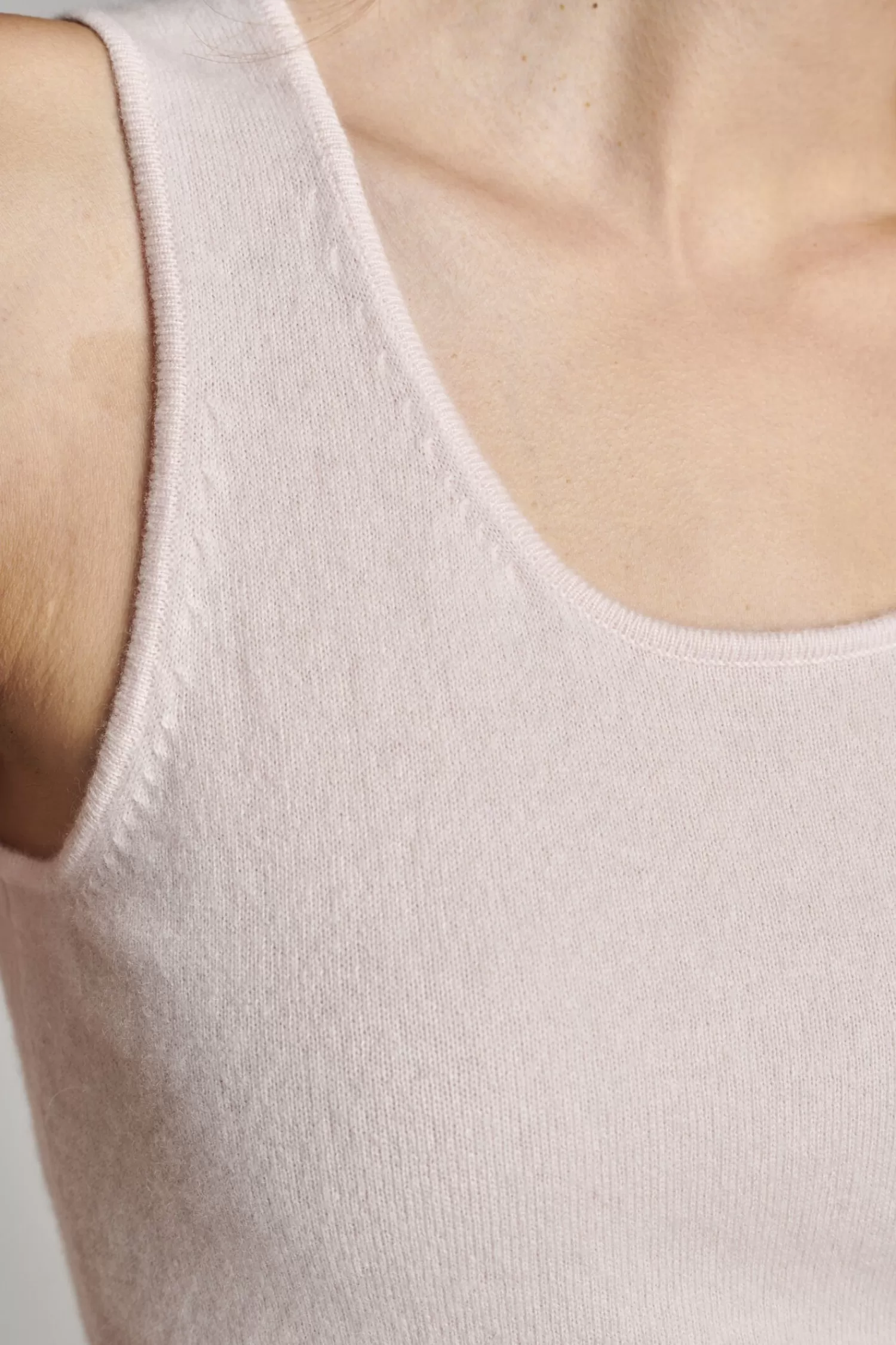 REPEAT cashmere Tops*Gebreide cashmere top met ronde hals Powder