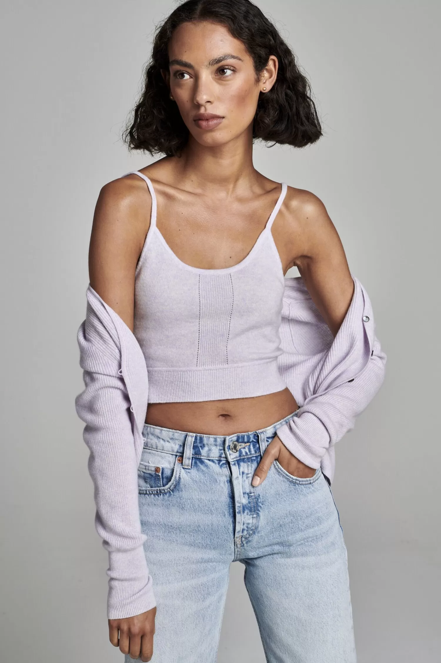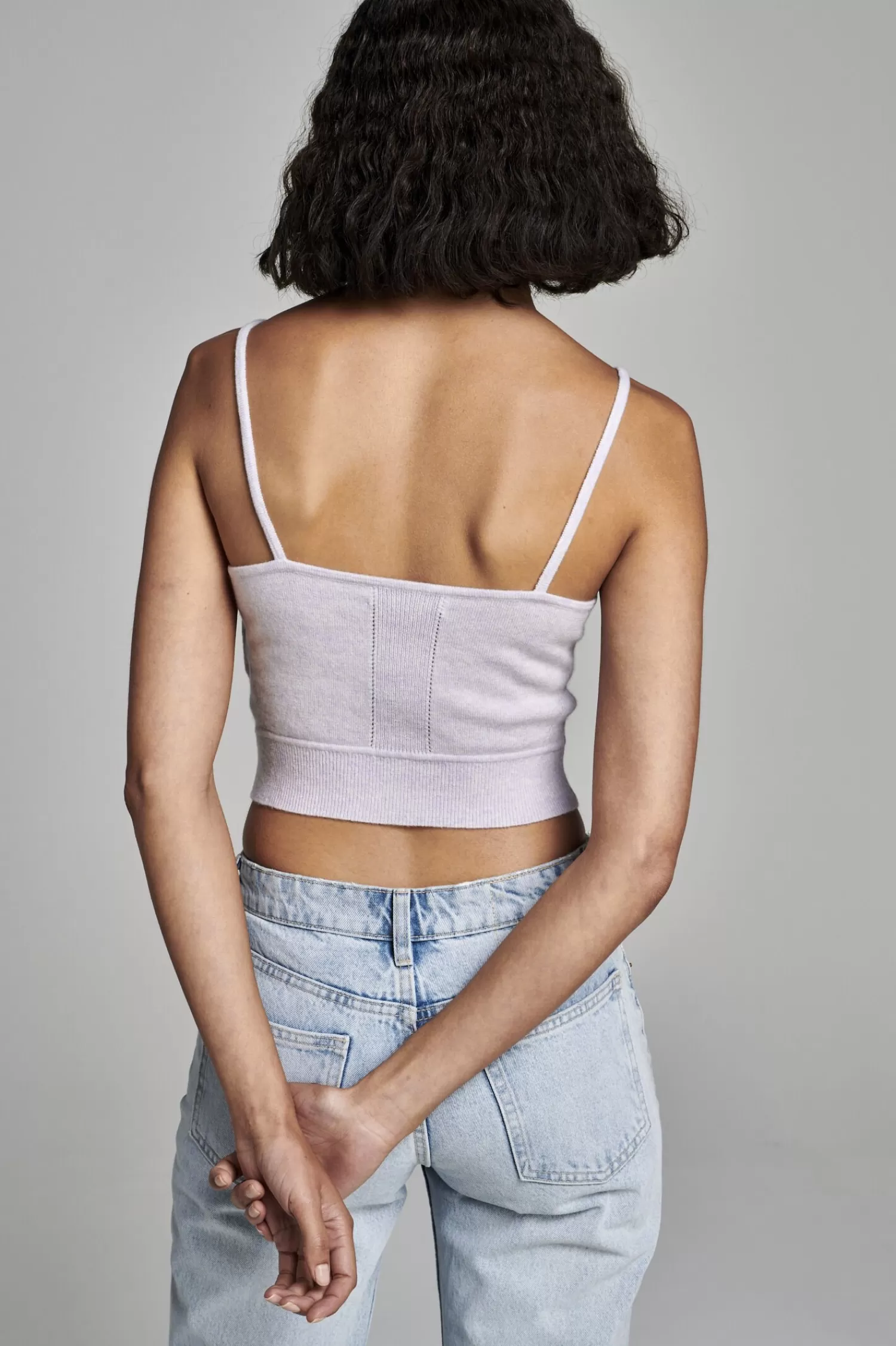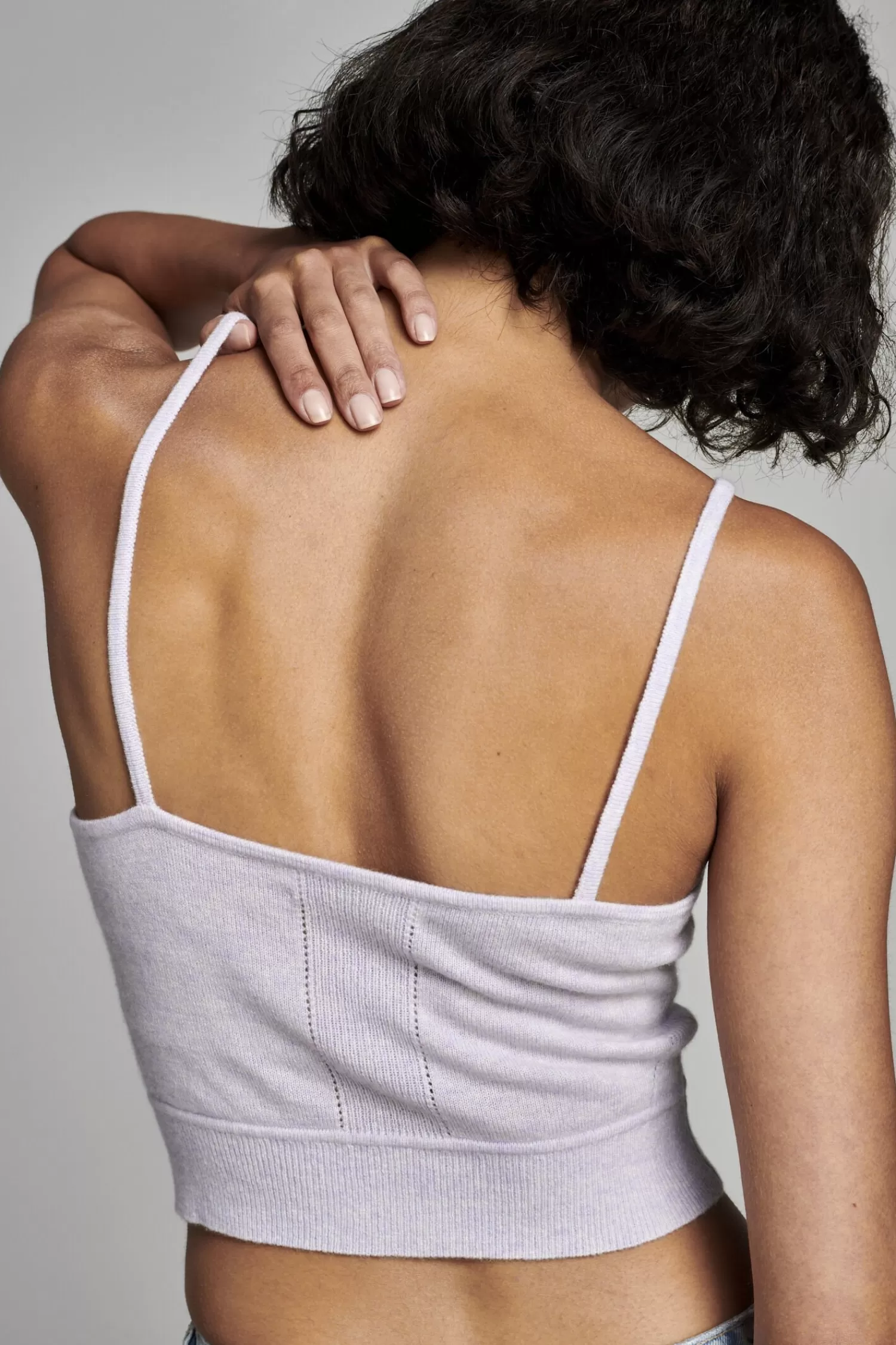 REPEAT cashmere Tops*Kort gebreid topje met pointelle details Cloud9