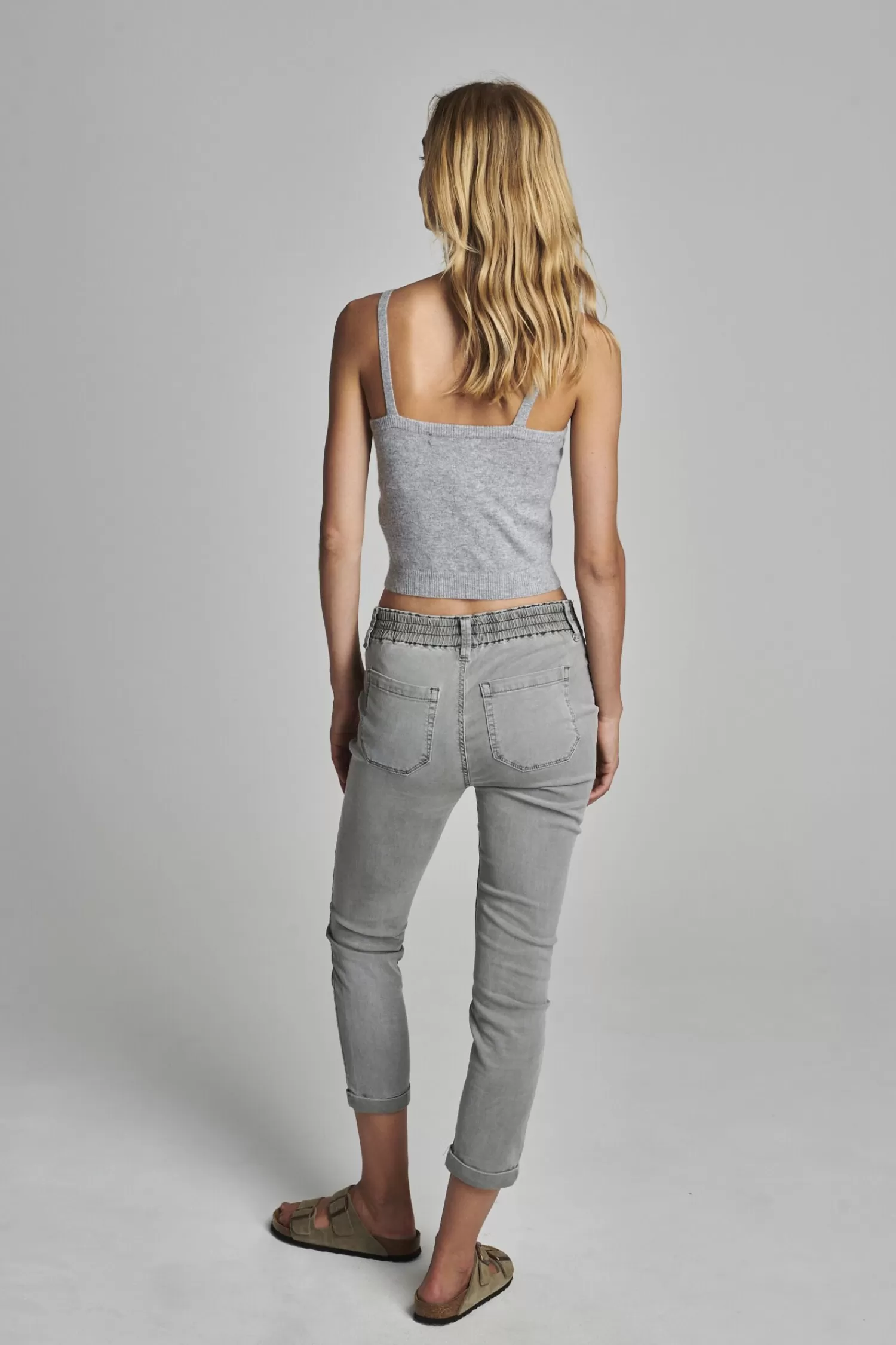 REPEAT cashmere Tops*Kort gebreid topje met spaghettibandjes van cashmere Grey