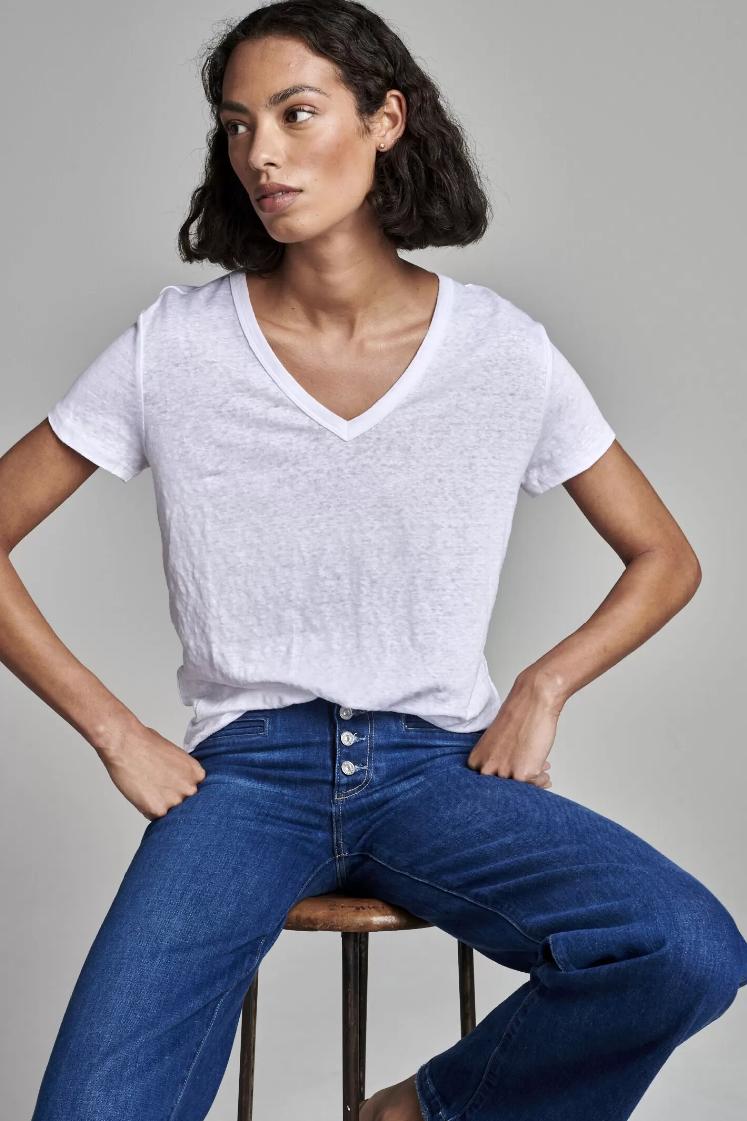 REPEAT cashmere Tops*Relaxed fit linnen V-hals T-shirt White