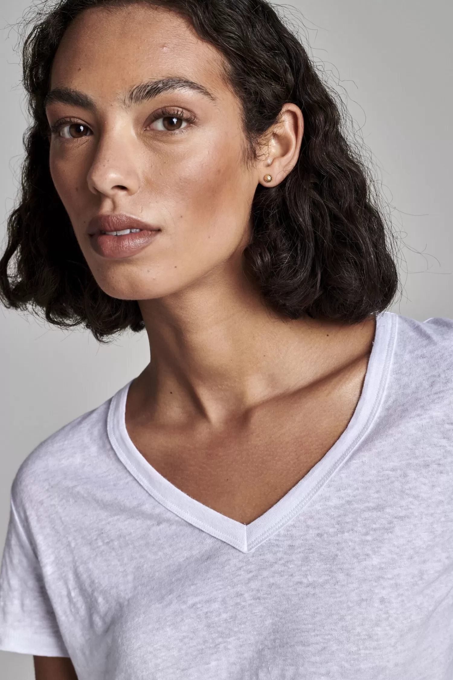 JerseyZuiver linnenV-halsKorte mouwenAfgeronde zoomT-shirt in lichte A-lijnRegular fitHandwas, chemisch reinigen mogelij…