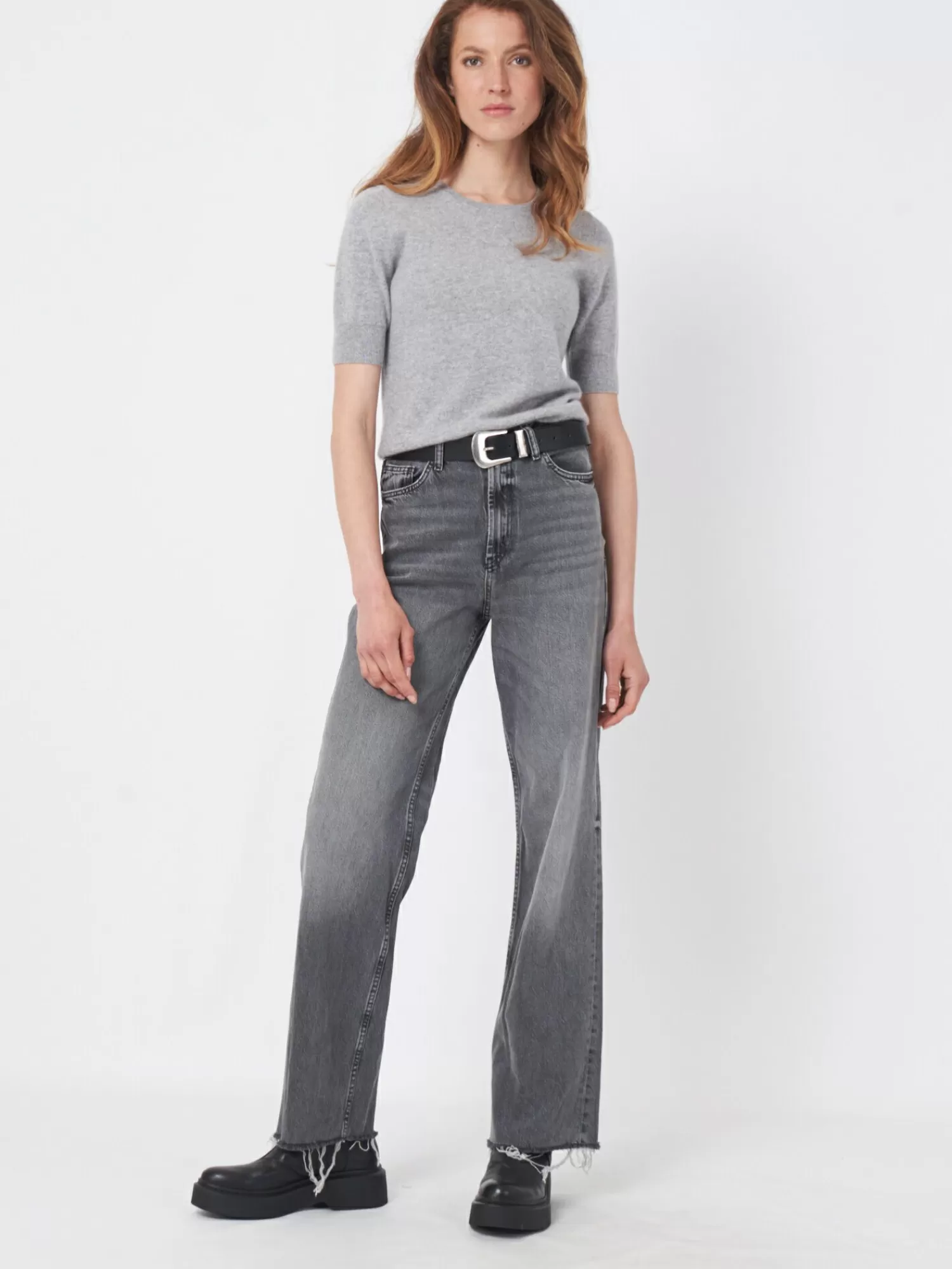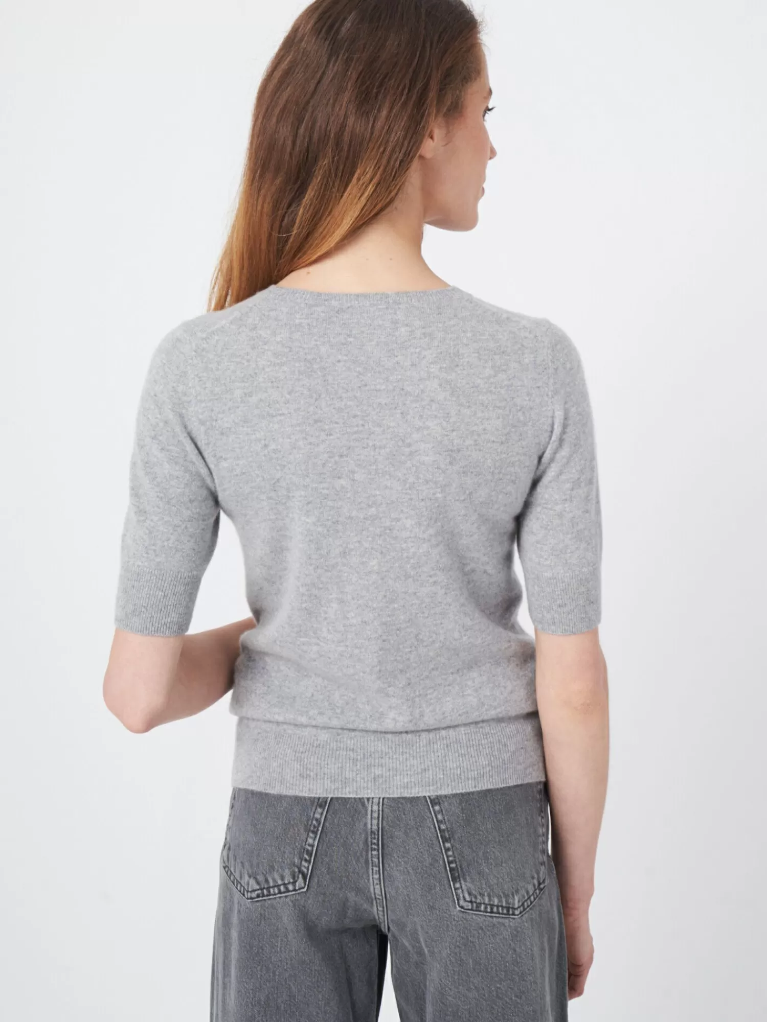 REPEAT cashmere Truien | Organic Cashmere*Basic korte mouw organisch cashmere trui LightGrey