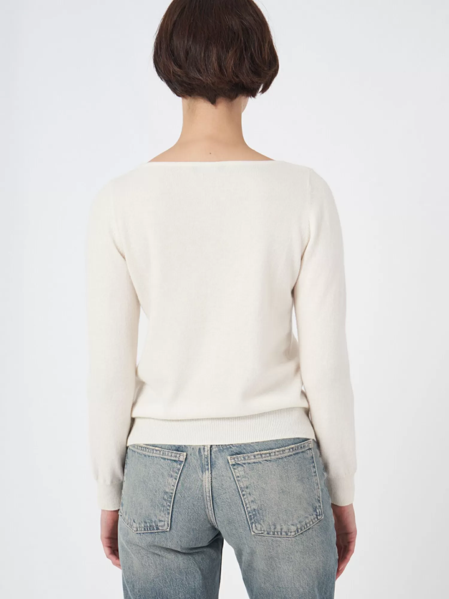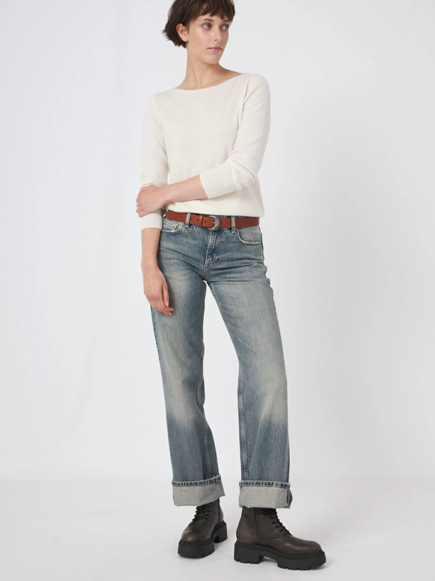 REPEAT cashmere Truien | Organic Cashmere*Basic organisch cashmere boothals trui Cream