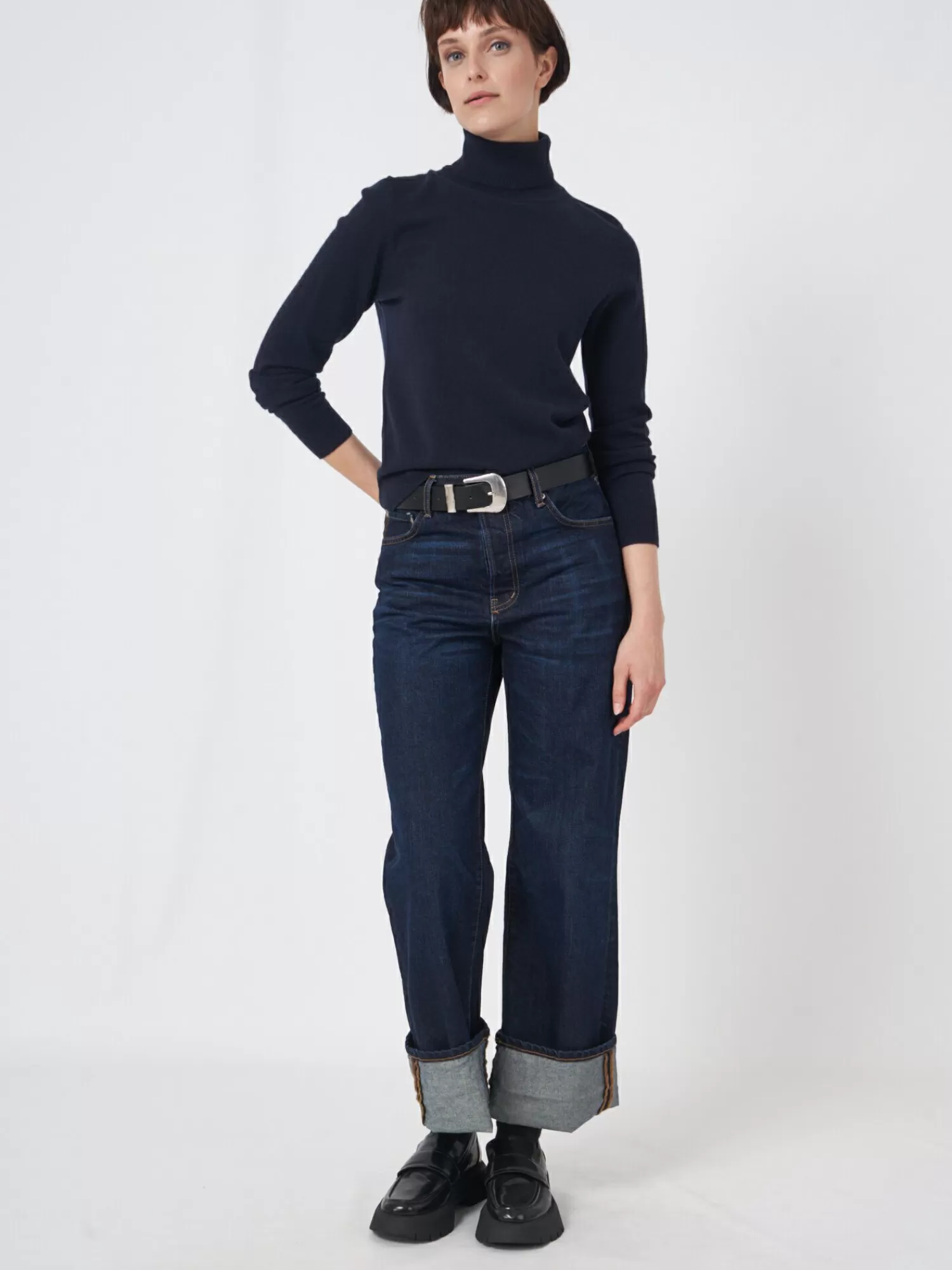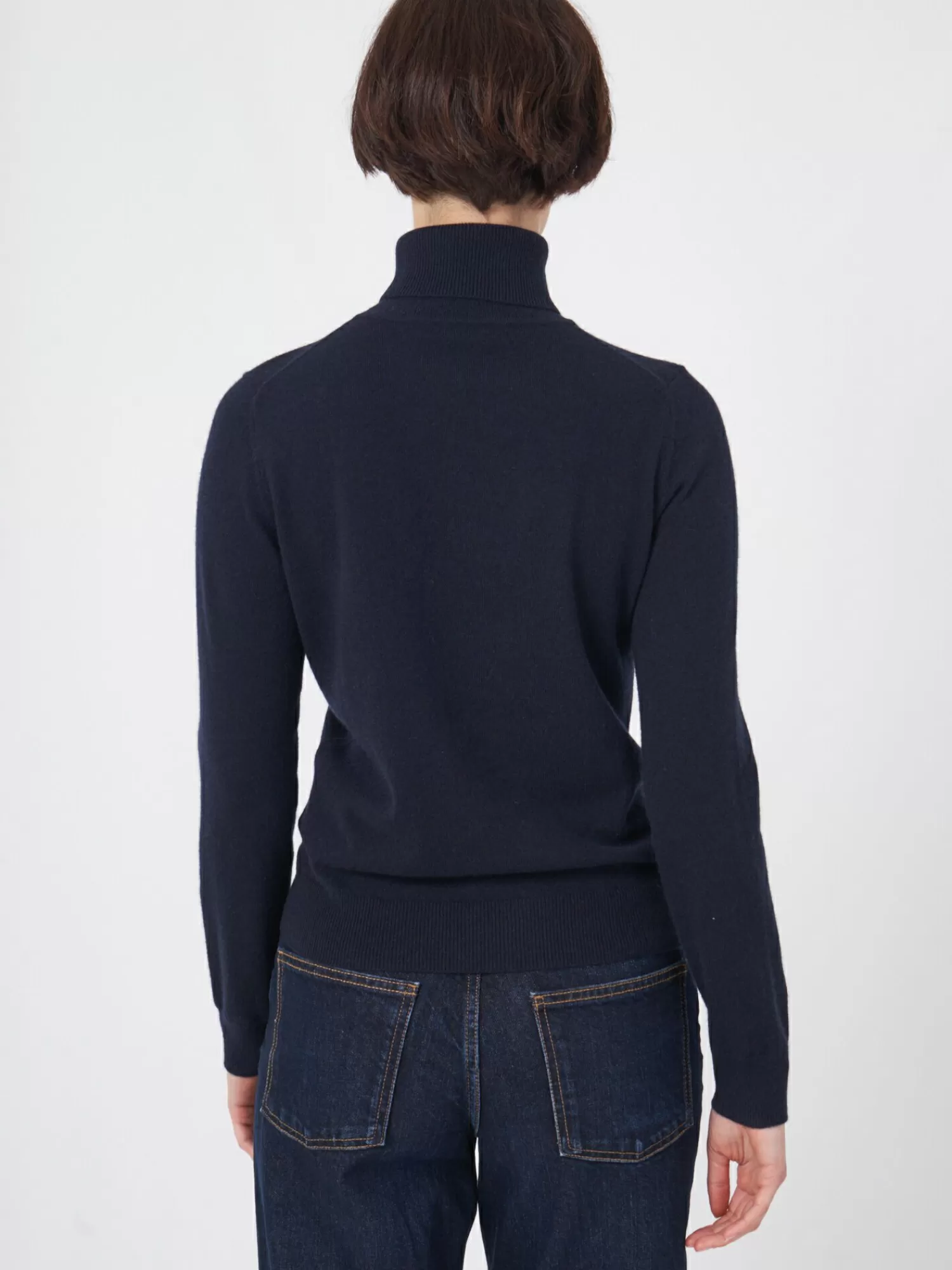 REPEAT cashmere Truien | Organic Cashmere*Basic organisch cashmere trui met rolkraag Navy