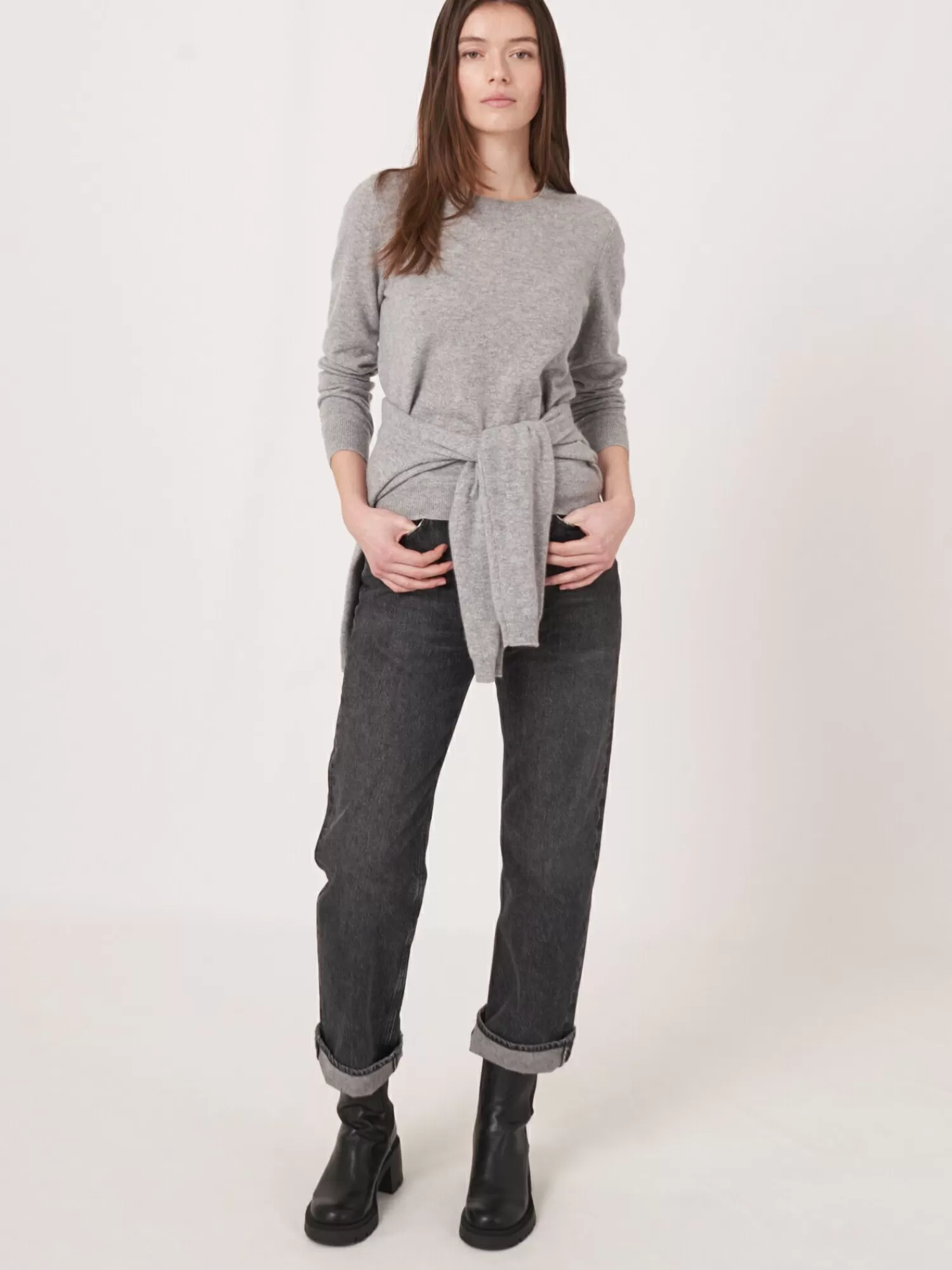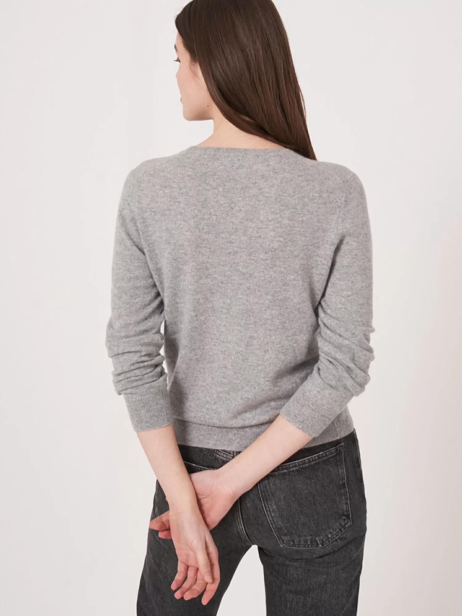 REPEAT cashmere Truien | Organic Cashmere*Basic trui met ronde halslijn LightGrey