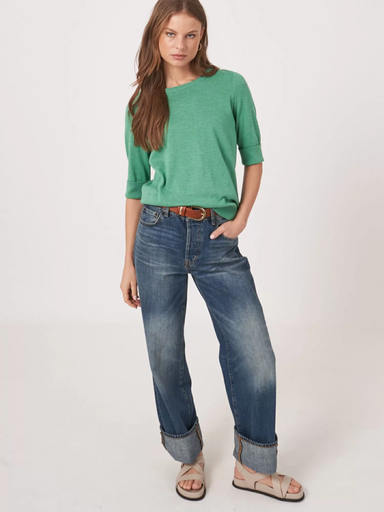 Be the first to review “REPEAT cashmere Truien*Basic fijngebreide trui met korte mouwen Green” Reactie annuleren