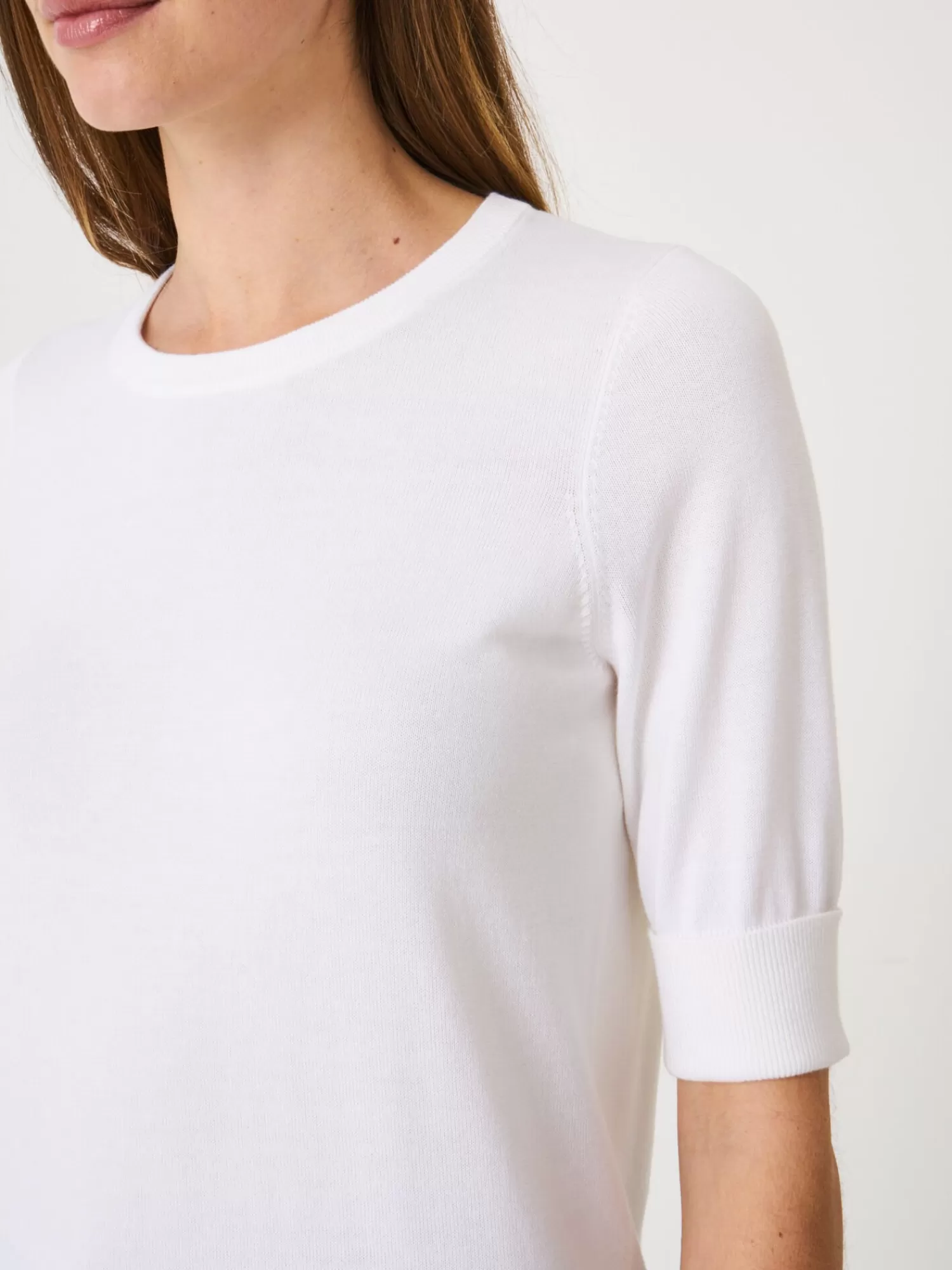 REPEAT cashmere Truien*Basic fijngebreide trui met korte mouwen White