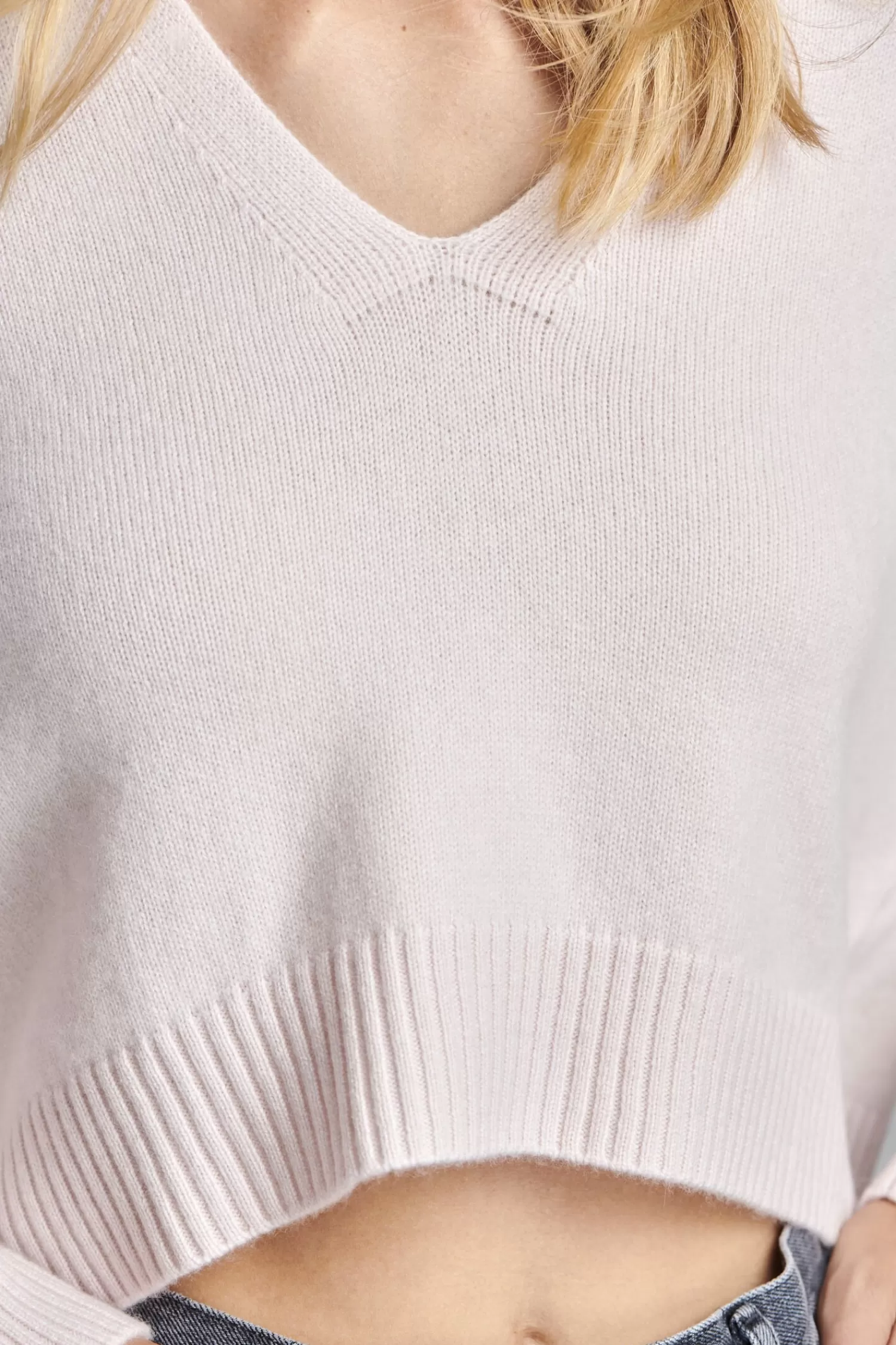 REPEAT cashmere Truien*Cashmere trui met diepe V-hals Powder