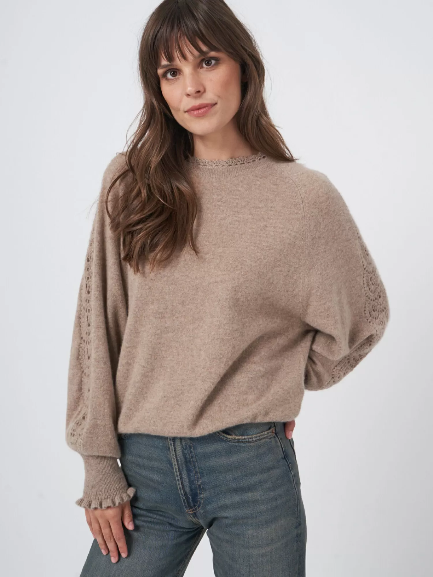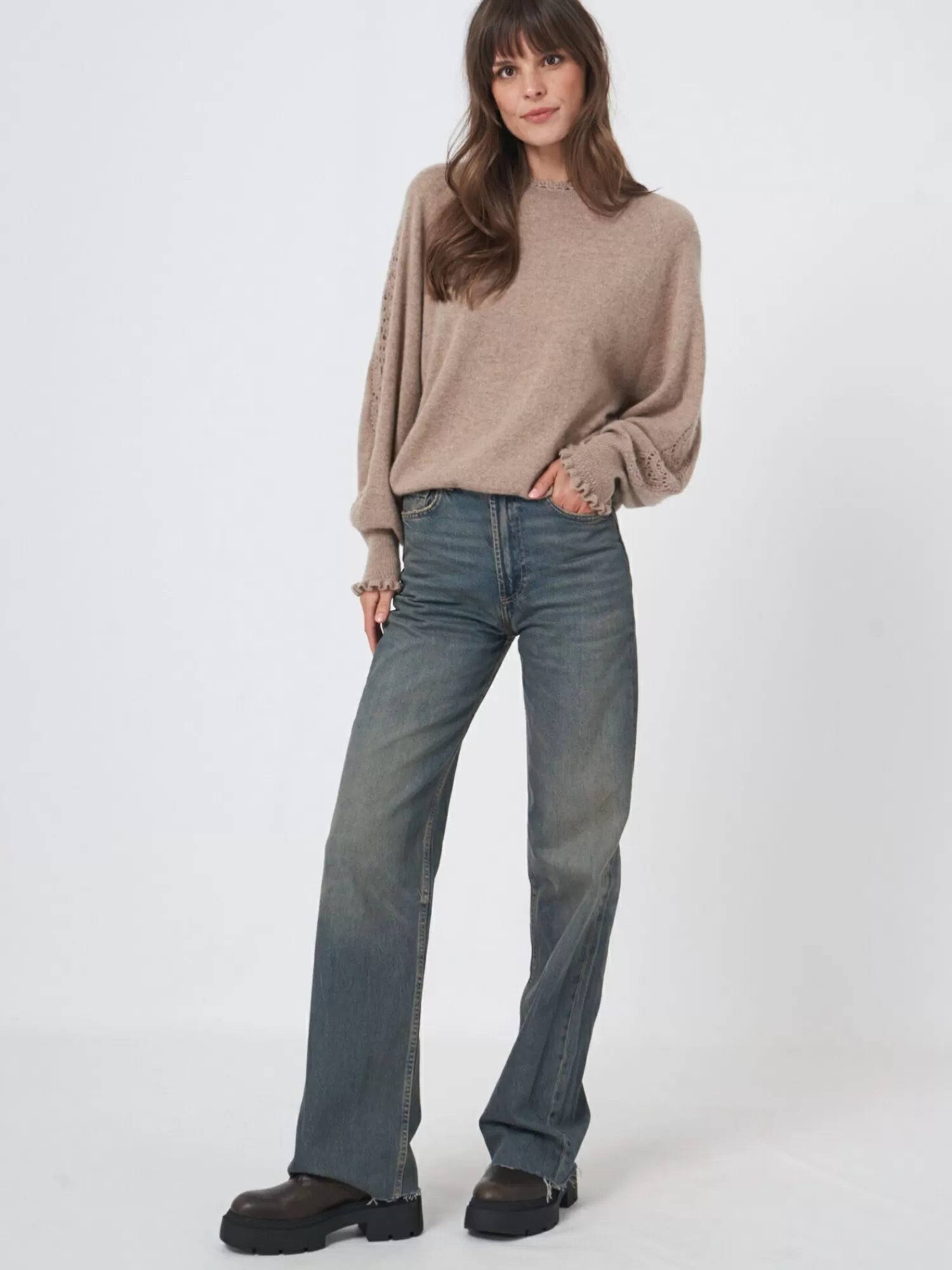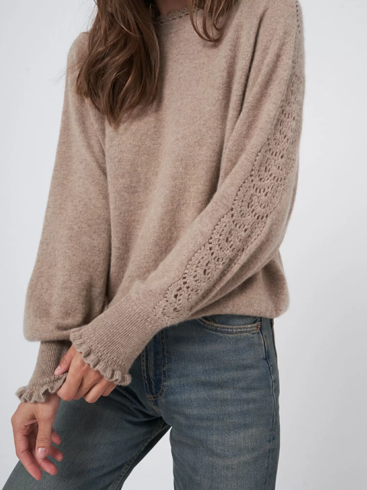 REPEAT cashmere Truien*Cashmere trui met gehaakte details Taupe