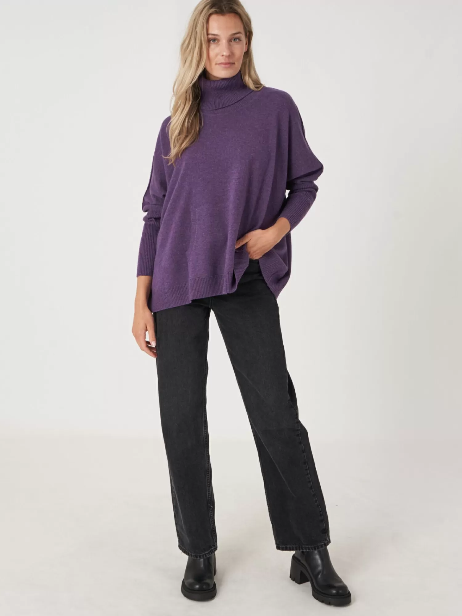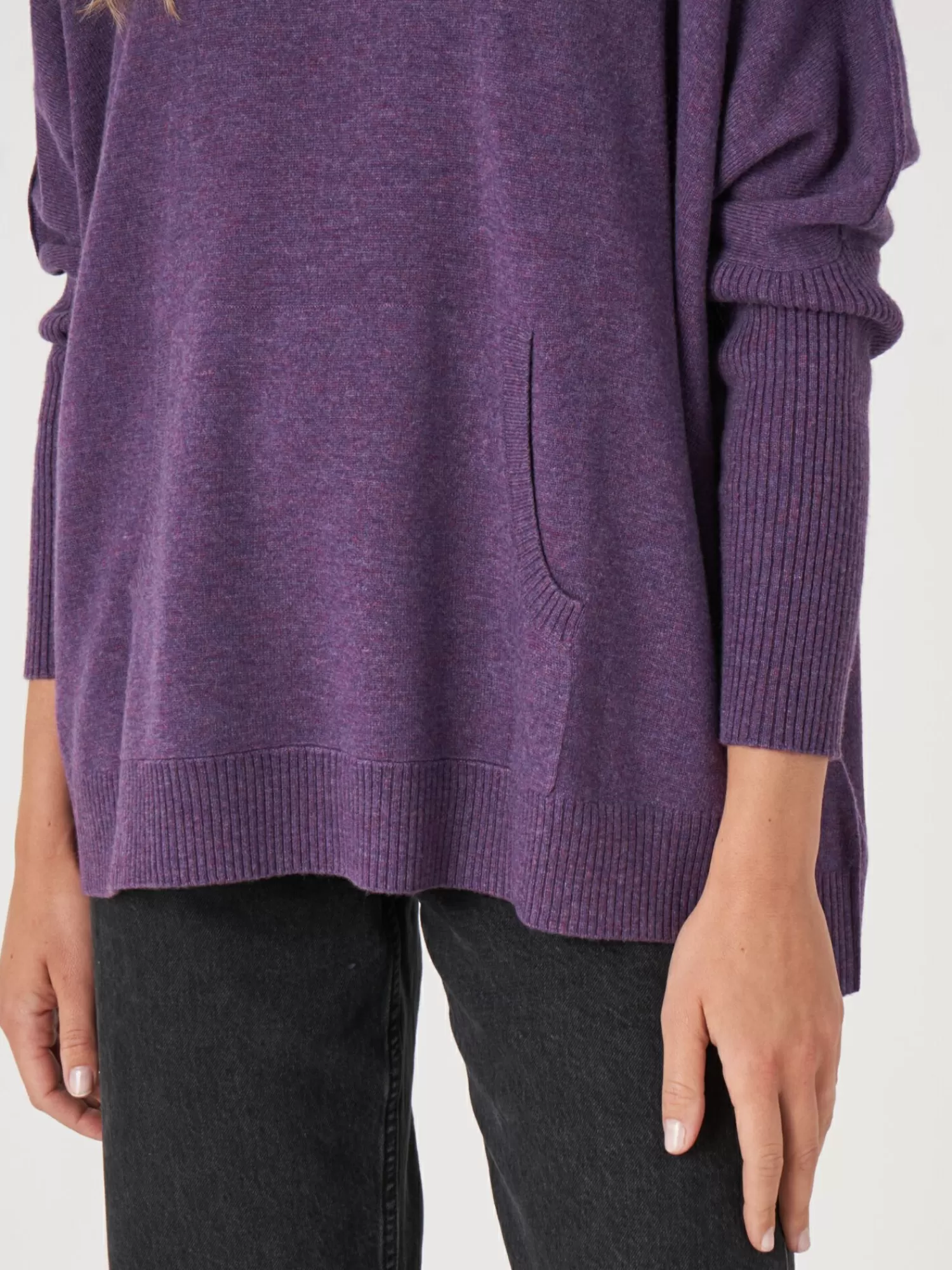 REPEAT cashmere Truien*Coltrui met kangoeroezak van cashmere-mix Amethyst