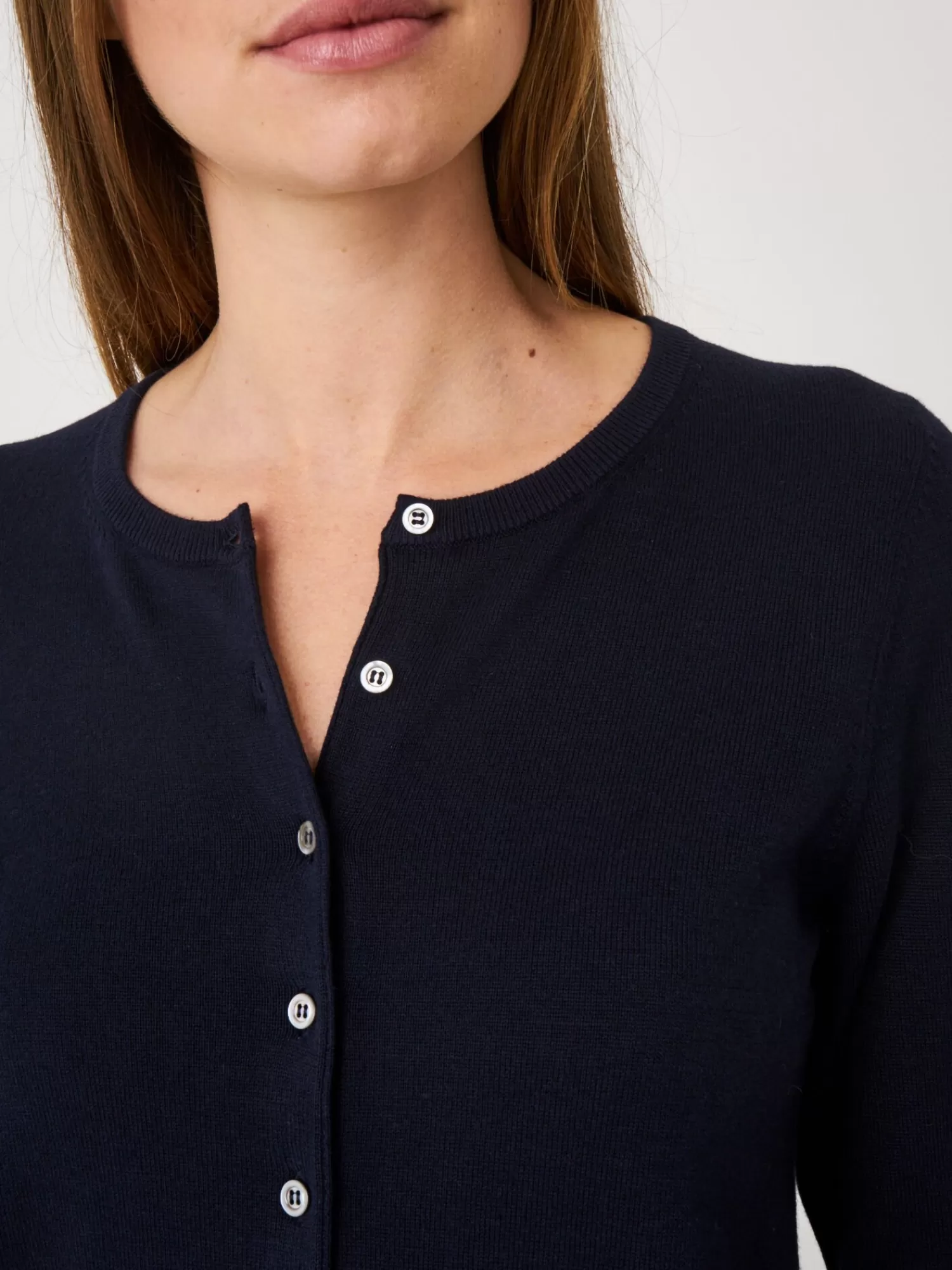 REPEAT cashmere Vesten | Organic Cashmere*Basic fijn gebreid cardigan in katoenmix Navy
