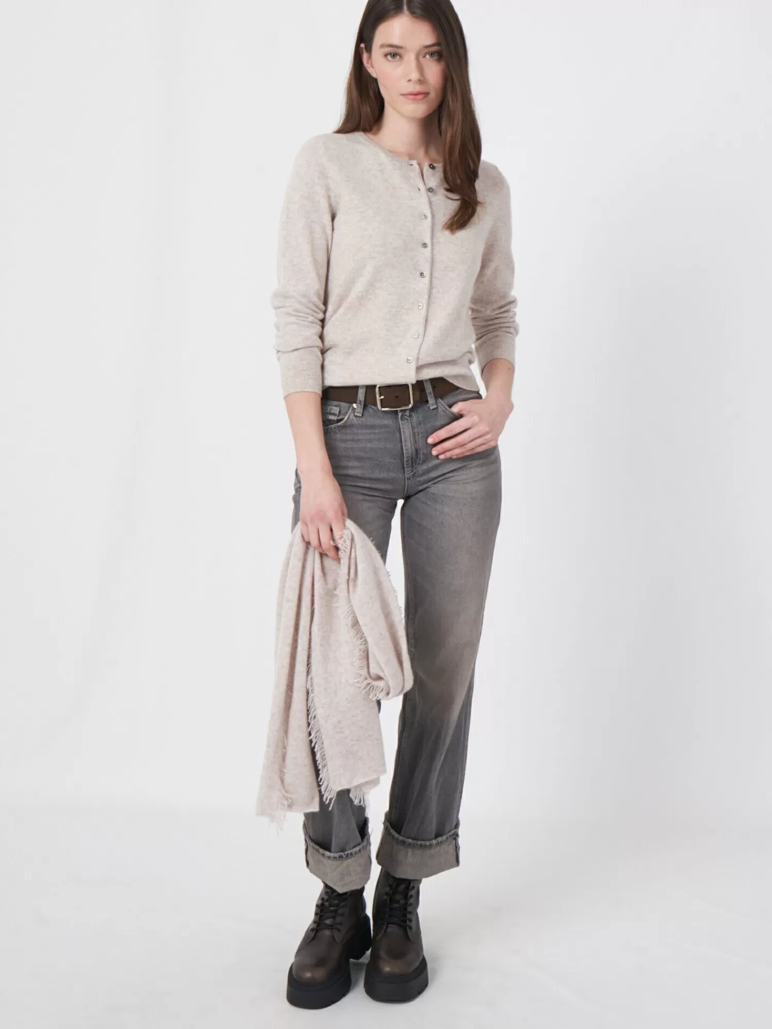 Fijn gebreidOrganisch cashmere GOTS gecertificeerdRonde hals met geribde boordLange mouwen met geribd manchetKnoopsluiti…
