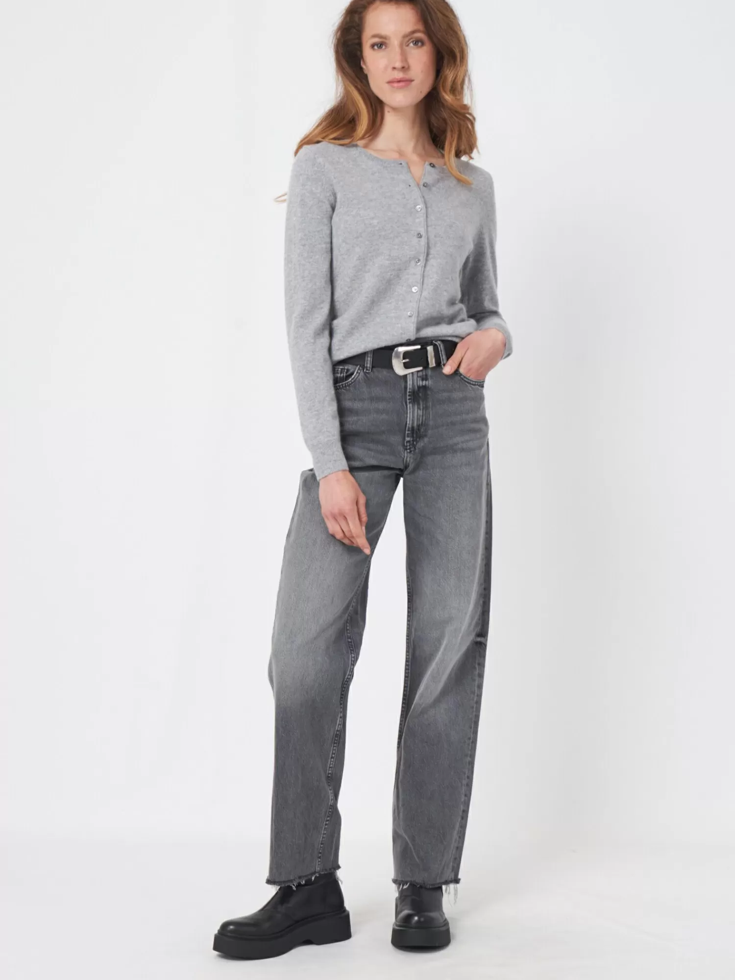 Fijn gebreidOrganisch cashmere GOTS gecertificeerdRonde hals met geribde boordLange mouwen met geribd manchetKnoopsluiti…